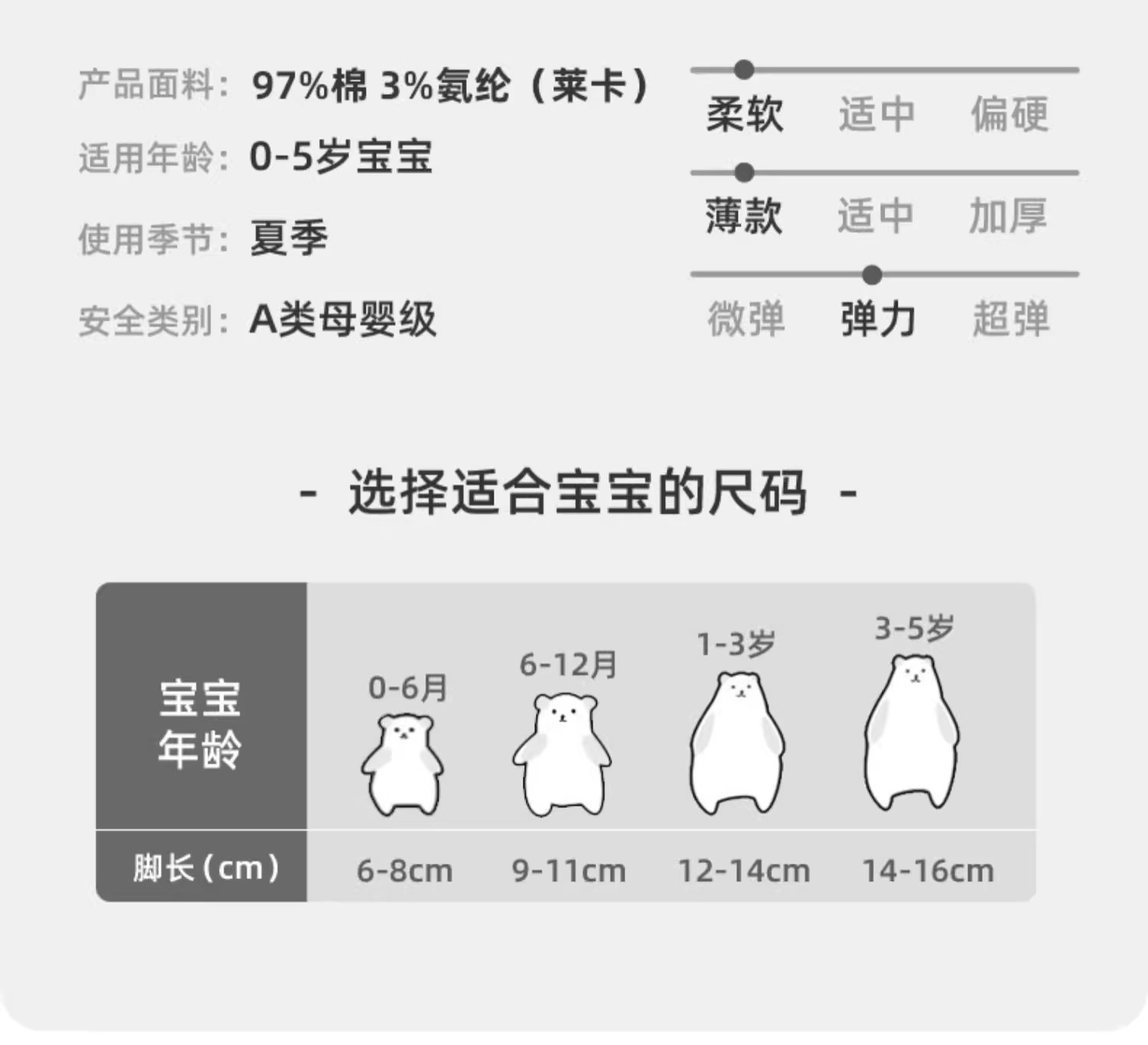 • 0-6 개월 (권장 발 길이 6-8cm)