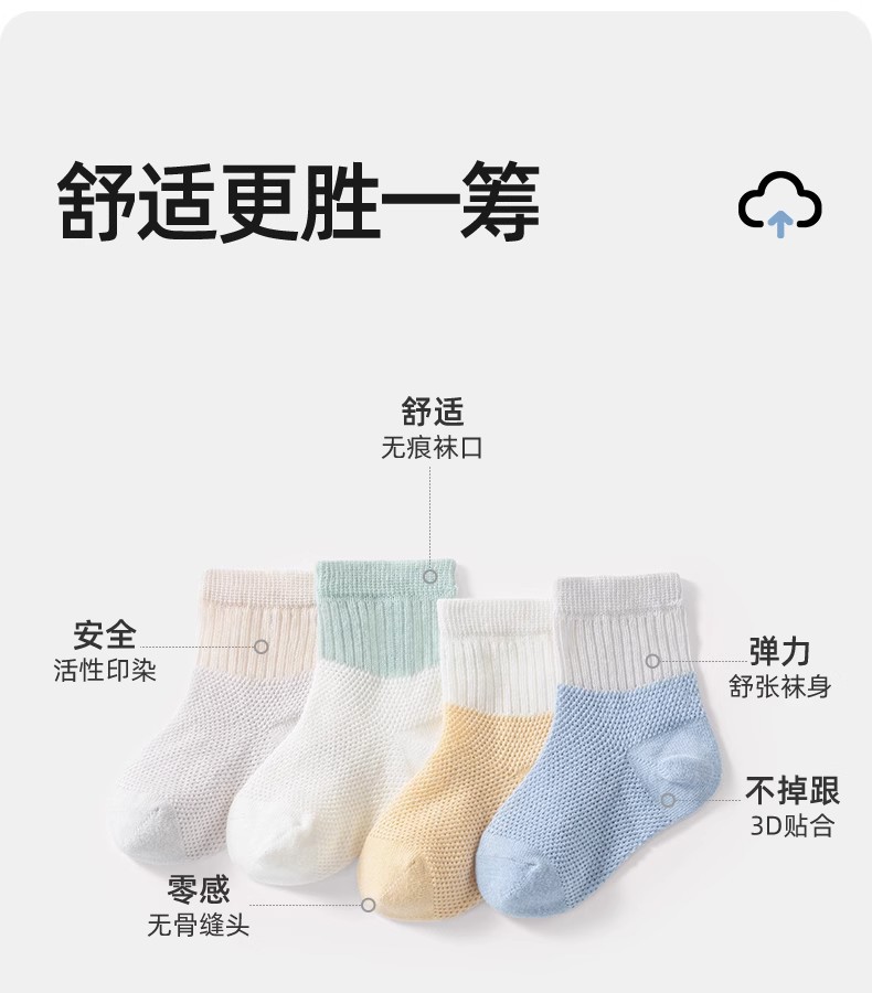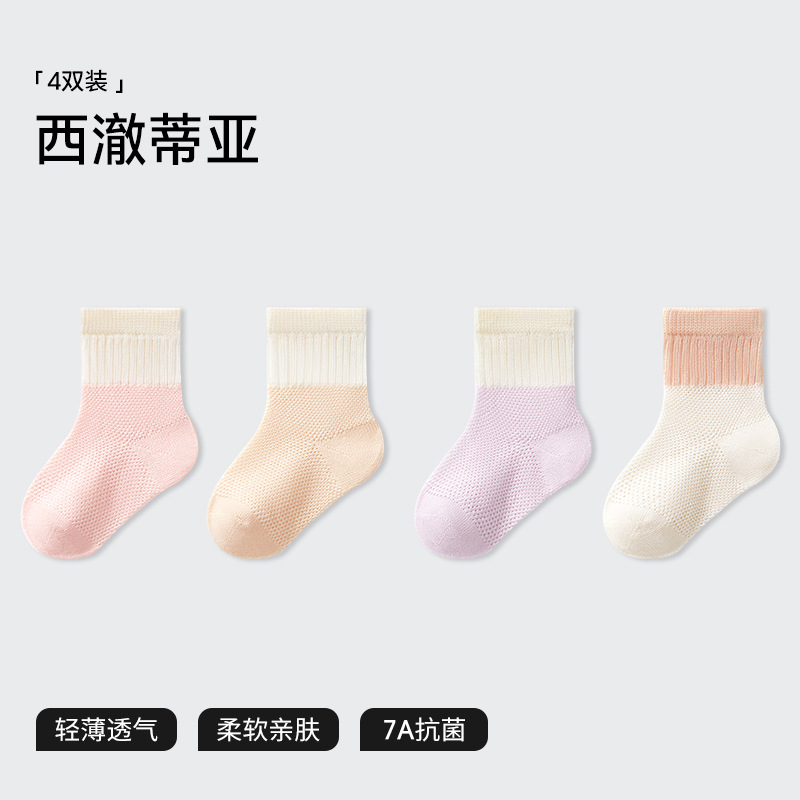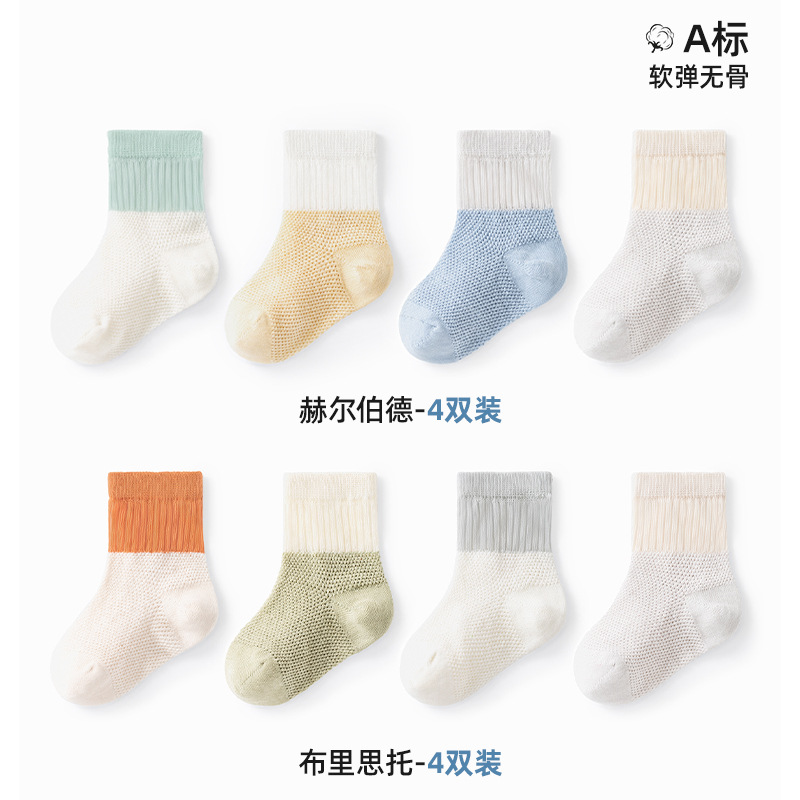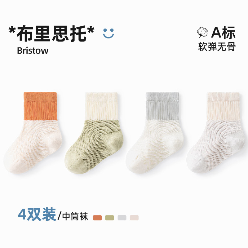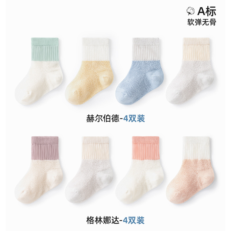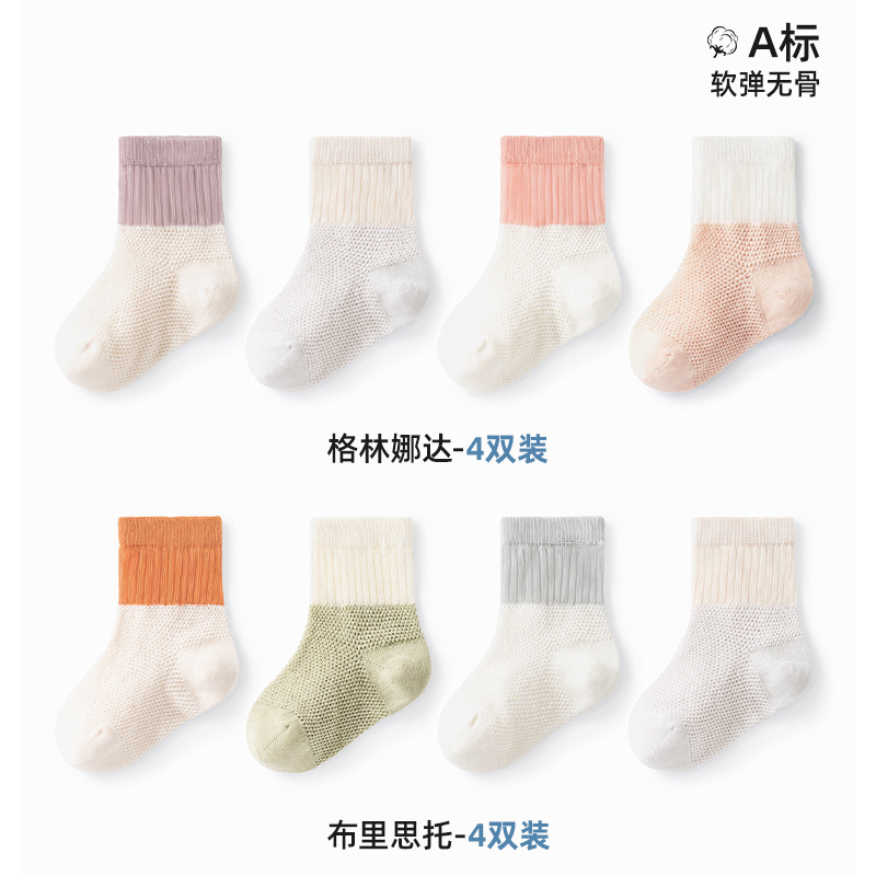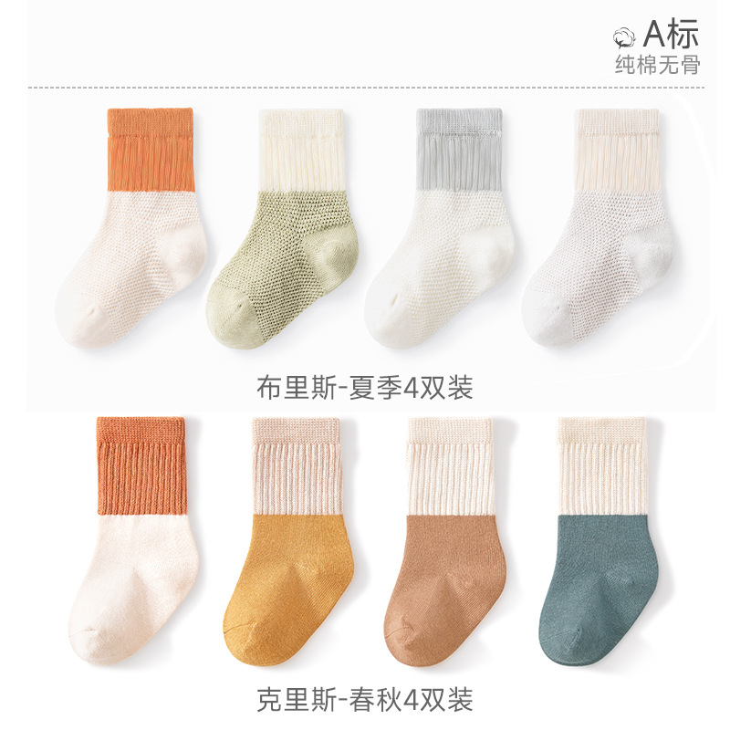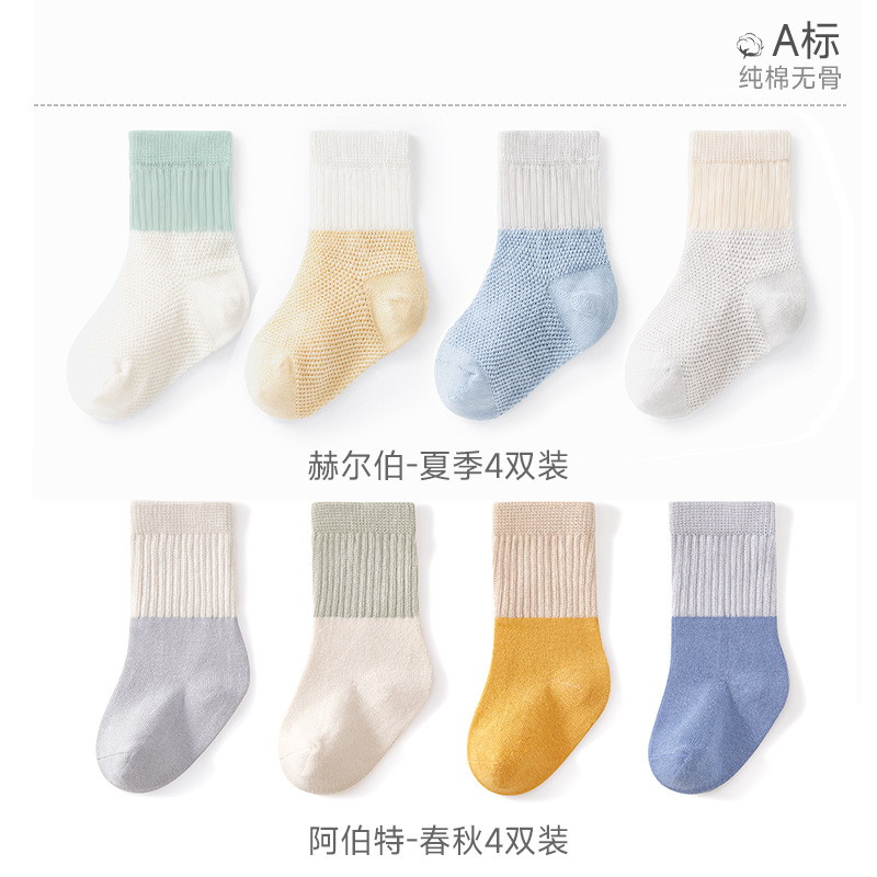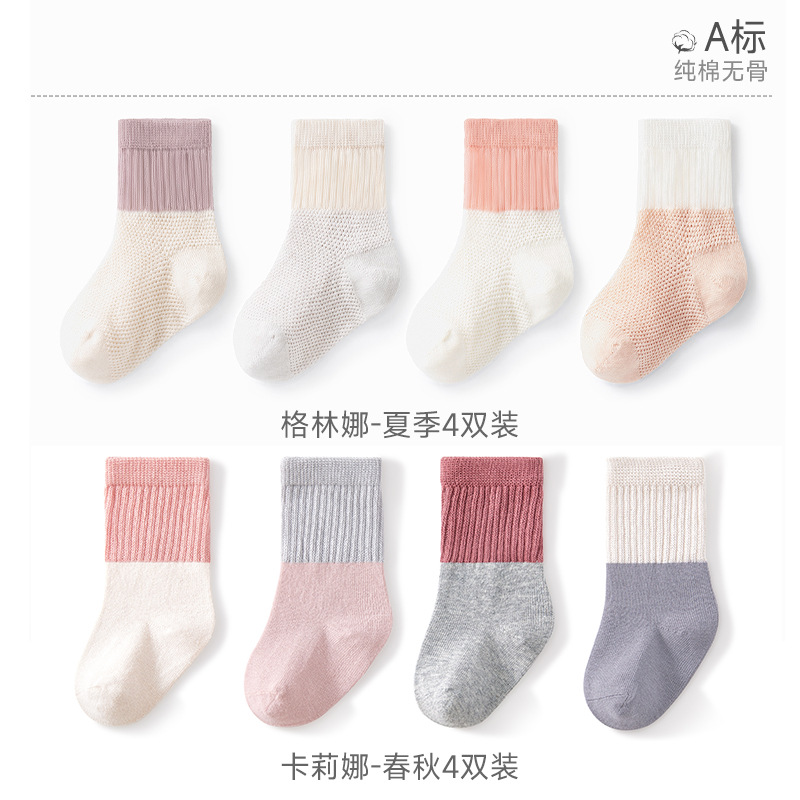 Beptide 아기 양말 봄과 가을 여름 얇은 신생아 아기 면 소년과 소녀를위한 미끄럼 통기성 중간 양말