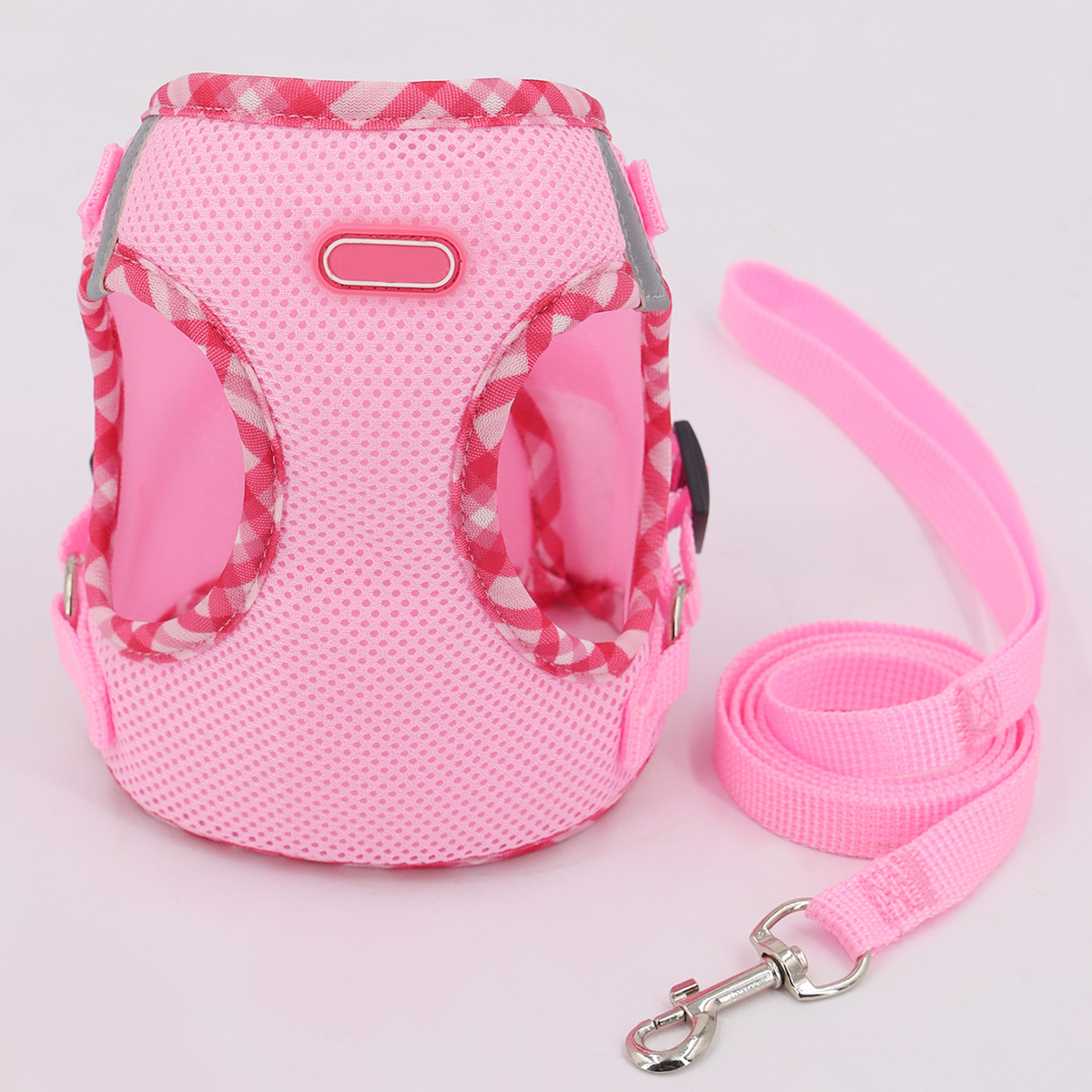 애완 동물 의류 견인 로프 나가는 개 가슴 다시 통기성 메쉬 개 스트랩 격자 무늬 가장자리 가슴 세트 표시 할 수 있습니다스토어 가기