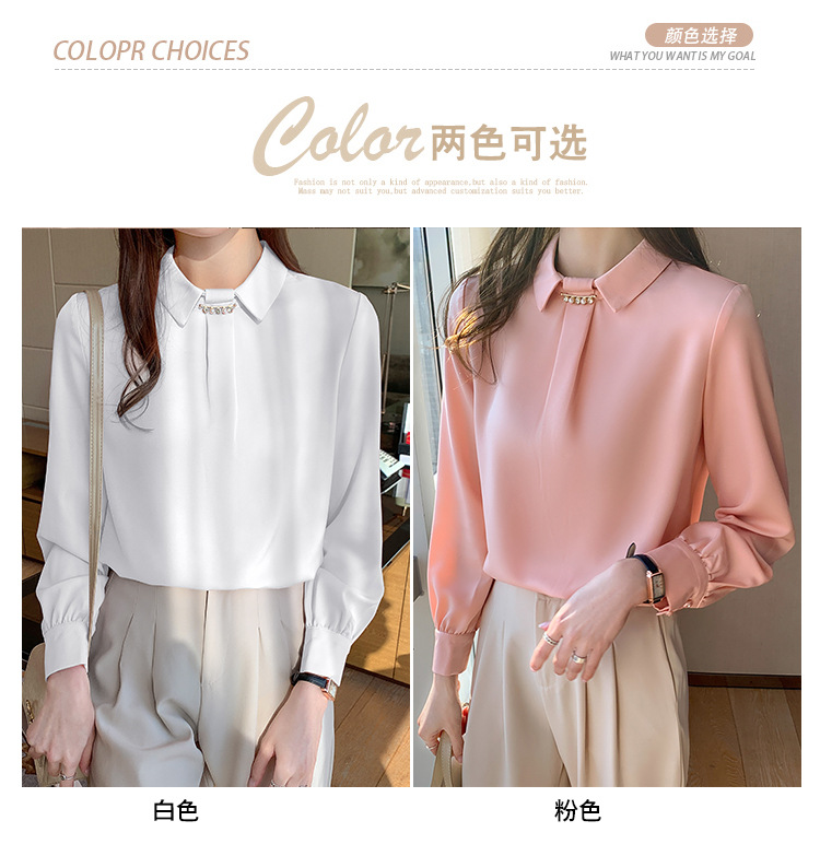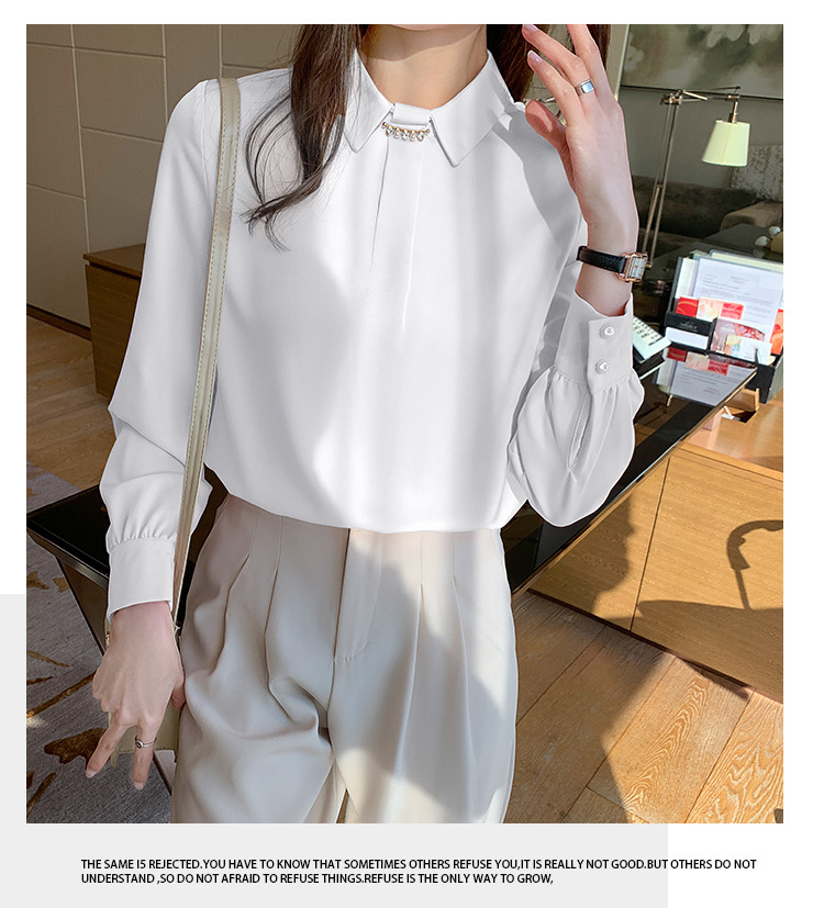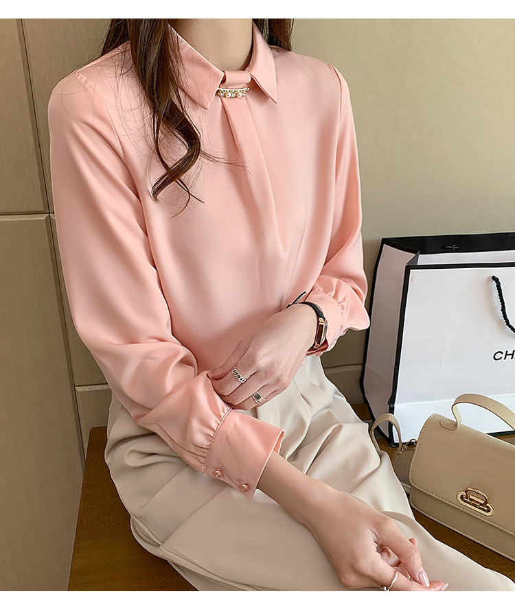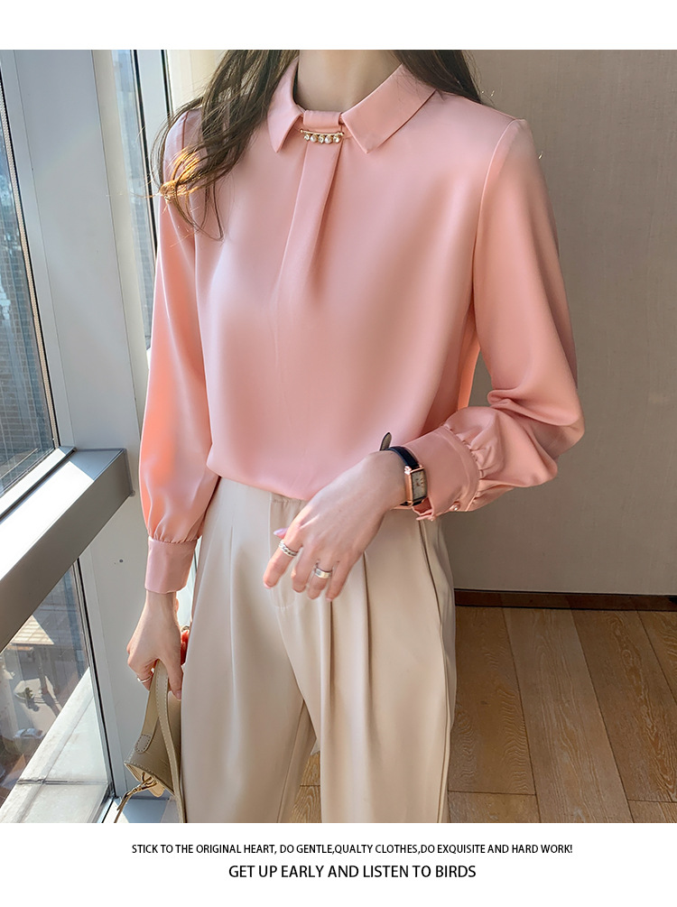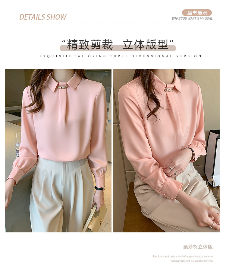 재고 새틴 셔츠 여자의 2023 가을 새로운 우아한 패션 디자인 감각 틈새 웨스턴 쉬폰 탑스토어 가기