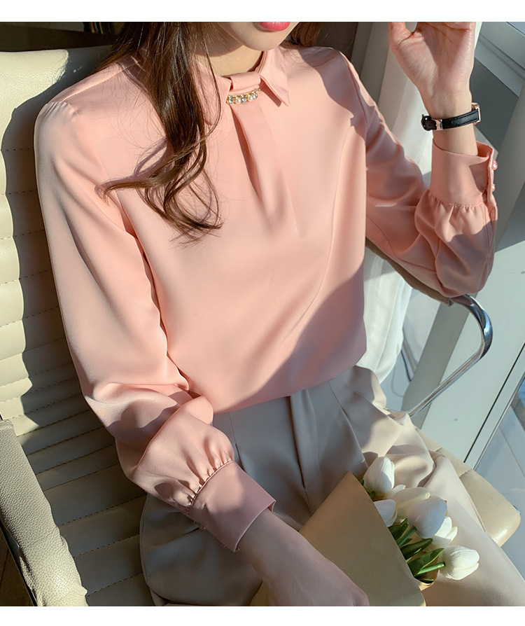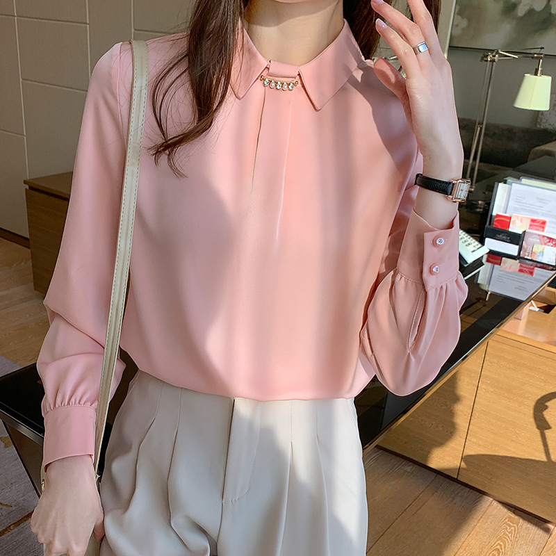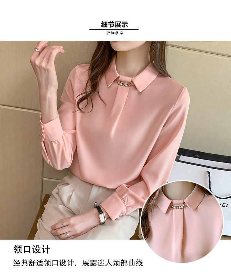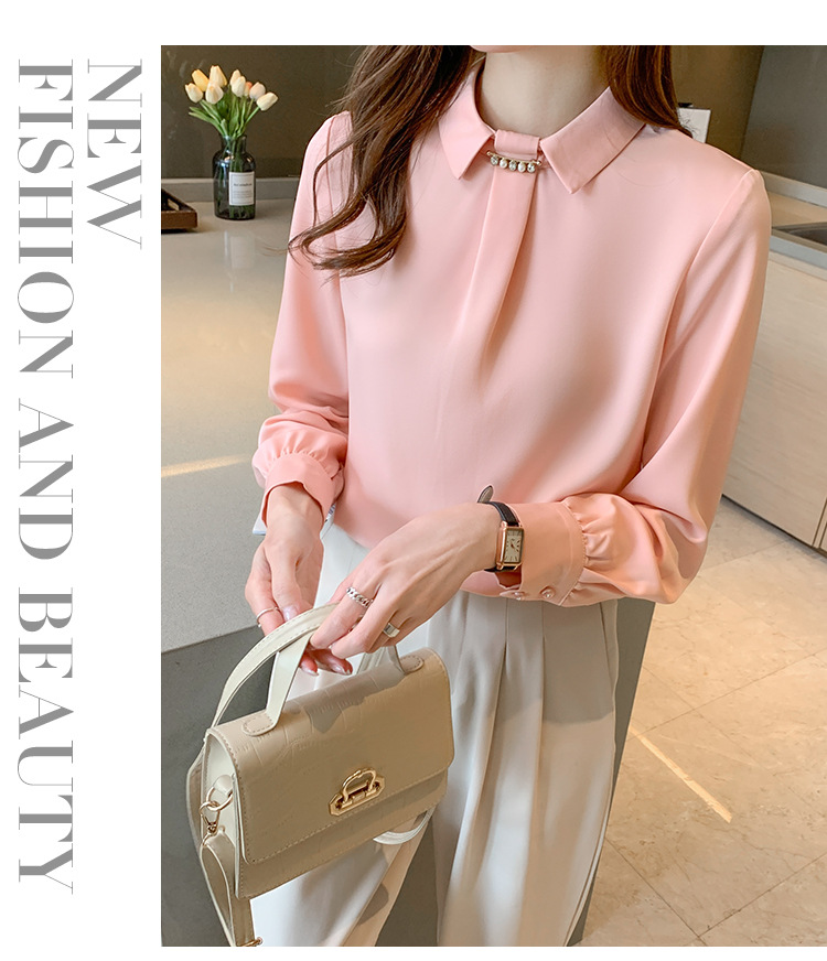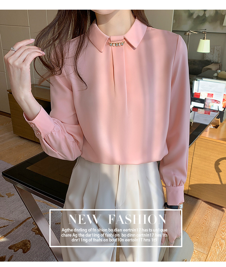 재고 새틴 셔츠 여자의 2023 가을 새로운 우아한 패션 디자인 감각 틈새 웨스턴 쉬폰 탑스토어 가기