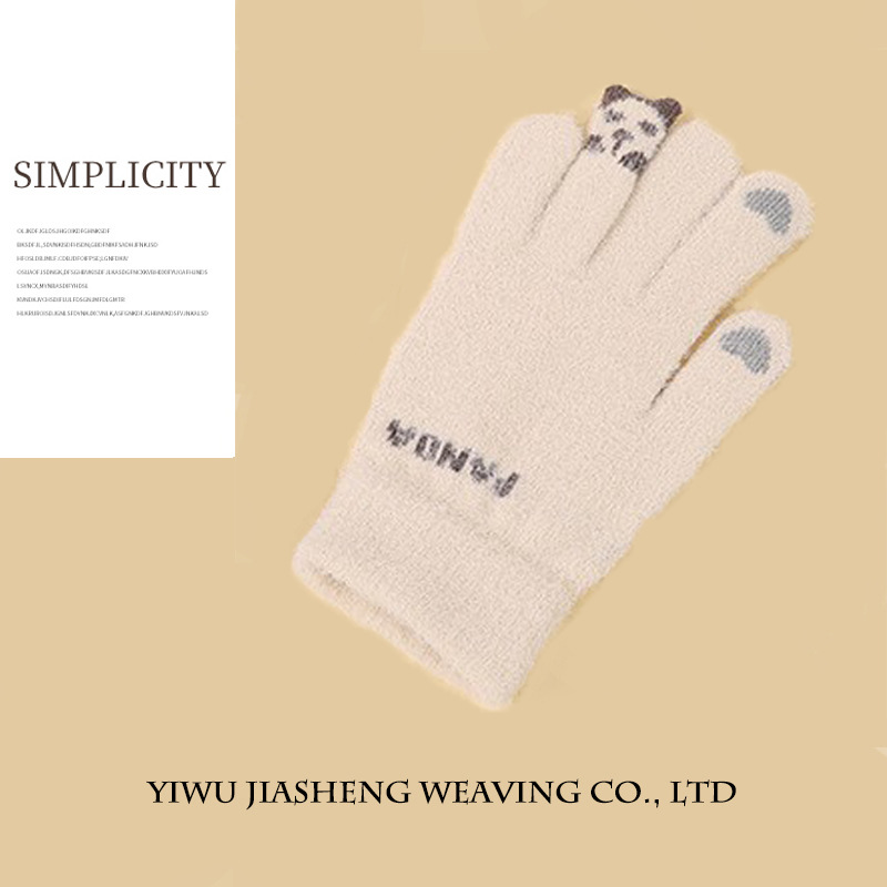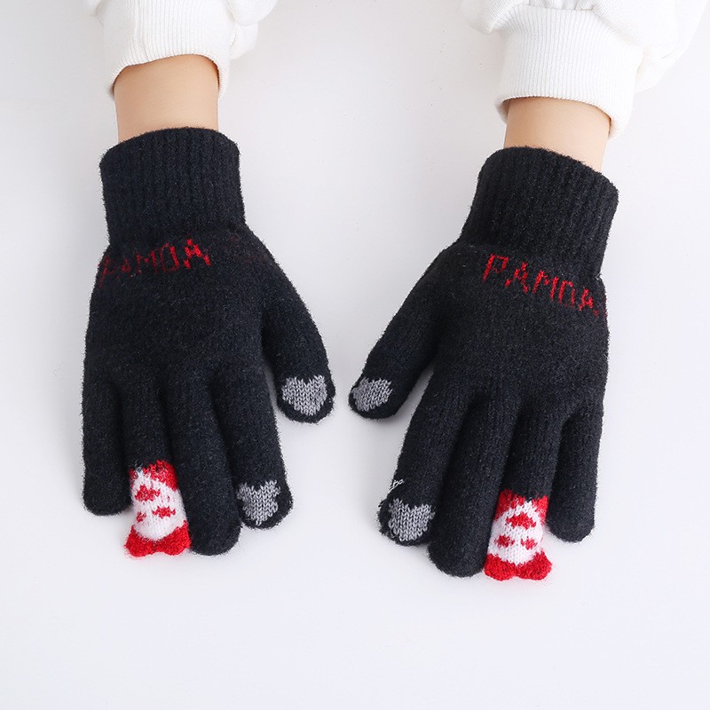 가을과 겨울 따뜻한 방한 울 니트 장갑 여자의 귀여운 학생 터치 스크린 다섯 손가락 기모 두꺼운 방한 승마 장갑