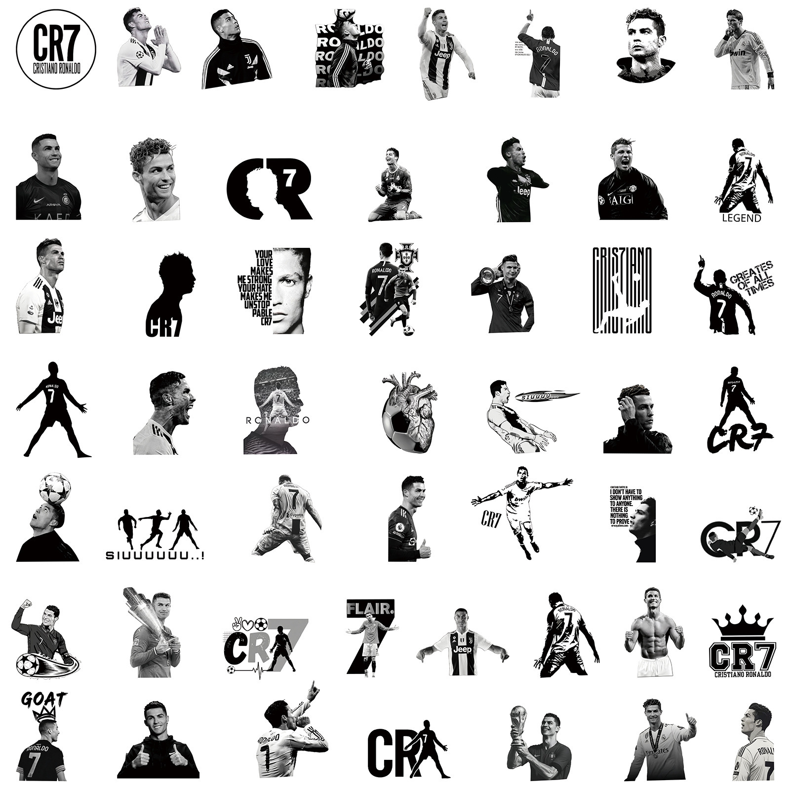 50 새로운 C Luo 축구 스타 스티커 도매 노트북 스케이트 보드 물 컵 방수 장식 낙서 스티커스토어 가기