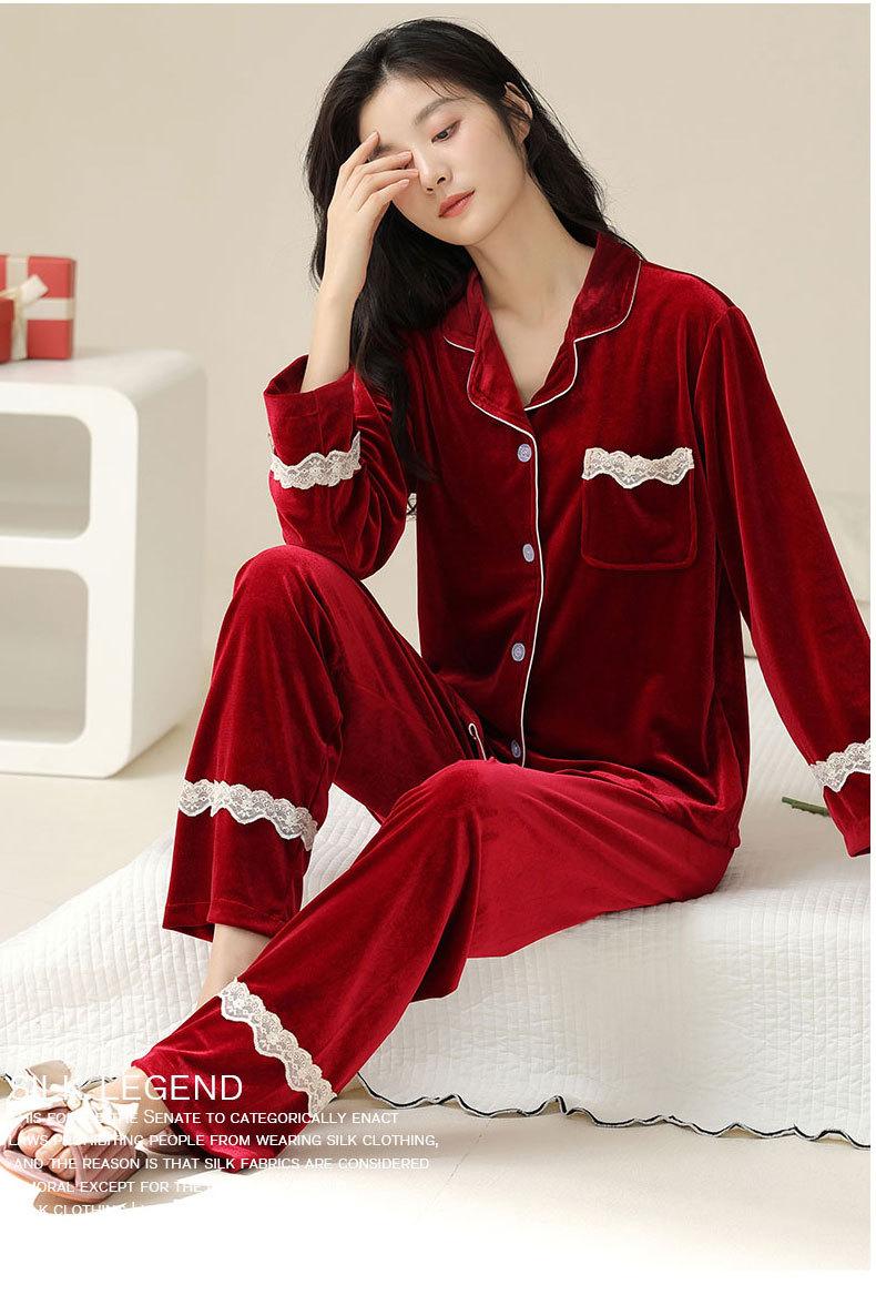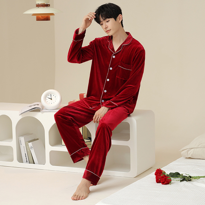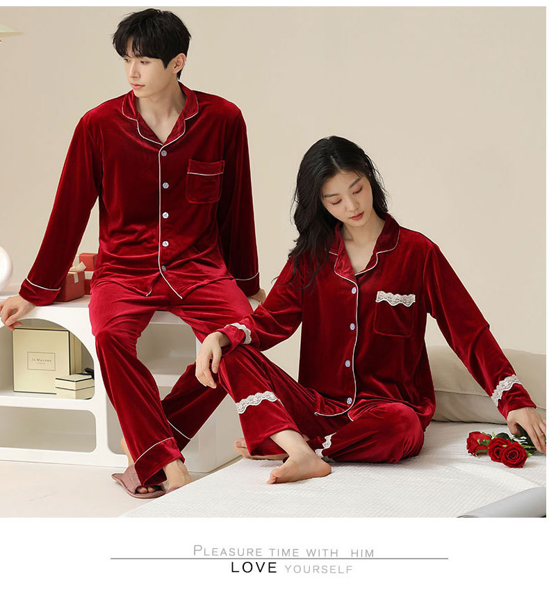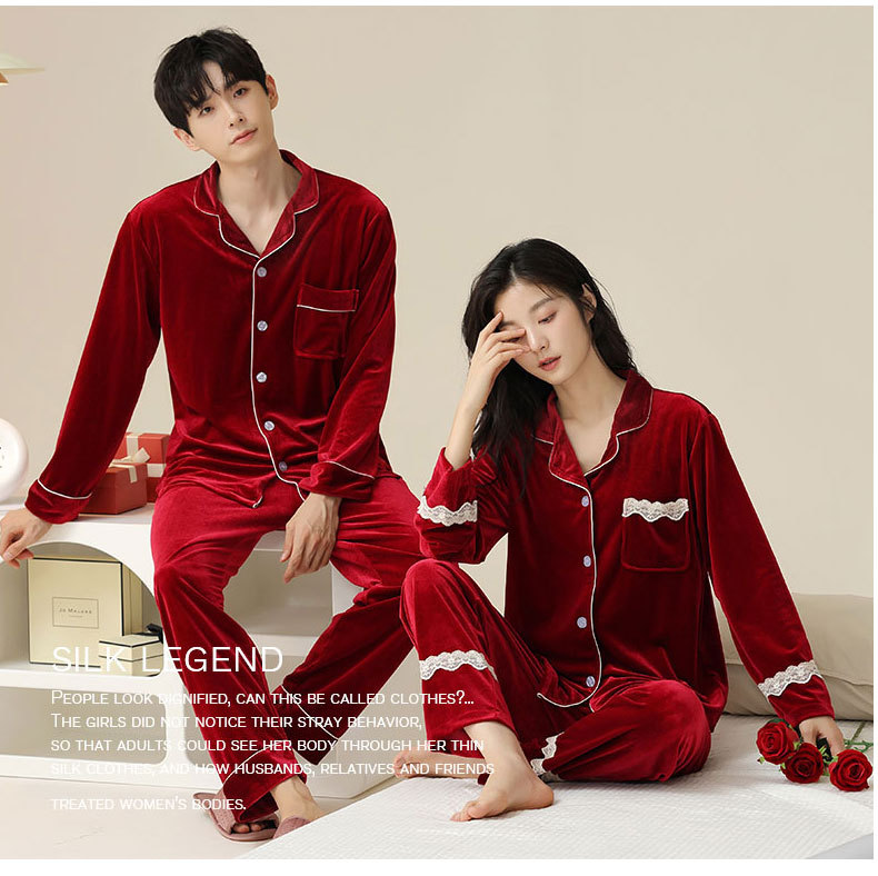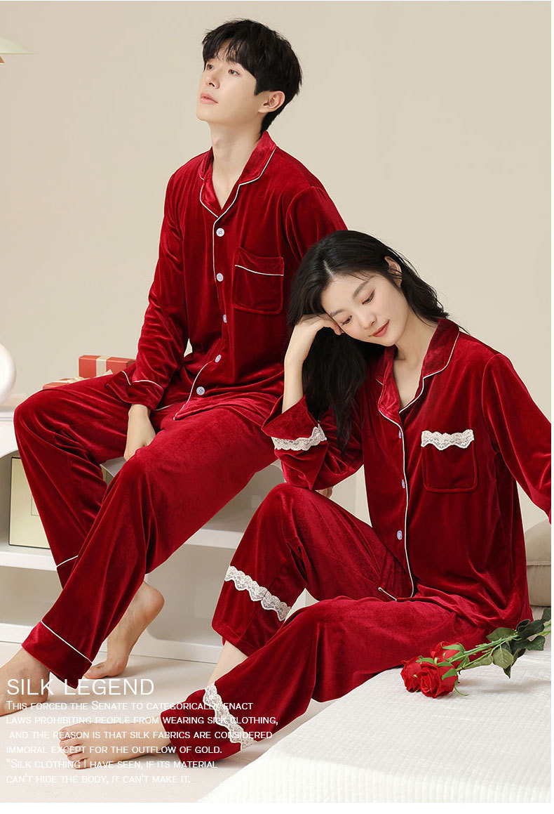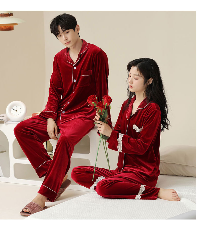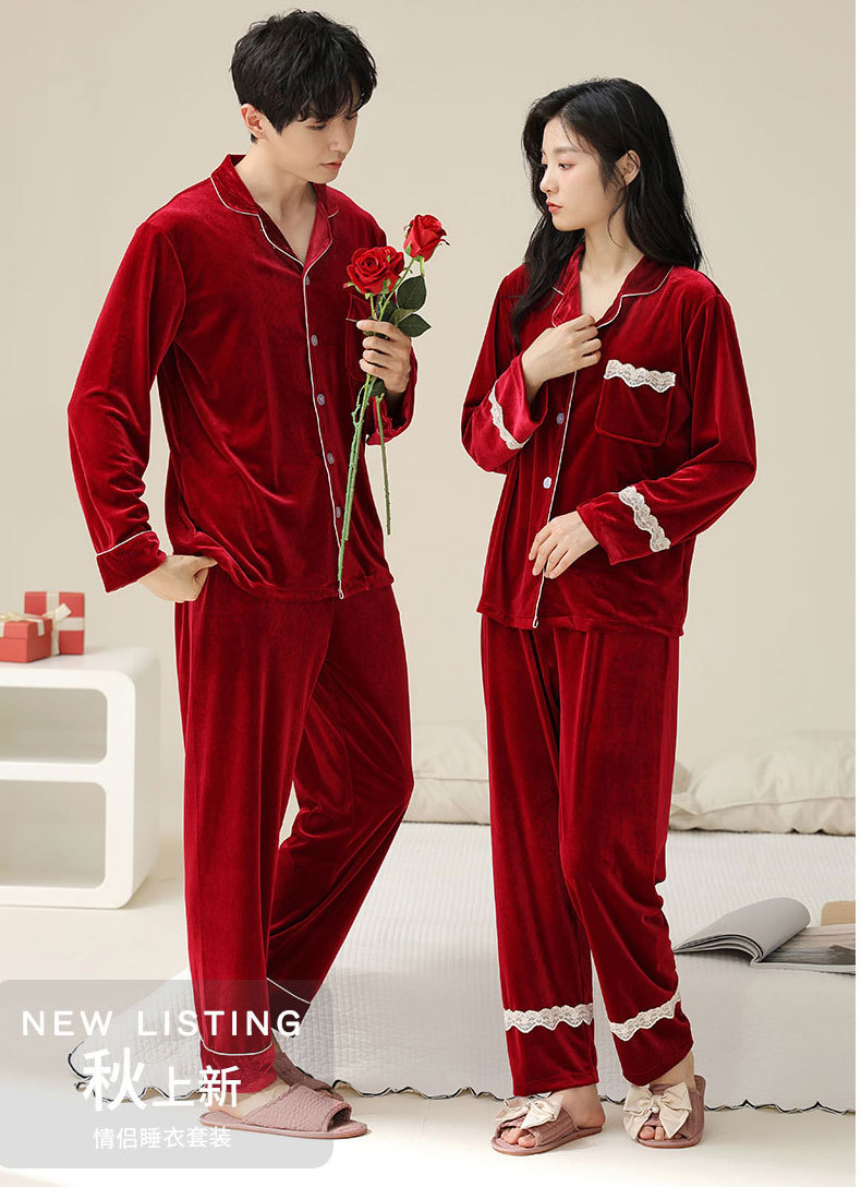 새로운 커플 잠옷 여자의 봄 가을과 겨울 황금 벨벳 빨간 신혼 결혼식 남자와 여자의 가정 옷 세트스토어 가기