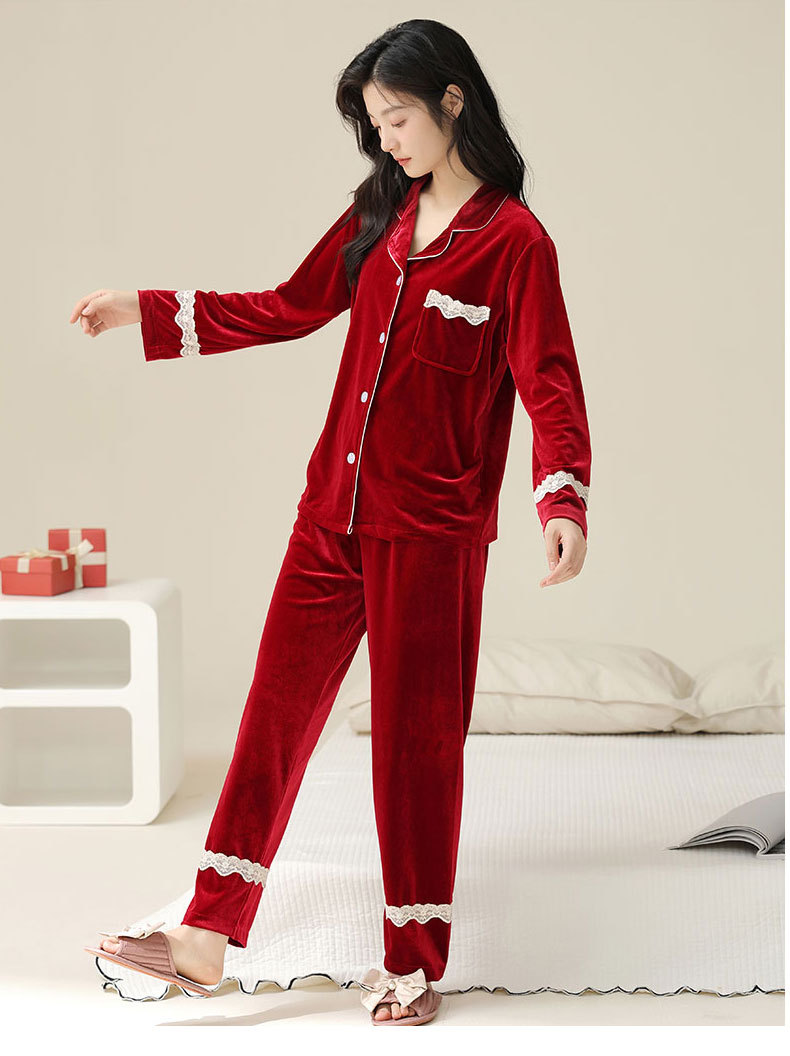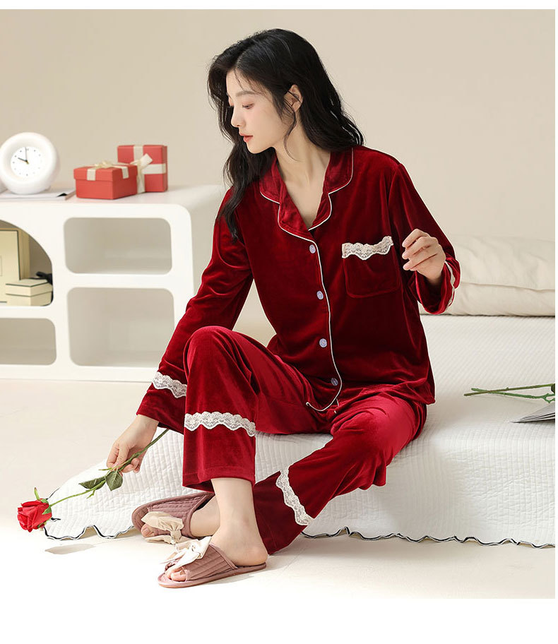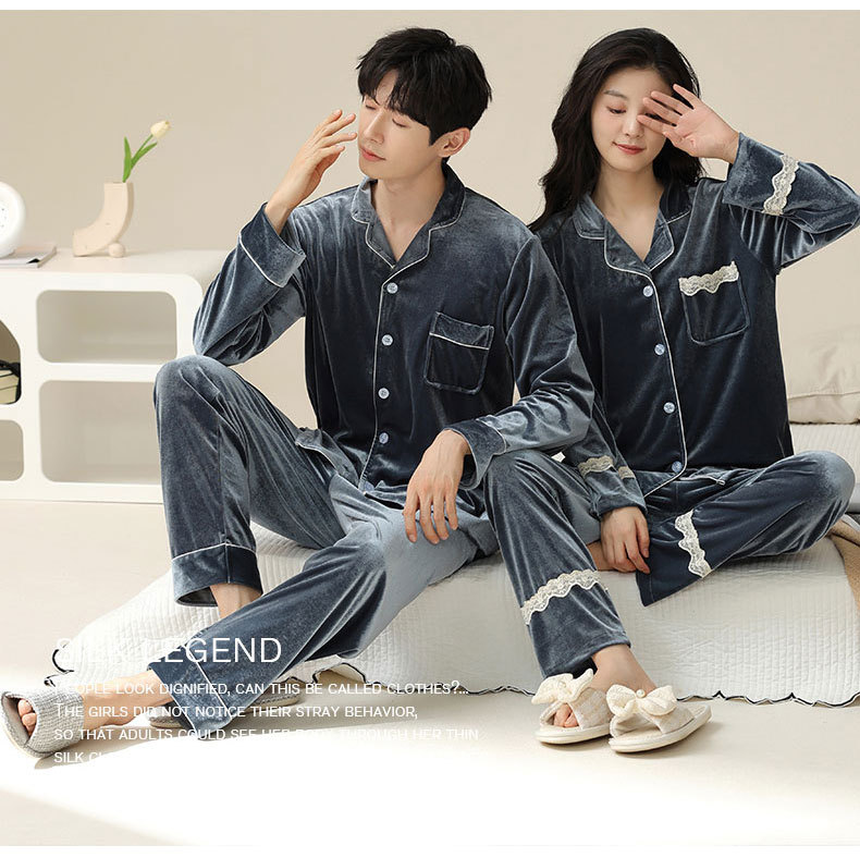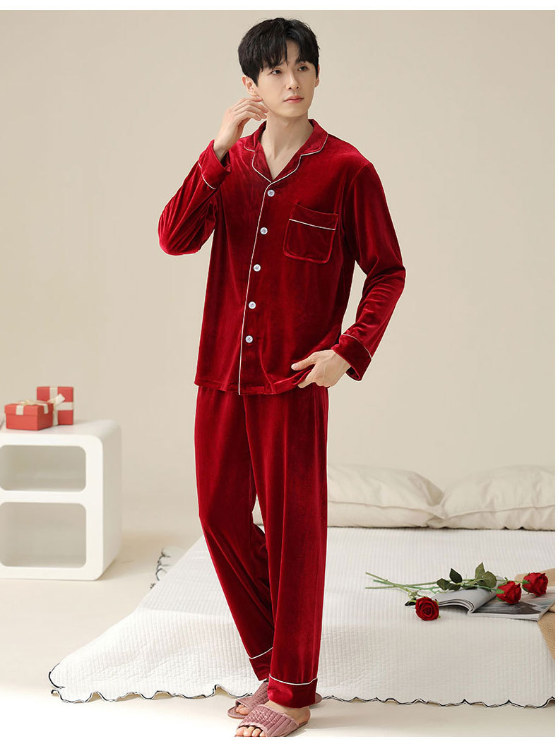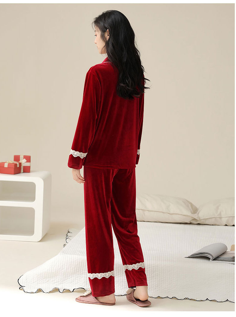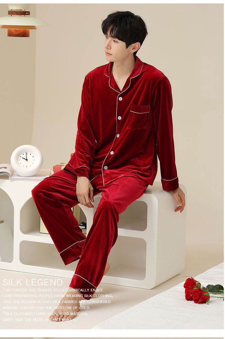새로운 커플 잠옷 여자의 봄 가을과 겨울 황금 벨벳 빨간 신혼 결혼식 남자와 여자의 가정 옷 세트스토어 가기
