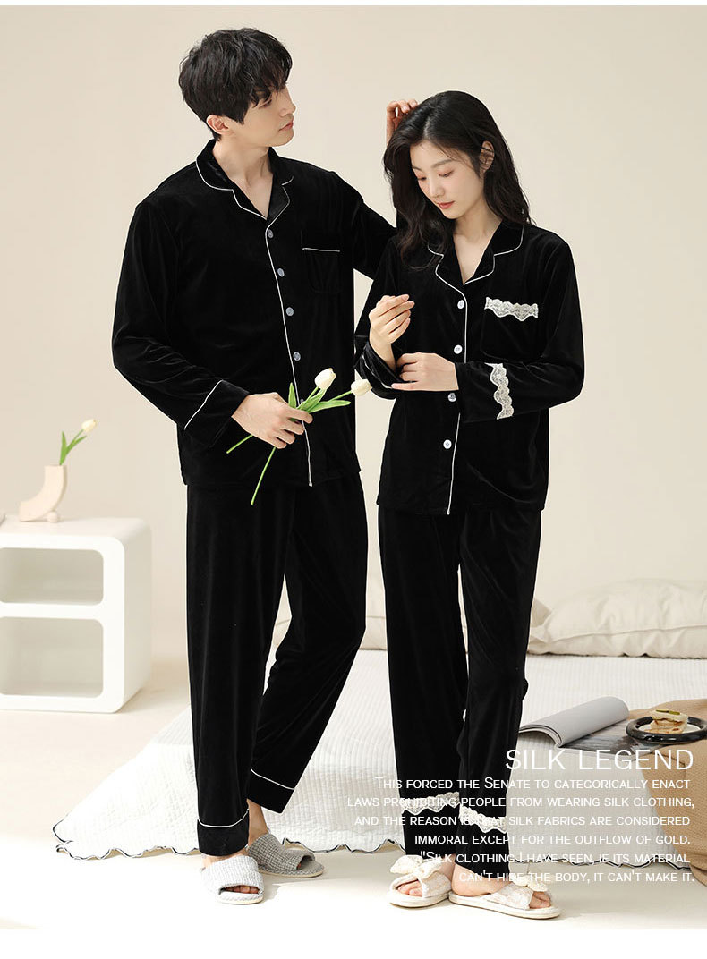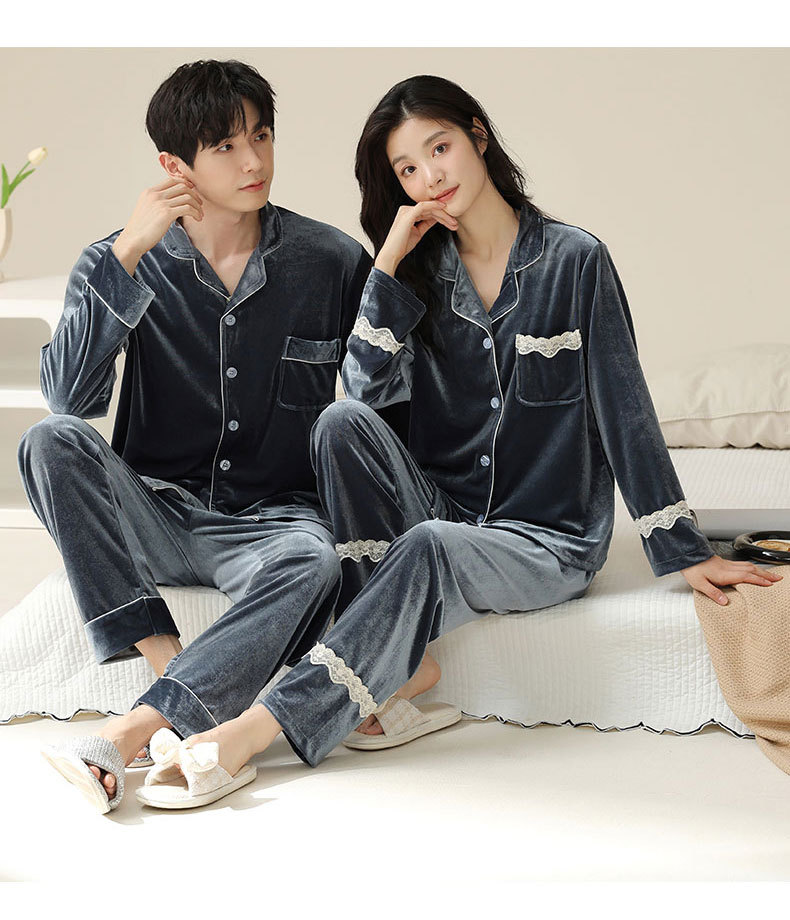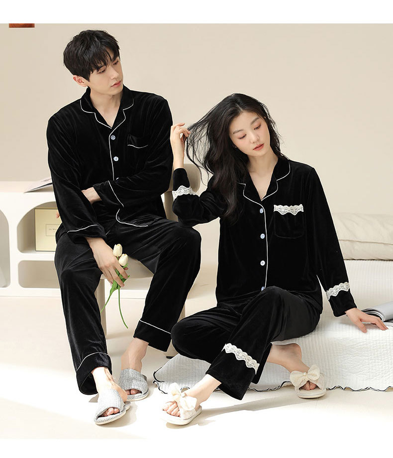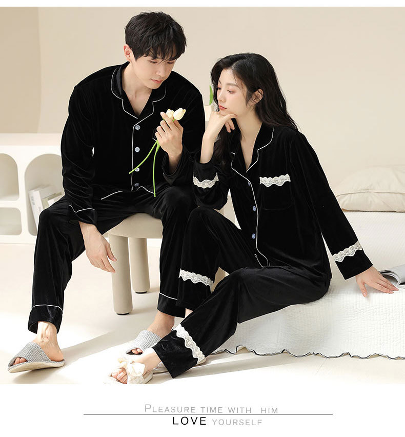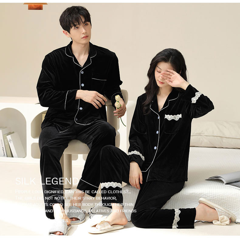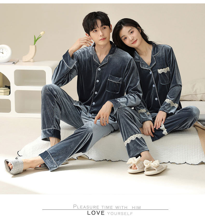 새로운 커플 잠옷 여자의 봄 가을과 겨울 황금 벨벳 빨간 신혼 결혼식 남자와 여자의 가정 옷 세트스토어 가기