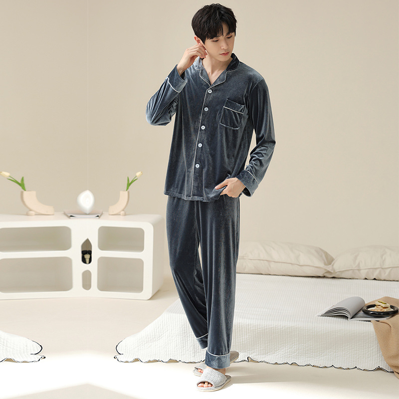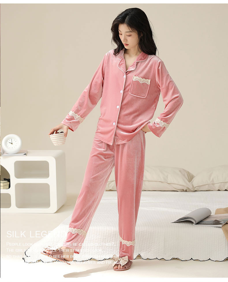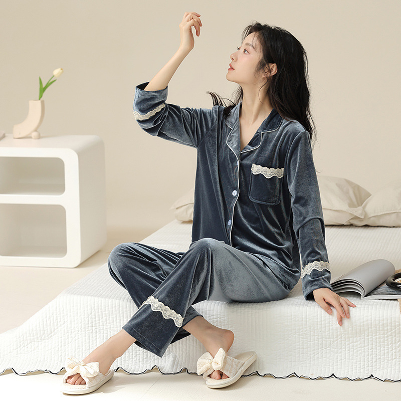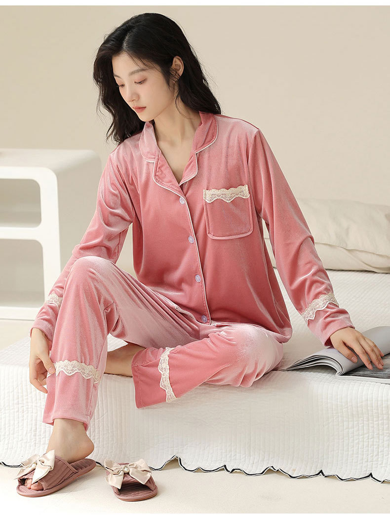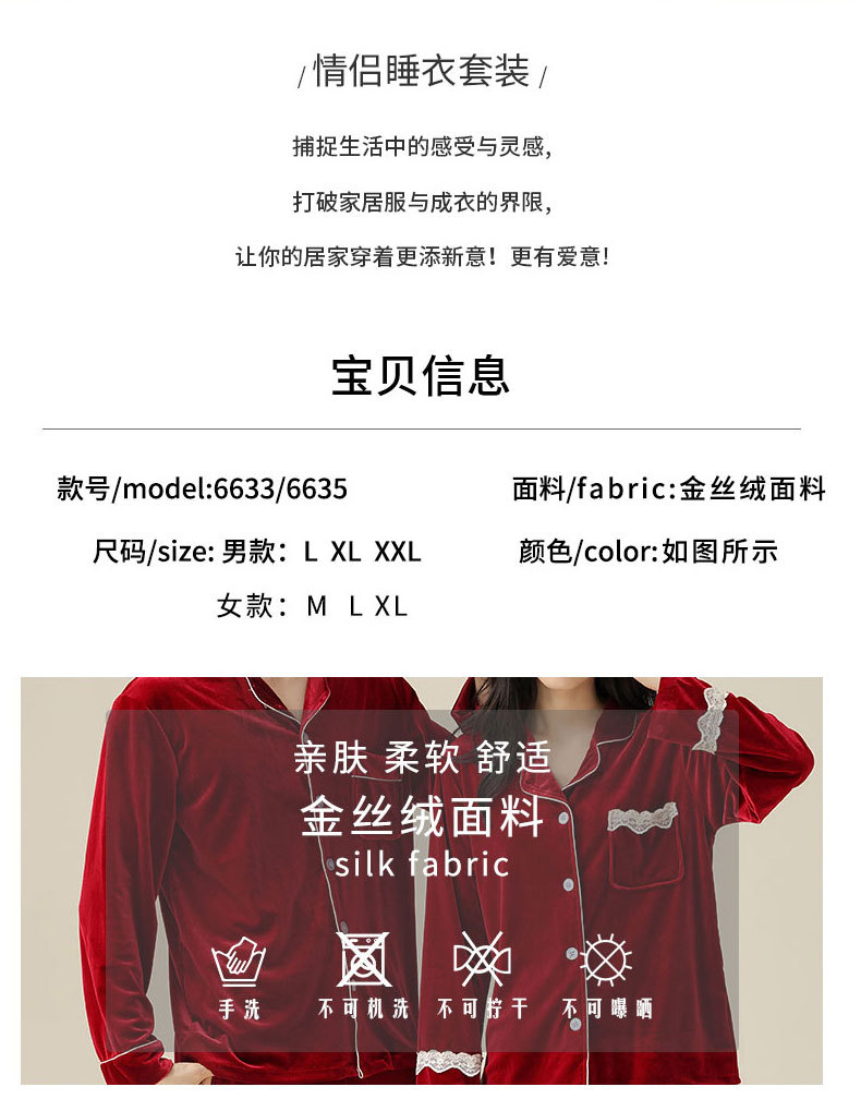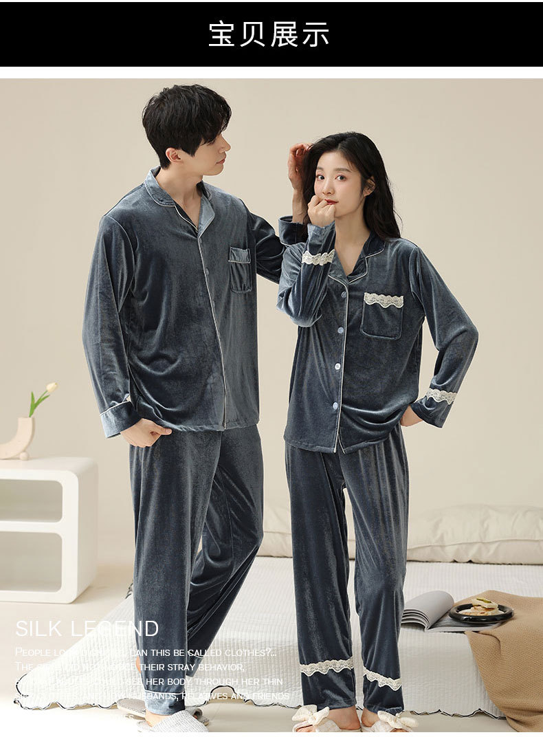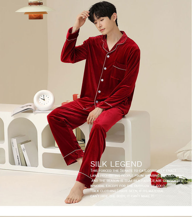 새로운 커플 잠옷 여자의 봄 가을과 겨울 황금 벨벳 빨간 신혼 결혼식 남자와 여자의 가정 옷 세트스토어 가기