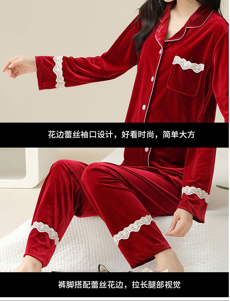 새로운 커플 잠옷 여자의 봄 가을과 겨울 황금 벨벳 빨간 신혼 결혼식 남자와 여자의 가정 옷 세트