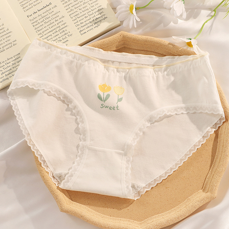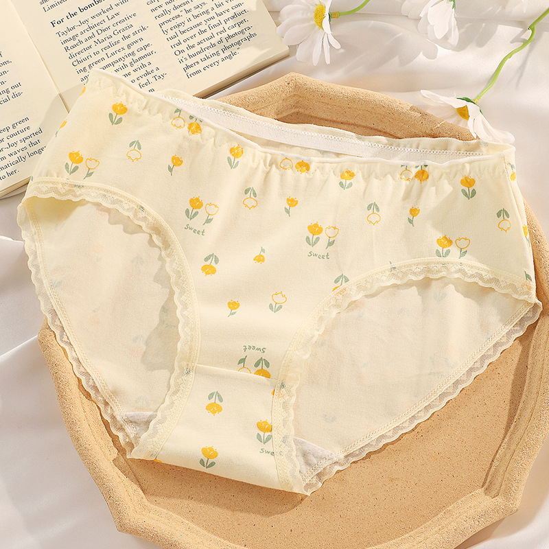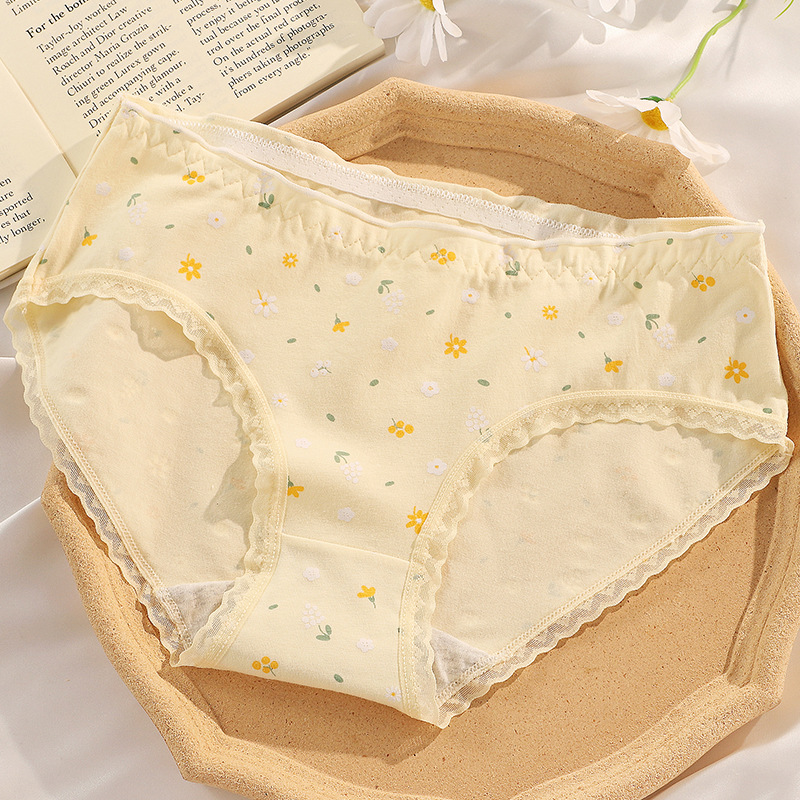 일본식 심플 속옷 여성용 순면 신선한 목가적 인 프린트 학생 달콤한 소녀 속옷 면 여성용 팬티
