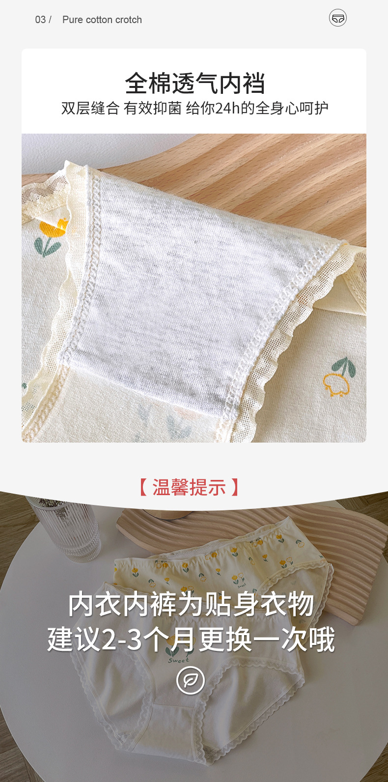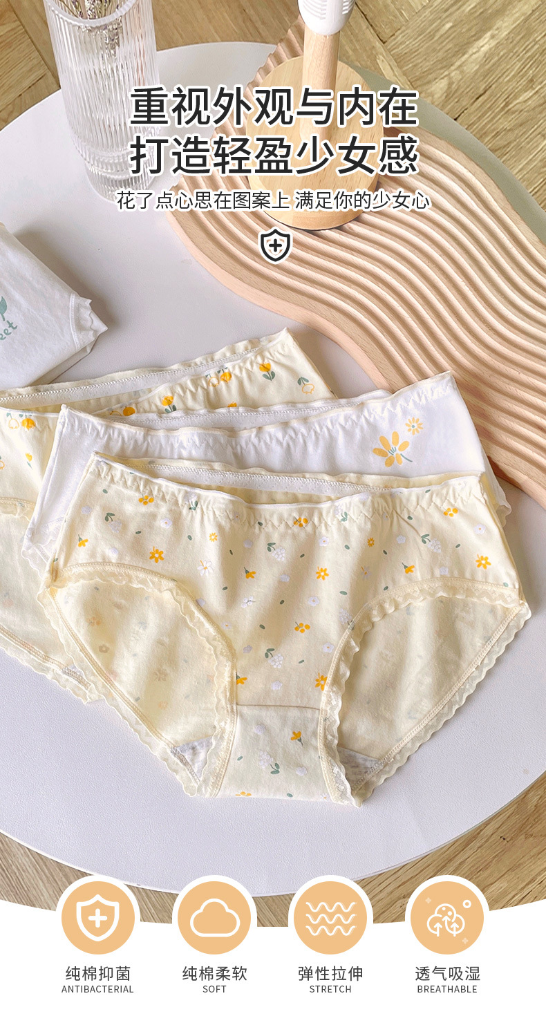 일본식 심플 속옷 여성용 순면 신선한 목가적 인 프린트 학생 달콤한 소녀 속옷 면 여성용 팬티스토어 가기