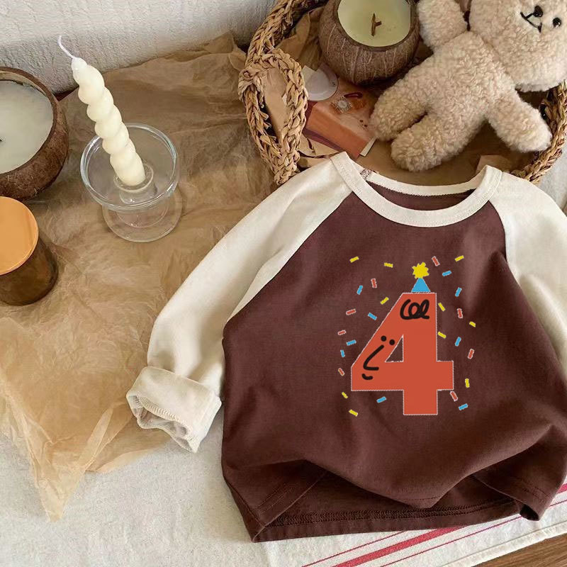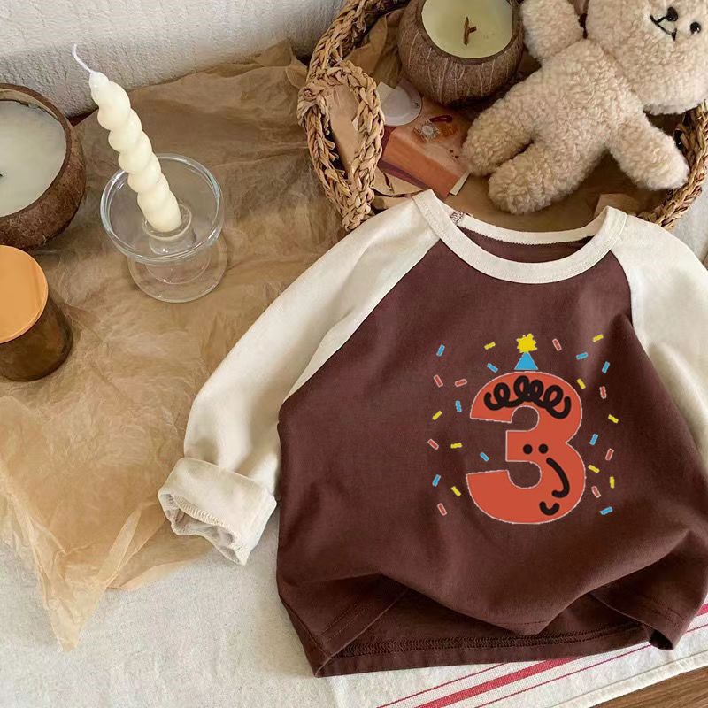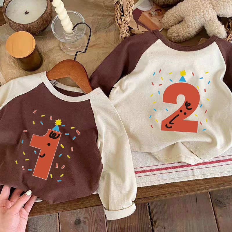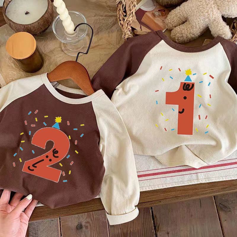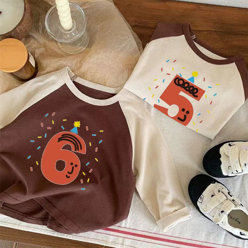 어린이 아기의 새로운 긴팔 티셔츠 생일 디지털 웨스턴 스타일 소년 소녀 봄 가을 사진 탑 T 트렌디스토어 가기