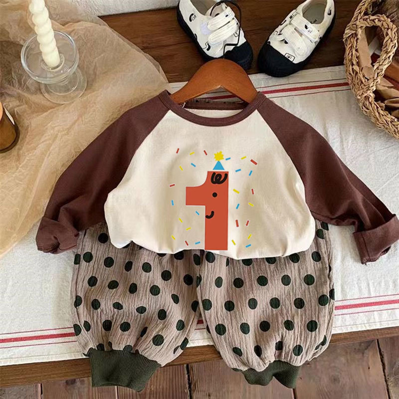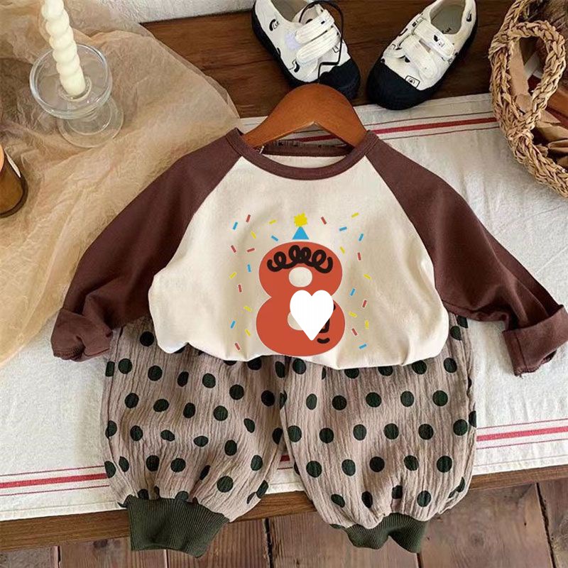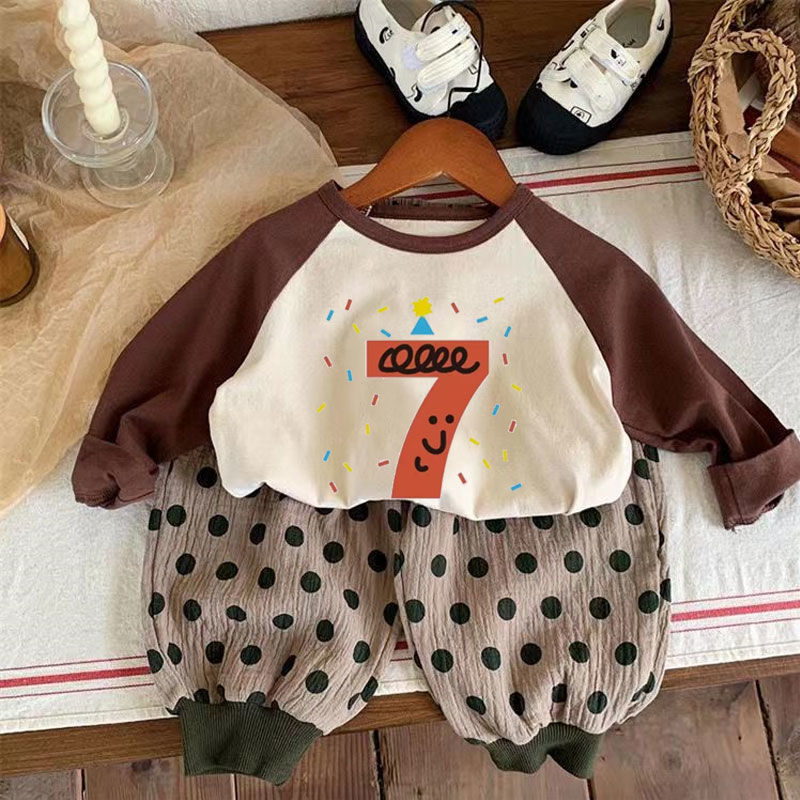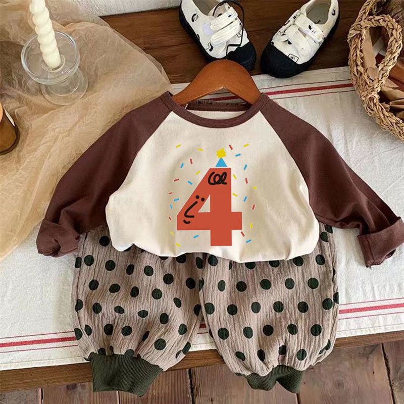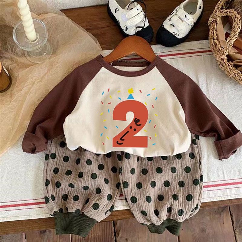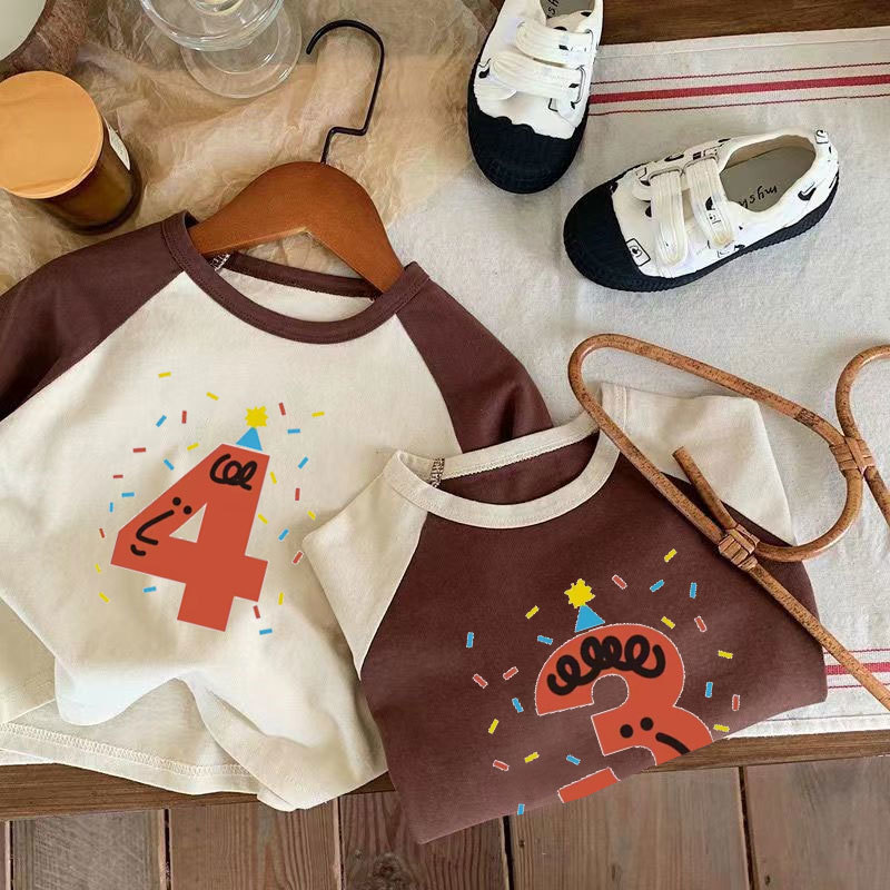 어린이 아기의 새로운 긴팔 티셔츠 생일 디지털 웨스턴 스타일 소년 소녀 봄 가을 사진 탑 T 트렌디스토어 가기