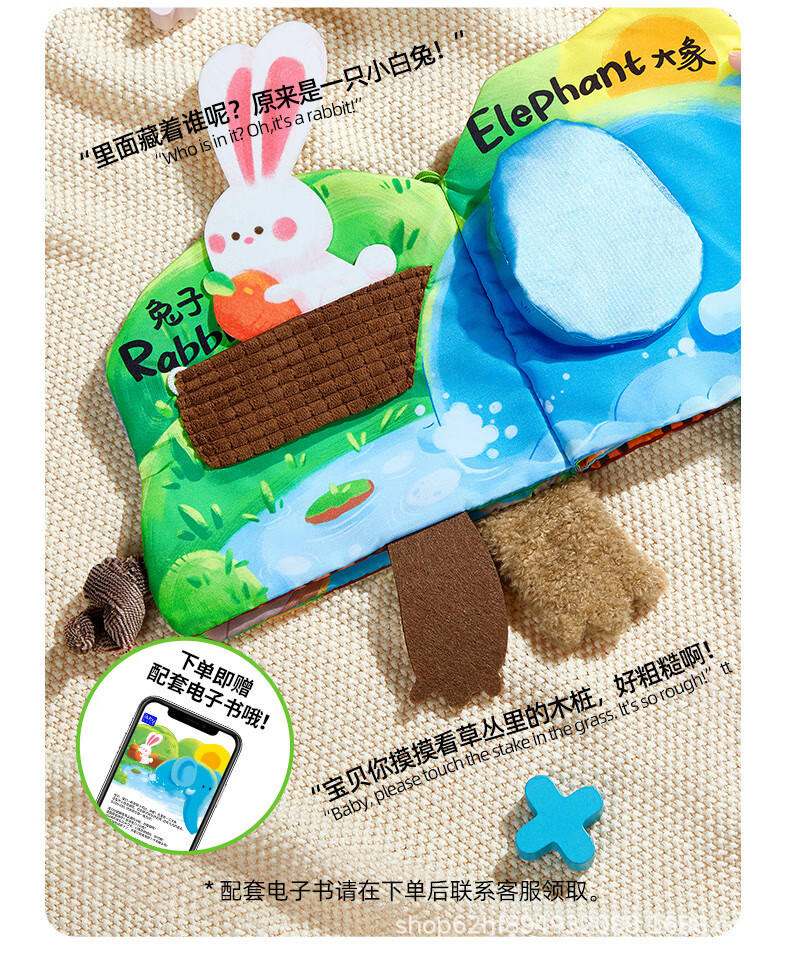 입체적인 꼬리 옷감 책 아기가 먹을 수 있는 찢지 않는 아기 조기 교육 계발청 터치 북스토어 가기