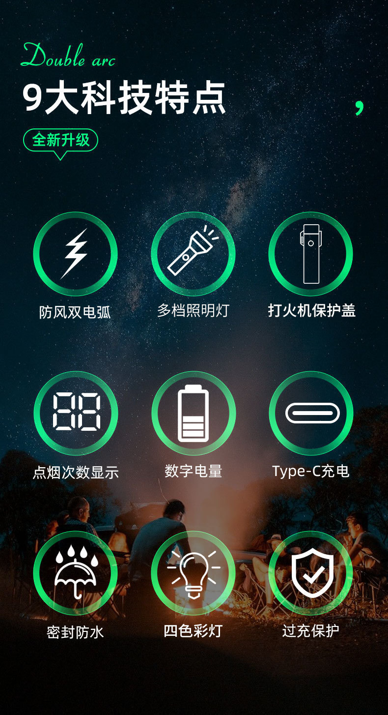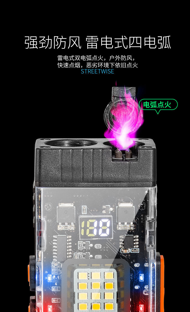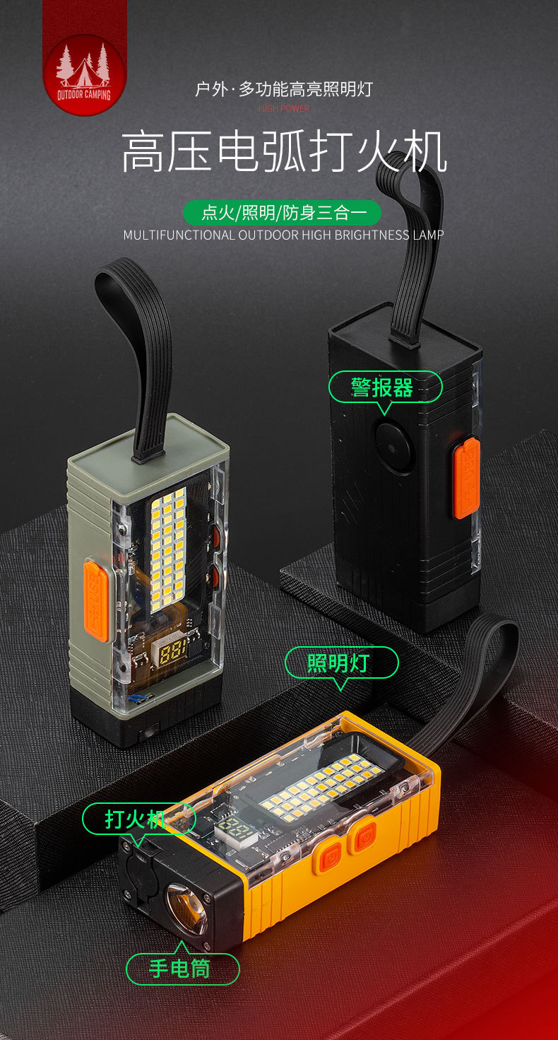 국경 간 야외 에어 아크 라이터 휴대용 충전식 캠핑 도구 빛 방수 고음 경보 등