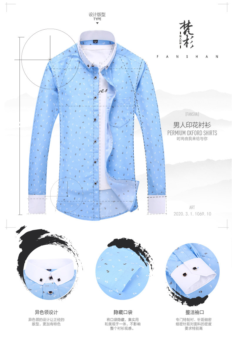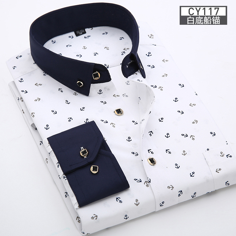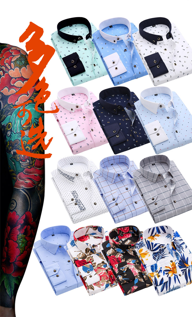새로운 남성 프린트 긴팔 셔츠 한국식 슬림핏 청소년 올매치 체크 셔츠 캐주얼 패션 꽃무늬 셔츠스토어 가기
