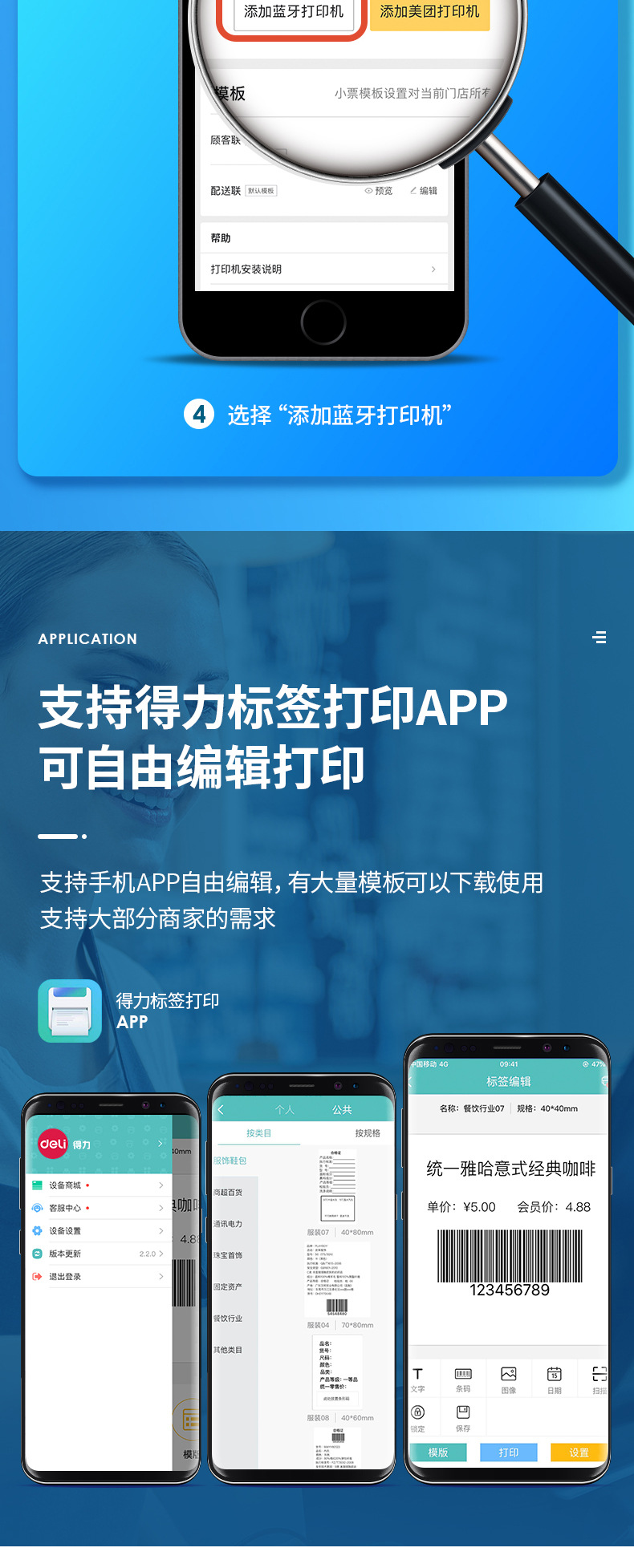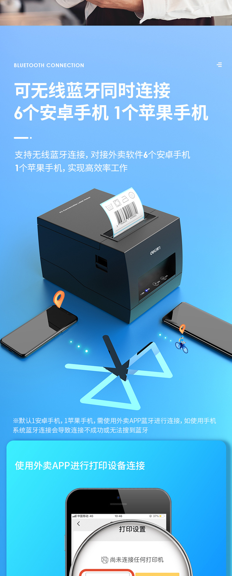 델리 886 라벨 빌 열 프린터 휴대 전화 블루투스 접착 라벨 바코드 빌 단일 기계스토어 가기