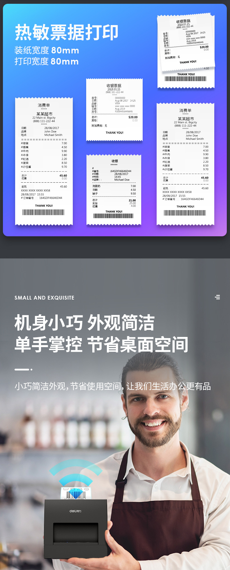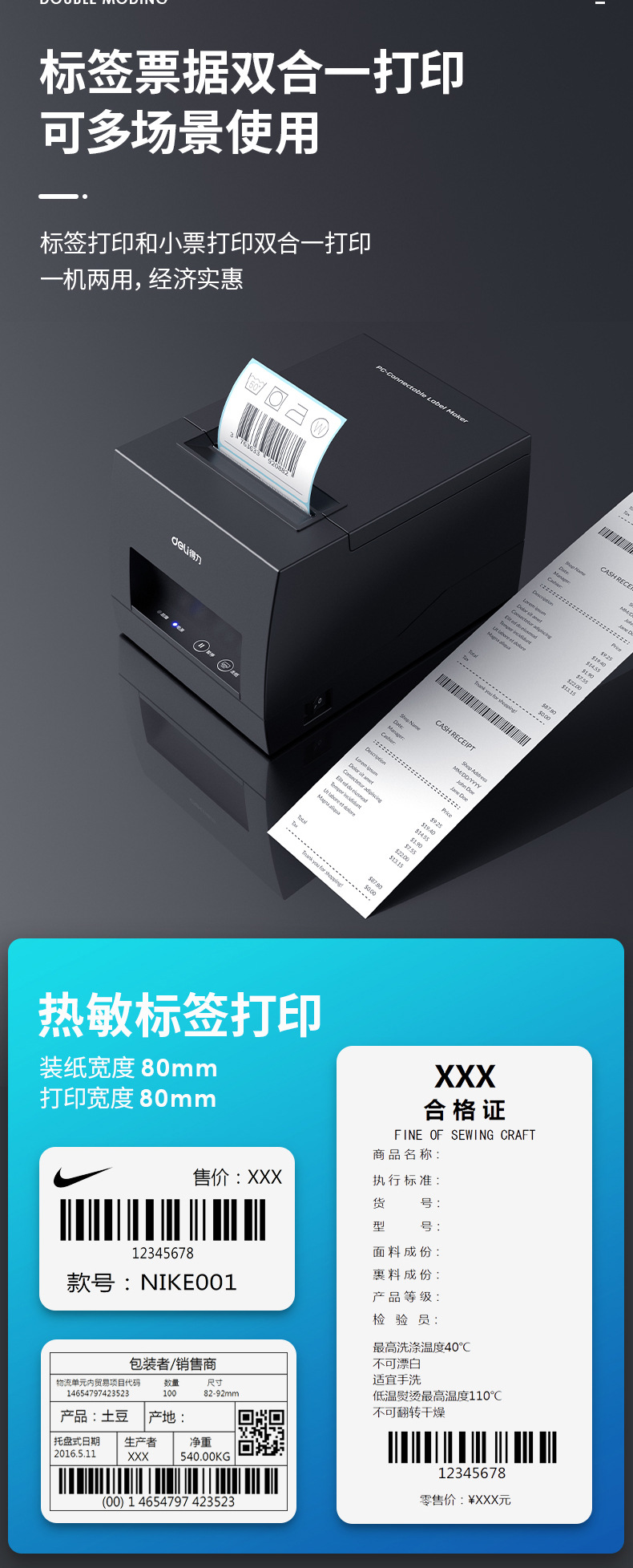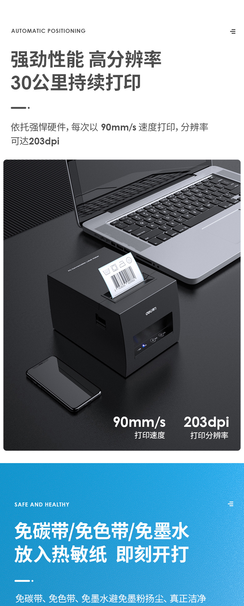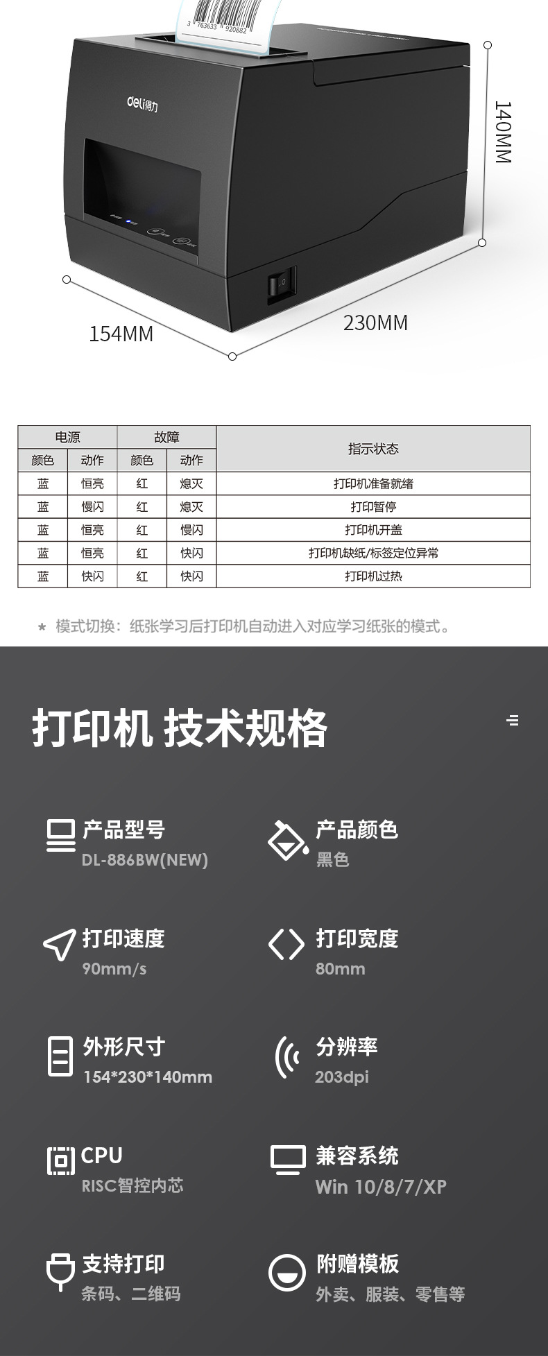 델리 886 라벨 빌 열 프린터 휴대 전화 블루투스 접착 라벨 바코드 빌 단일 기계