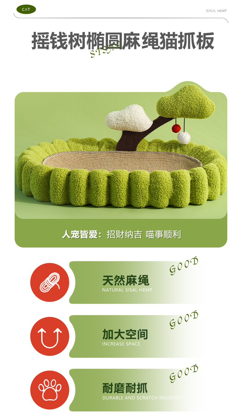 돈 나무 고양이 장난감 초대형 타원형 분지 대마 고양이 둥지 고양이 긁기 판 애완 동물 용품 라운드 고양이 발 보드 개 둥지