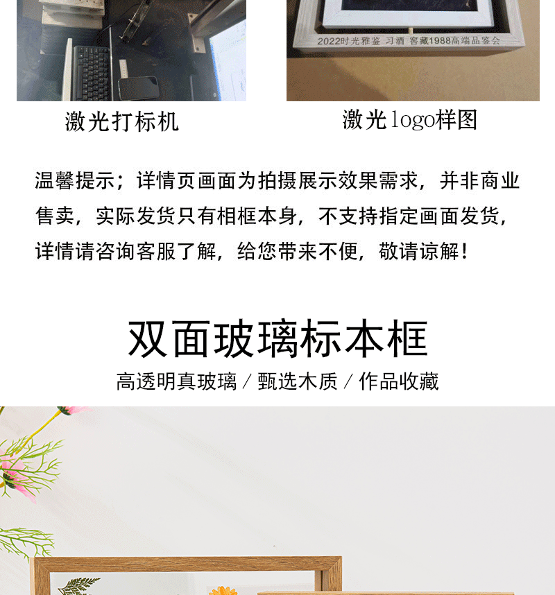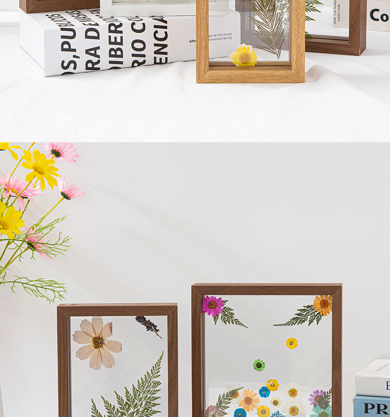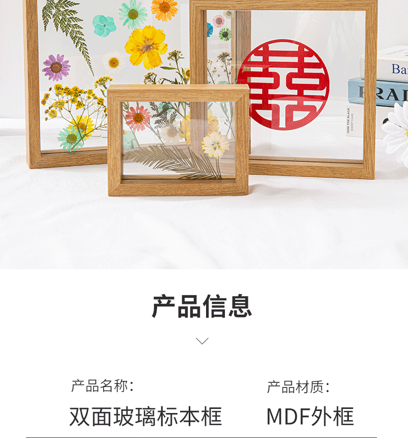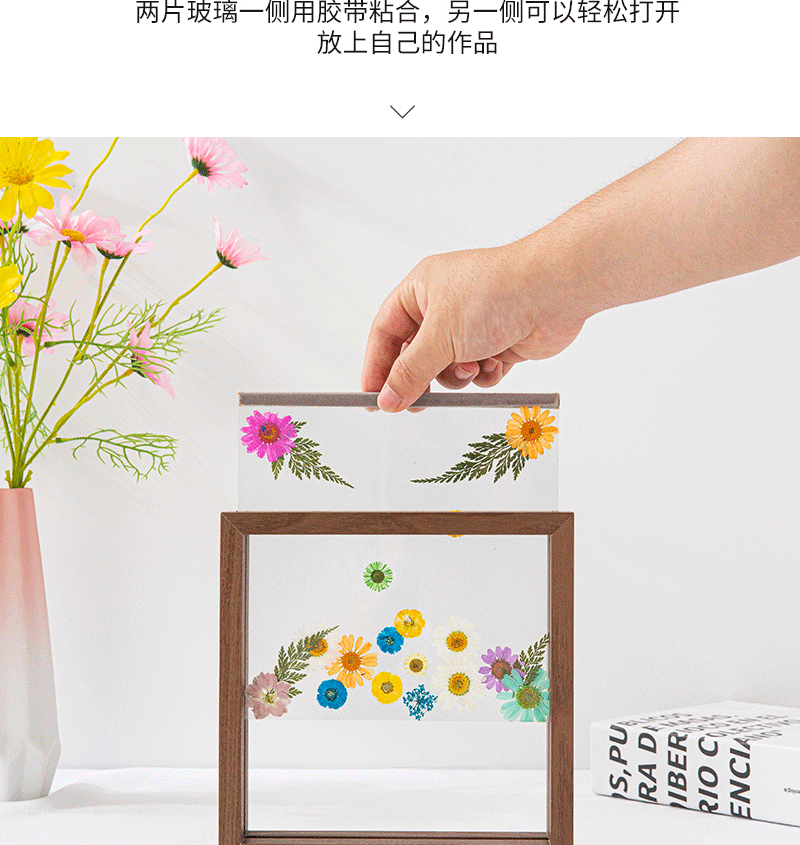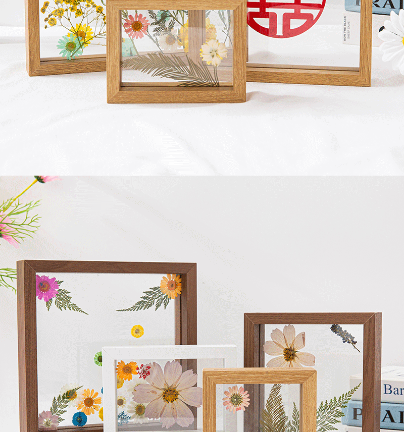 양면 사진 프레임 투명 유리 해피 워드 클립 잎 조각 장식품 식물 표본 양각 프레임 종이 컷 액자 테이블스토어 가기