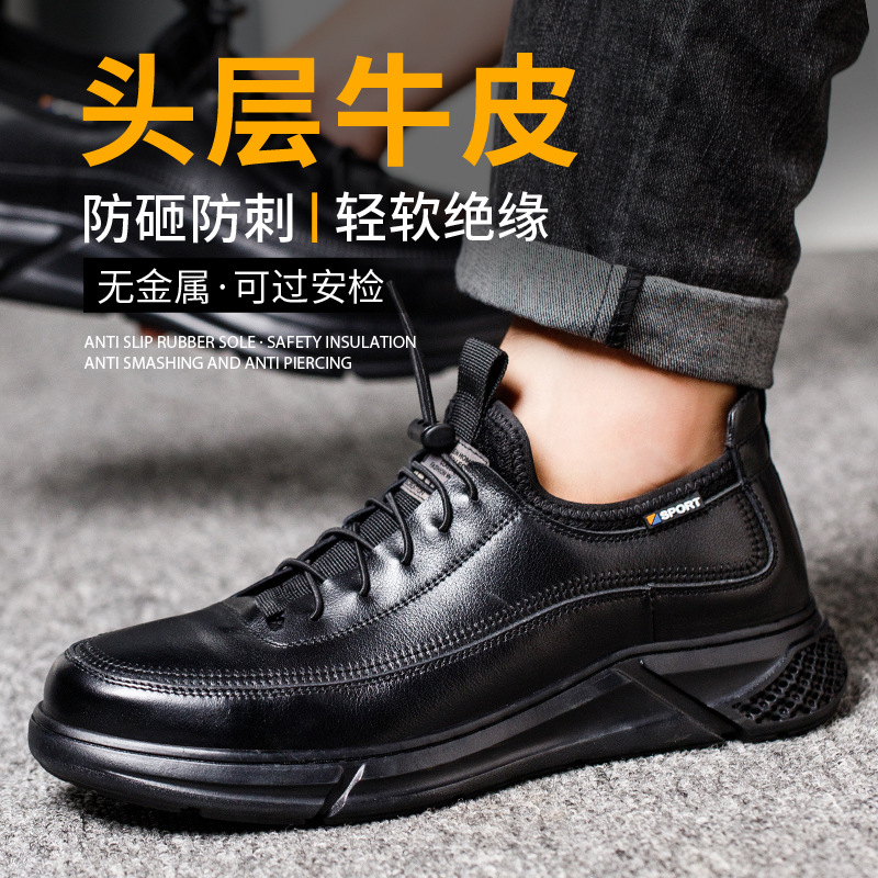 노동 보호 신발 남성용 안티 스매싱 및 안티 피어싱 경량 내마모성 안전 신발 제로 금속 플라스틱 Baotou 절연 전기 기술자 소가죽 블랙스토어 가기