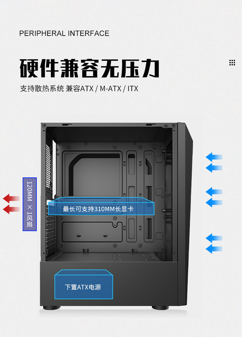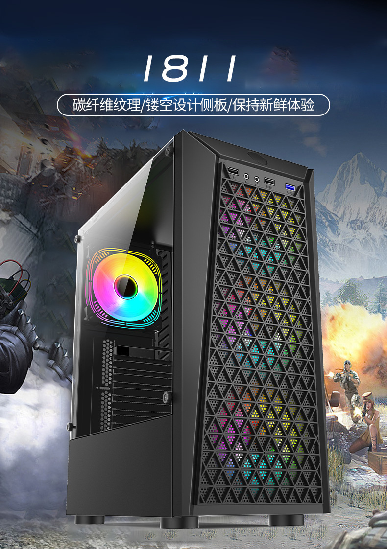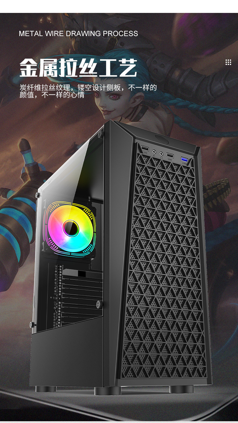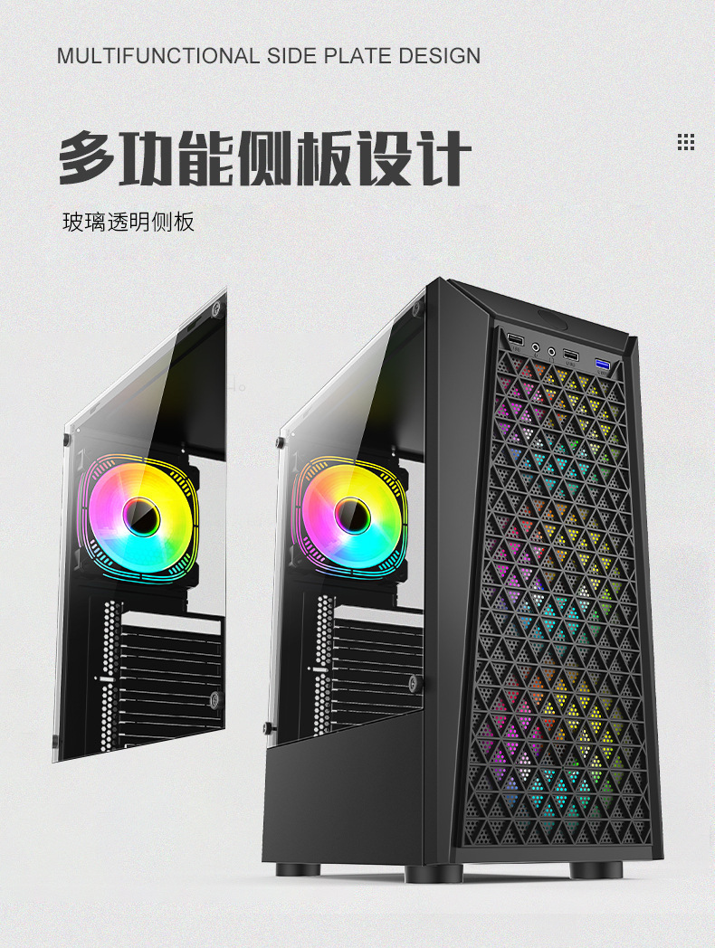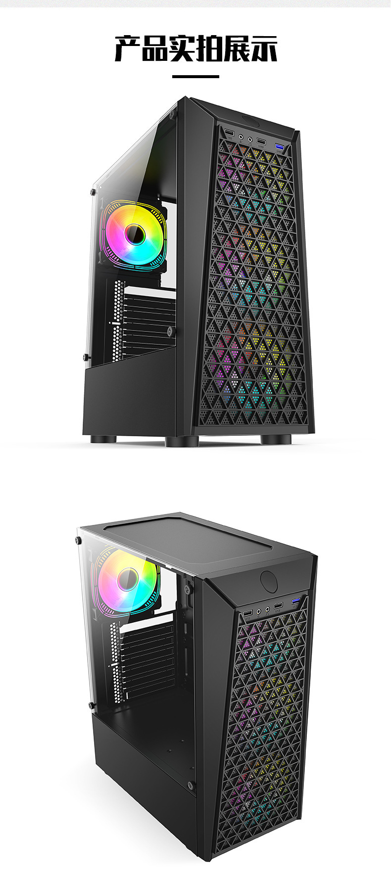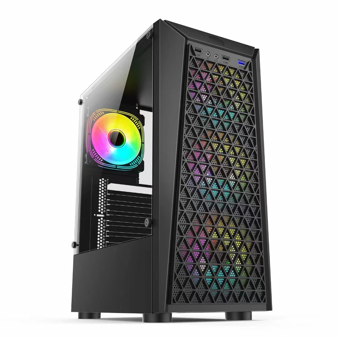 국경 간 데스크탑 컴퓨터 PC 호스트 쉘 ATX 강화 유리 파노라마 측면 투명 전자 스포츠 게임 수냉식 섀시