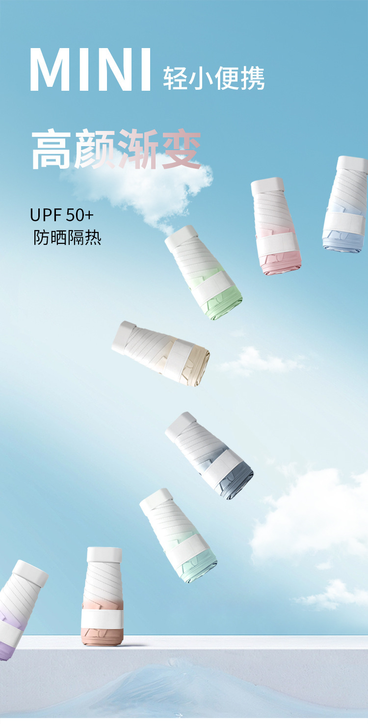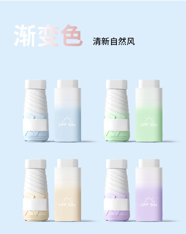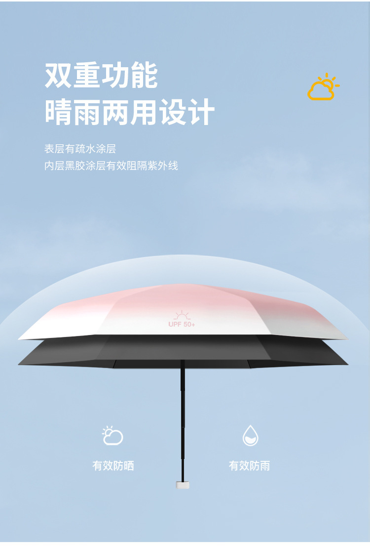 그라디언트 미니 카드 차양 태양 우산 자외선 차단제 자외선 차단 소형 휴대용 여성용 이중 사용 접이식 블랙 접착제