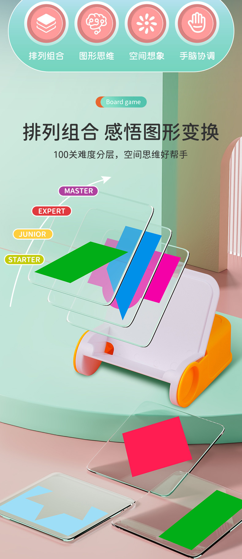국경을 넘는 다양한 기하학적 공간 사고 퍼즐, 다양한 색상의 테이블 게임, 레이어드 섀도우 장난감스토어 가기