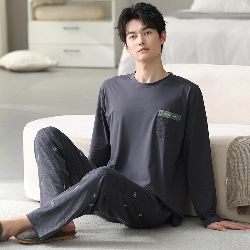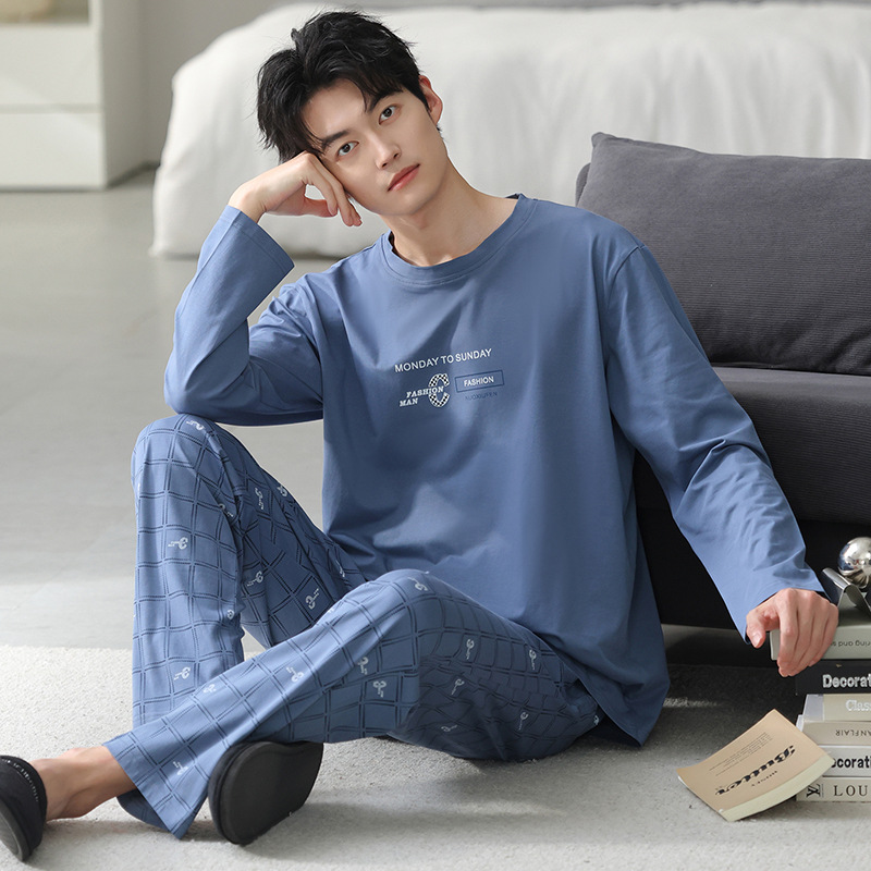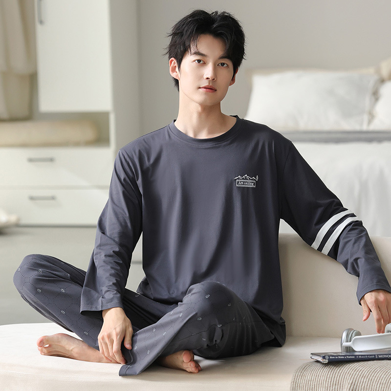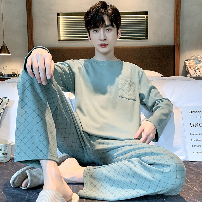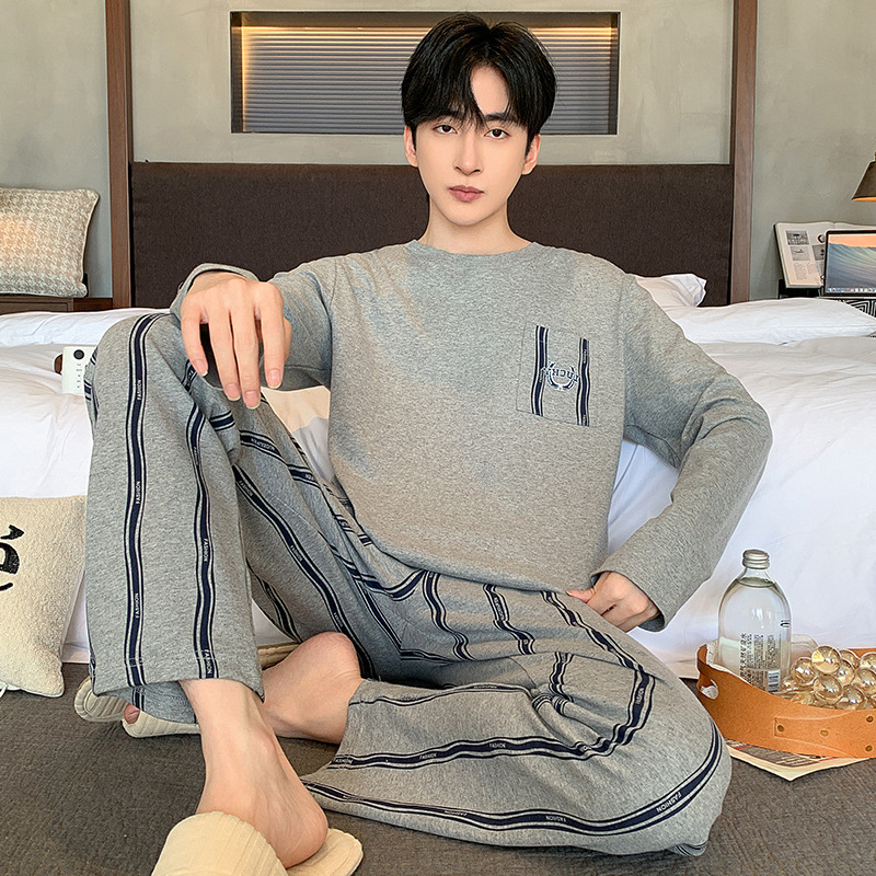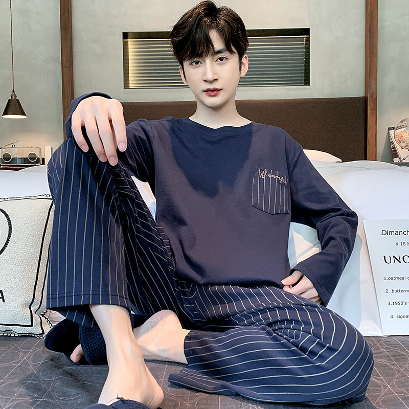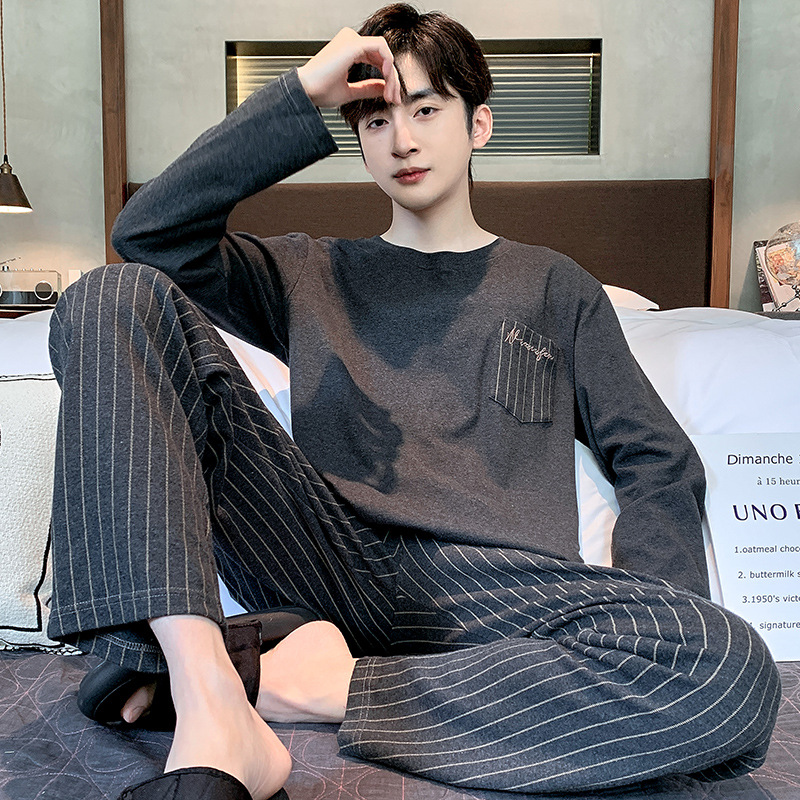 잠옷 남자의 봄과 가을 면 긴 소매 청소년 캐주얼 아웃웨어 가을 가정 옷 플러스 사이즈 세트 도매스토어 가기