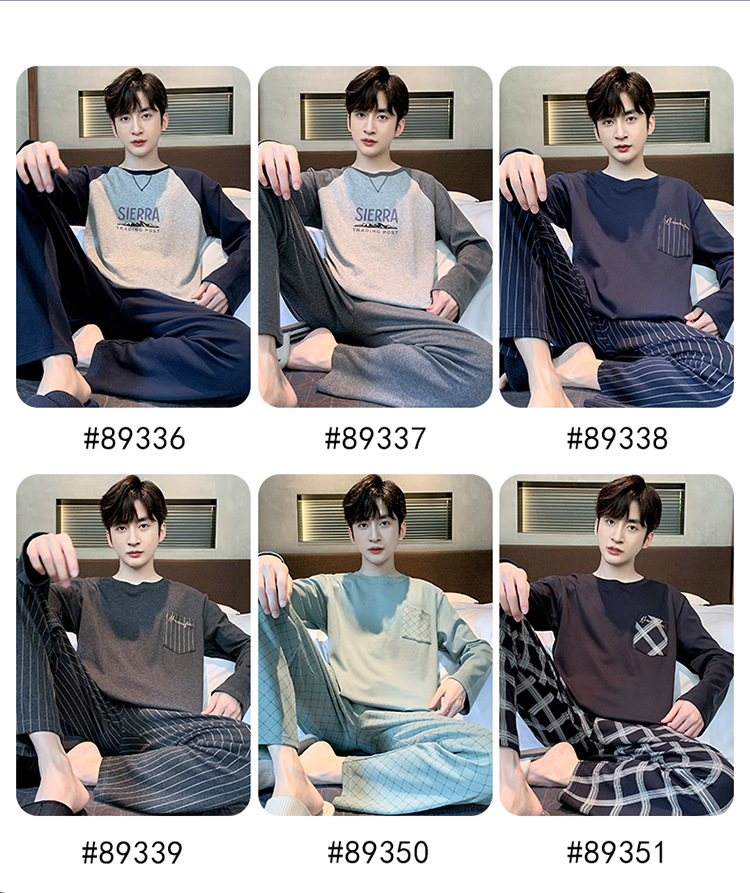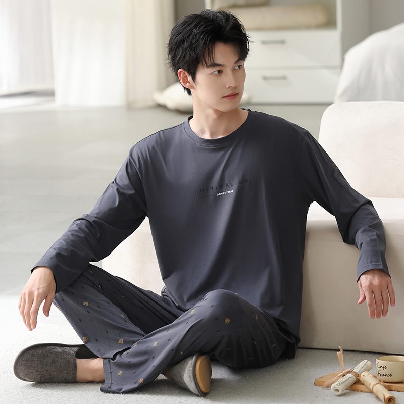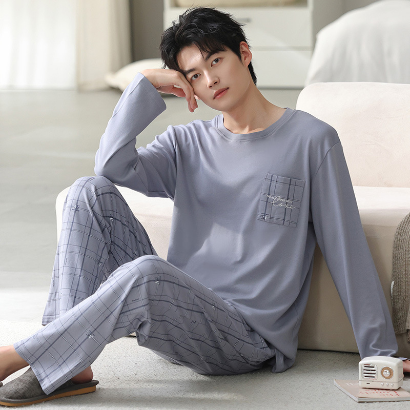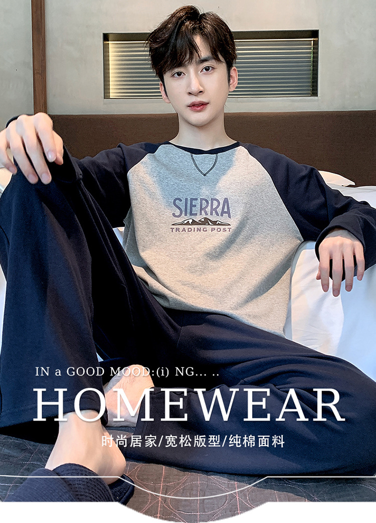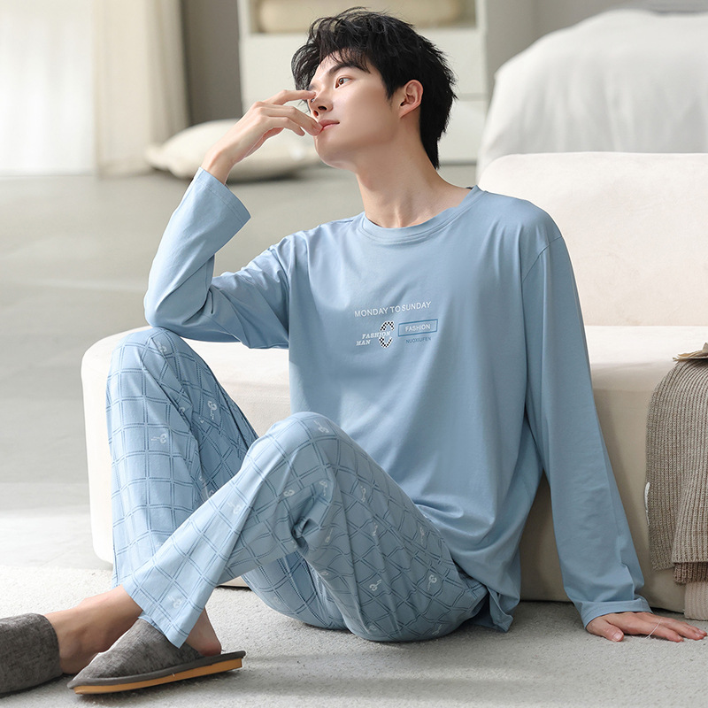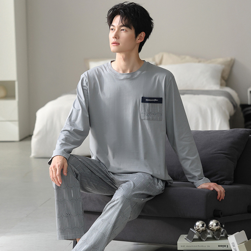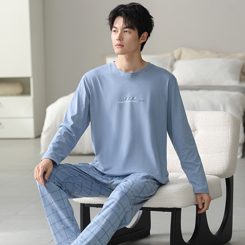 잠옷 남자의 봄과 가을 면 긴 소매 청소년 캐주얼 아웃웨어 가을 가정 옷 플러스 사이즈 세트 도매스토어 가기