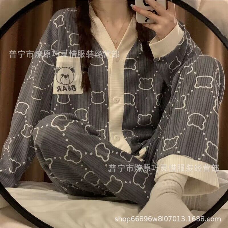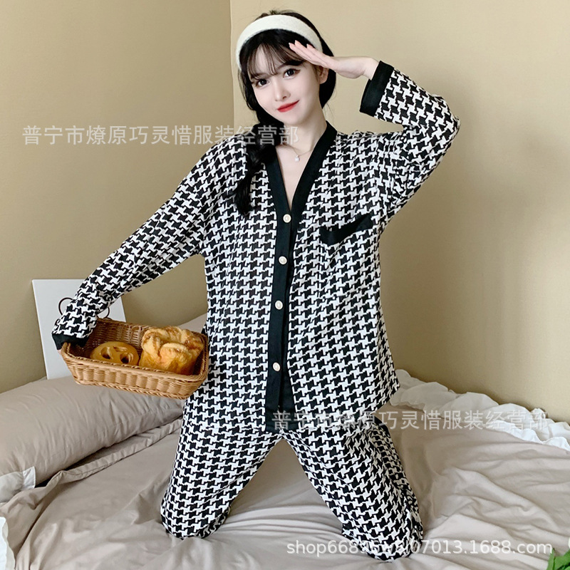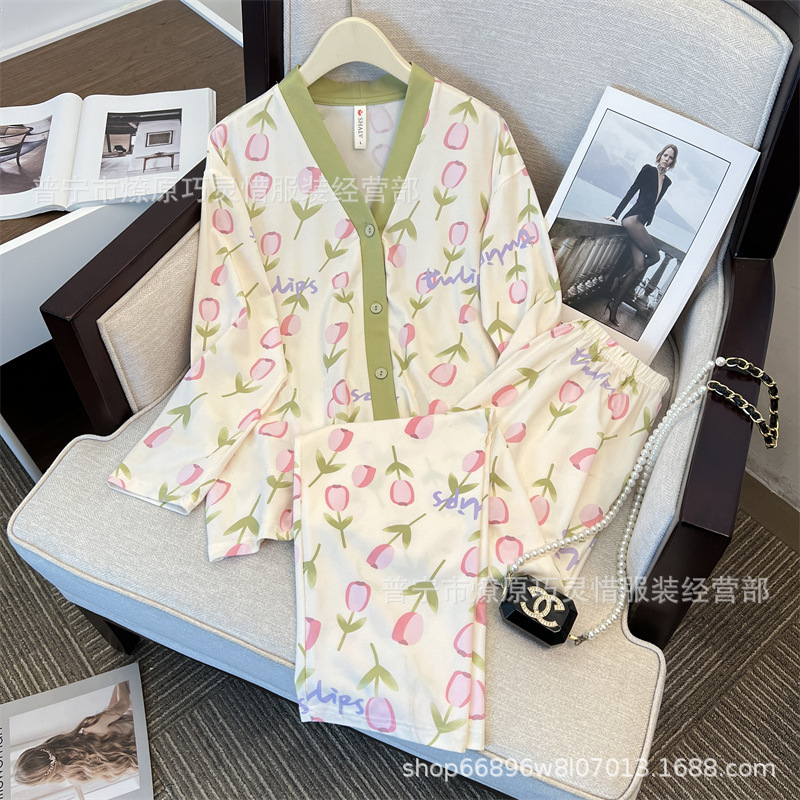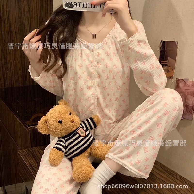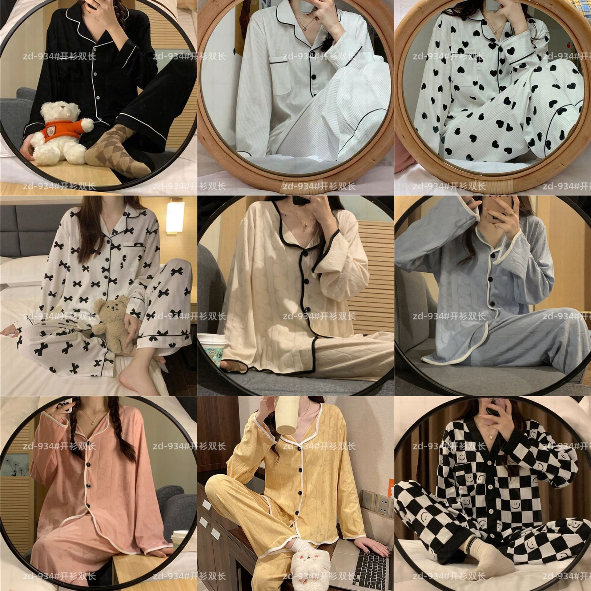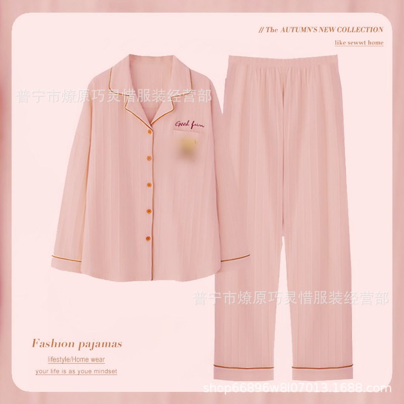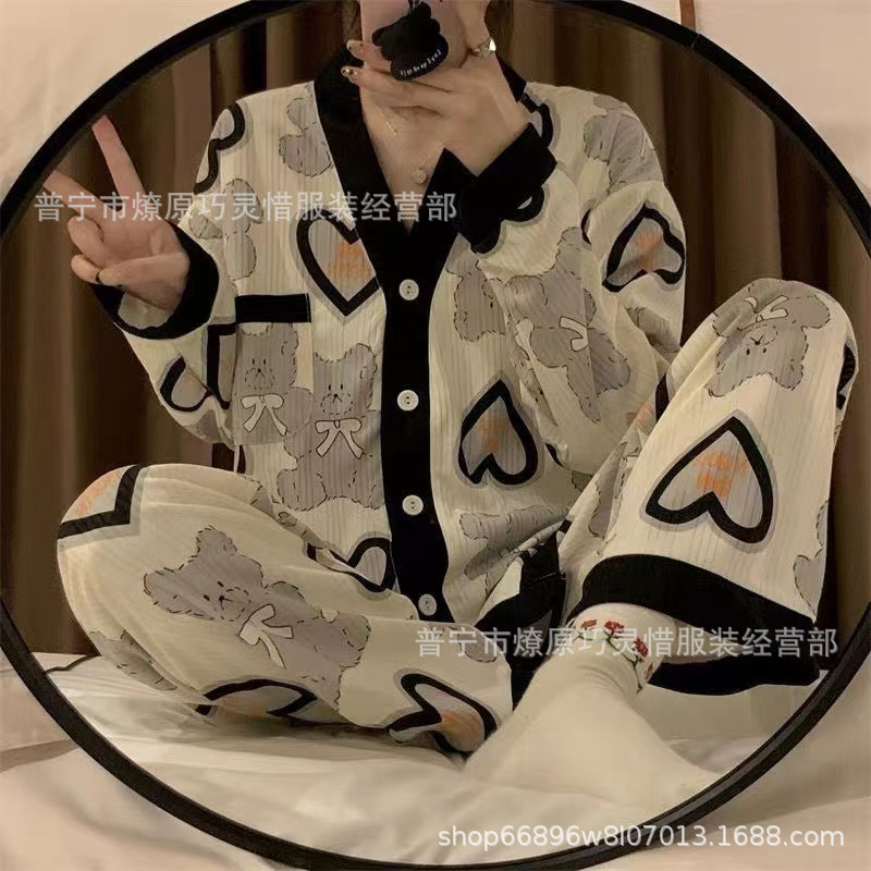 봄과 가을 2023 새로운 잠옷 여자의 긴 소매 얇은 인터넷 연예인 스타일 폭발 캐주얼 편안한 가정 의류 세트스토어 가기