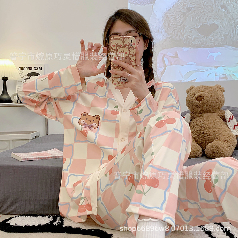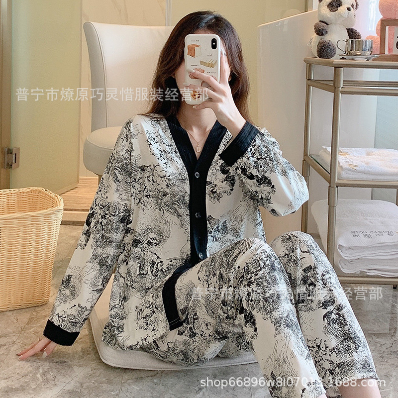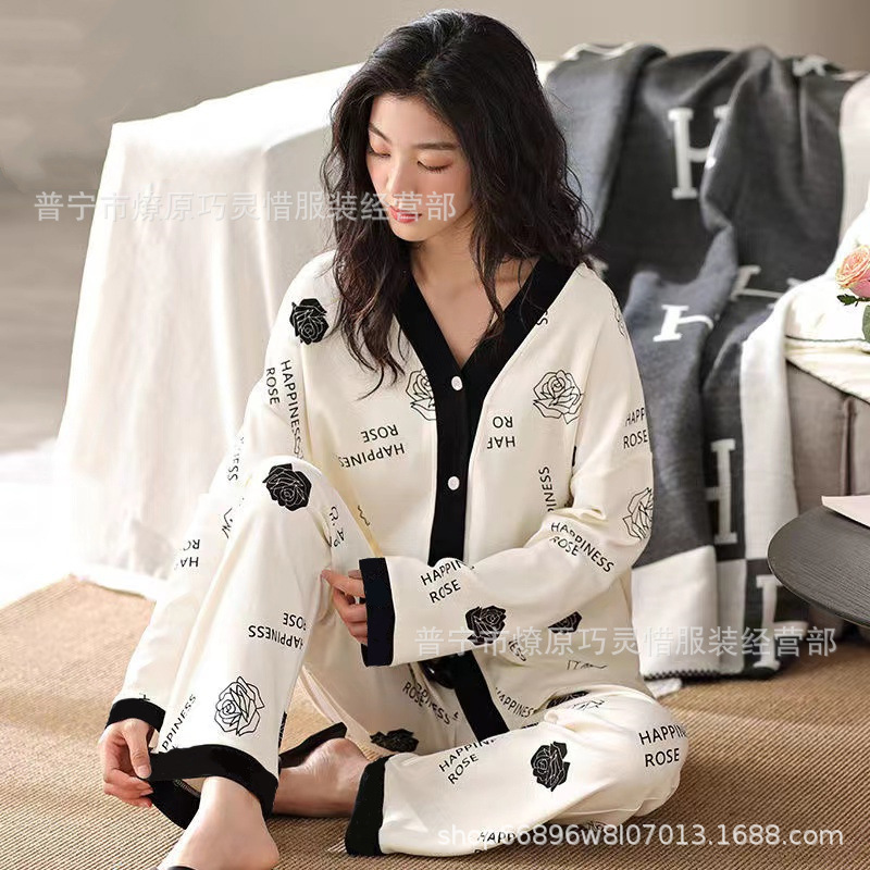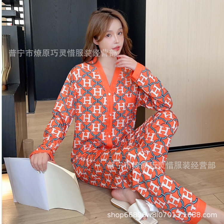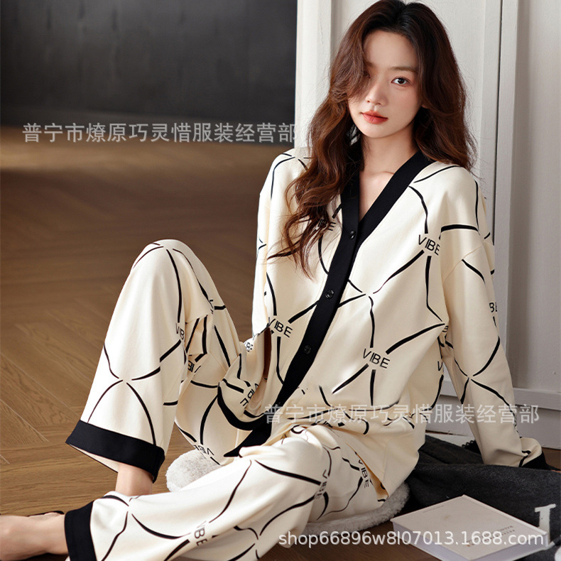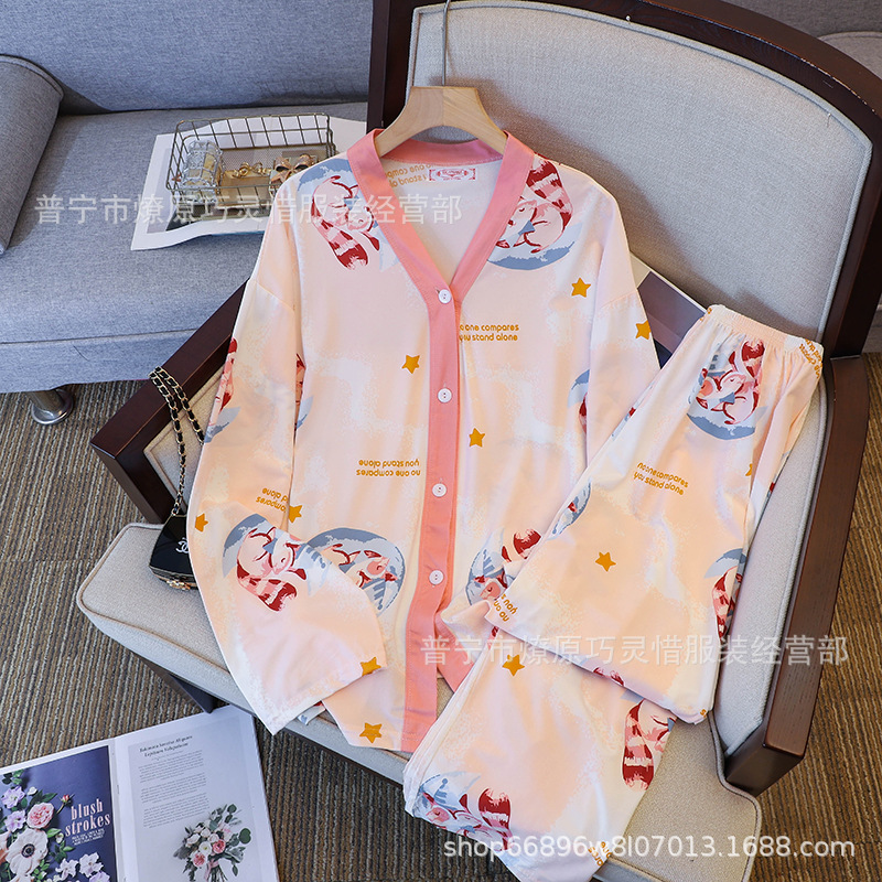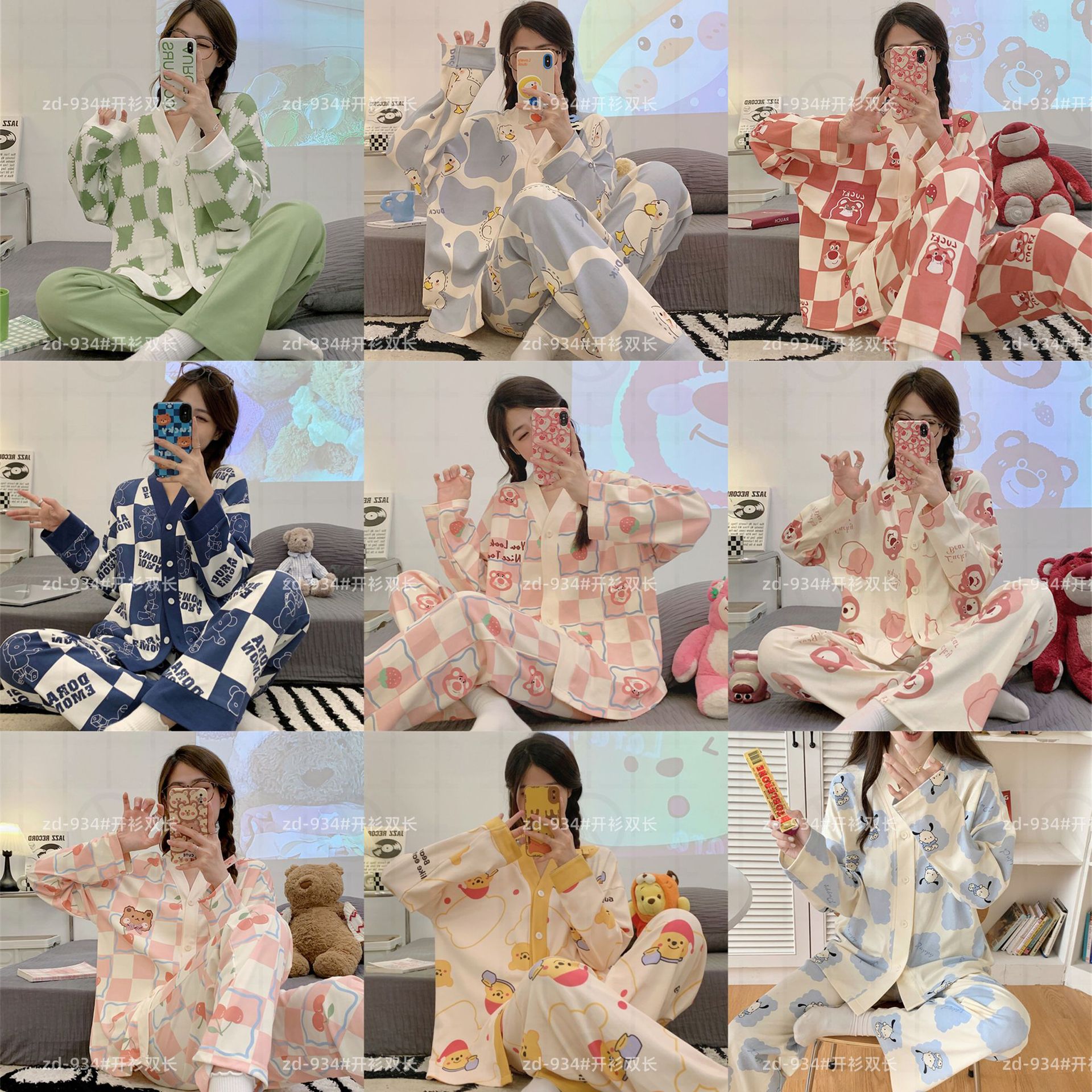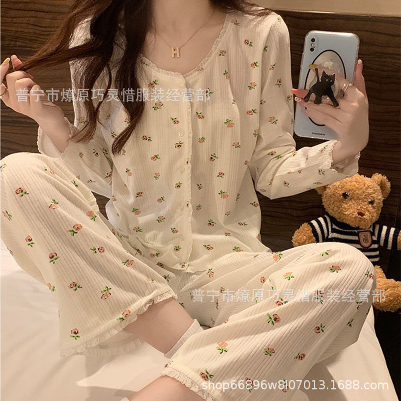 봄과 가을 2023 새로운 잠옷 여자의 긴 소매 얇은 인터넷 연예인 스타일 폭발 캐주얼 편안한 가정 의류 세트스토어 가기