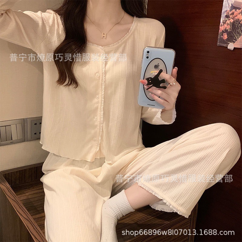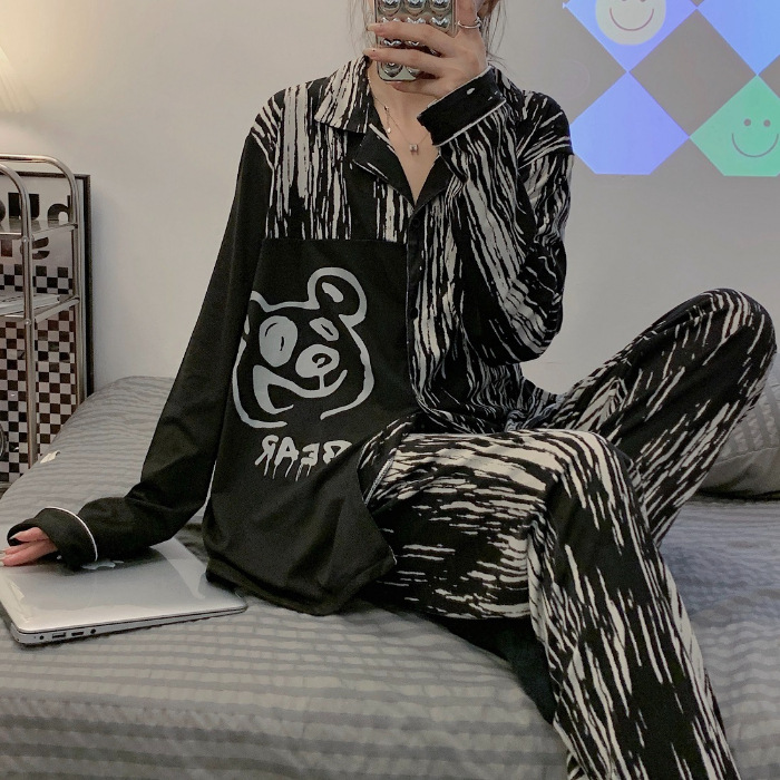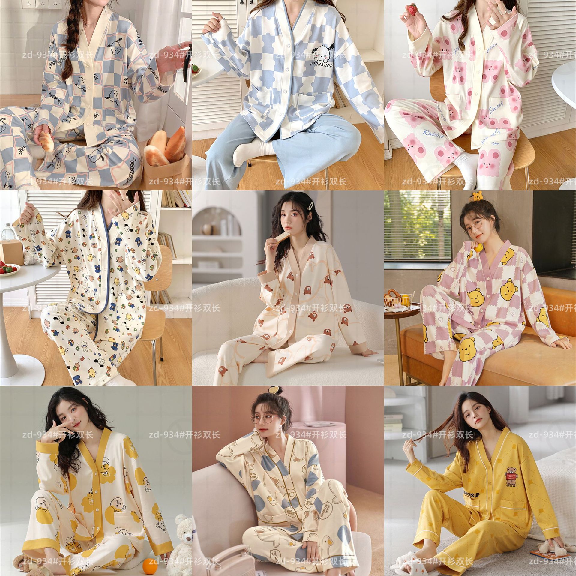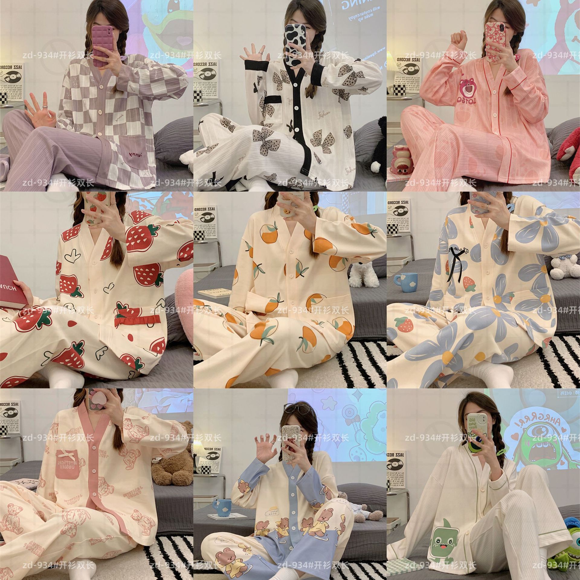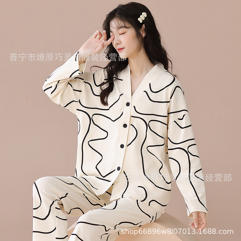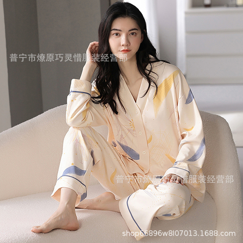 봄과 가을 2023 새로운 잠옷 여자의 긴 소매 얇은 인터넷 연예인 스타일 폭발 캐주얼 편안한 가정 의류 세트스토어 가기
