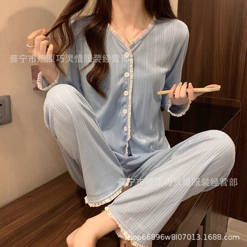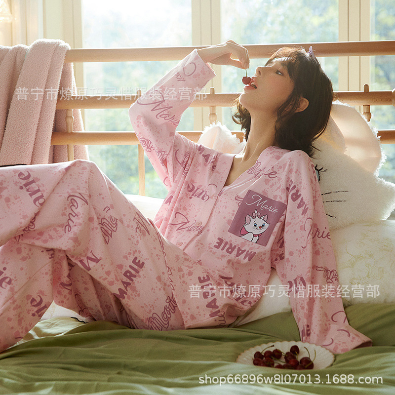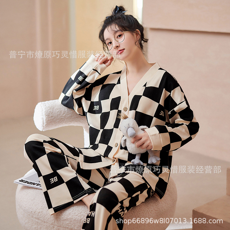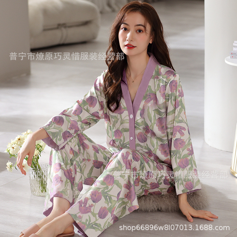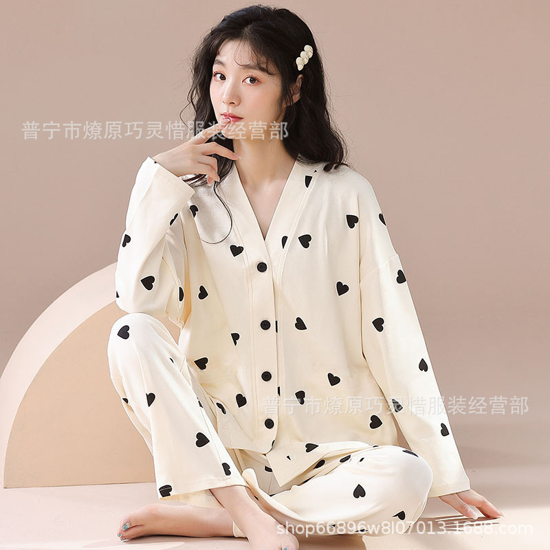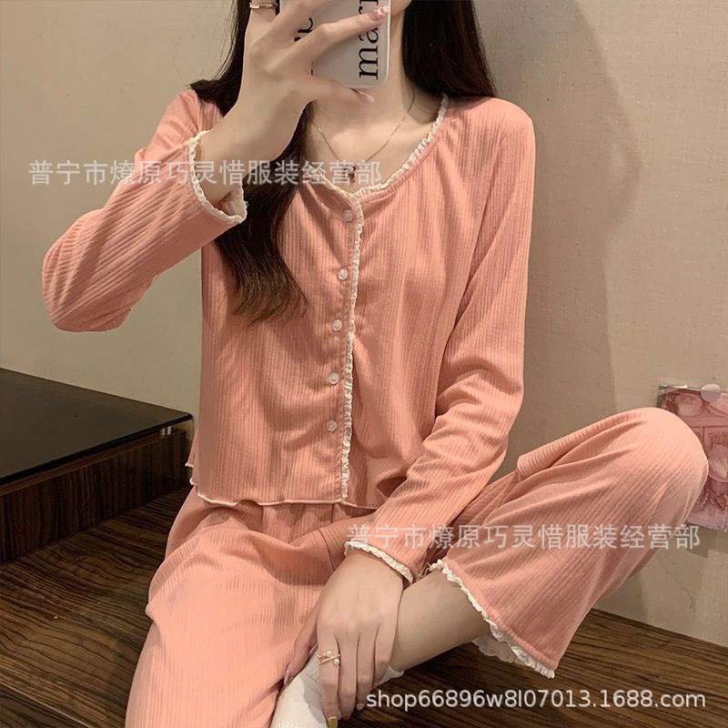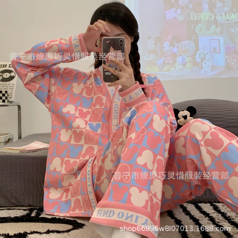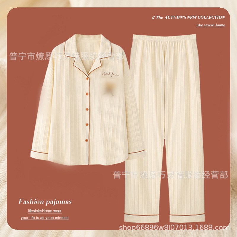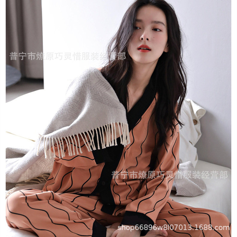 봄과 가을 2023 새로운 잠옷 여자의 긴 소매 얇은 인터넷 연예인 스타일 폭발 캐주얼 편안한 가정 의류 세트스토어 가기