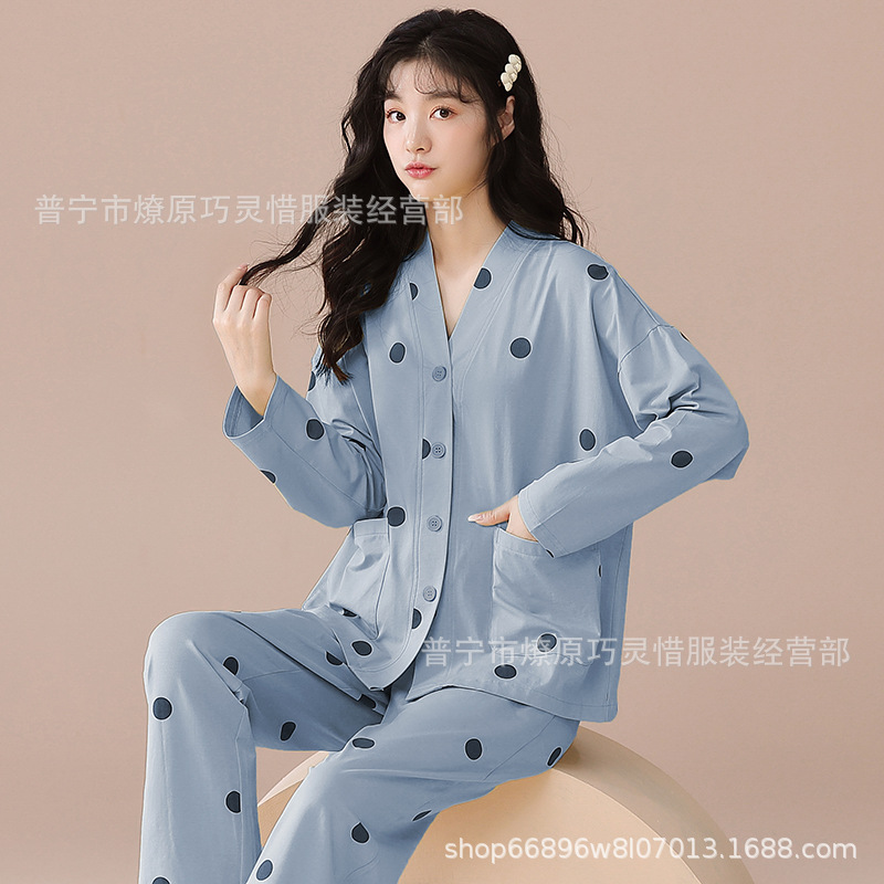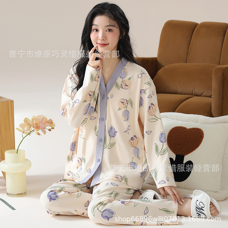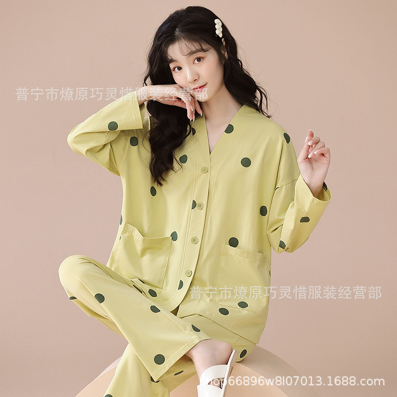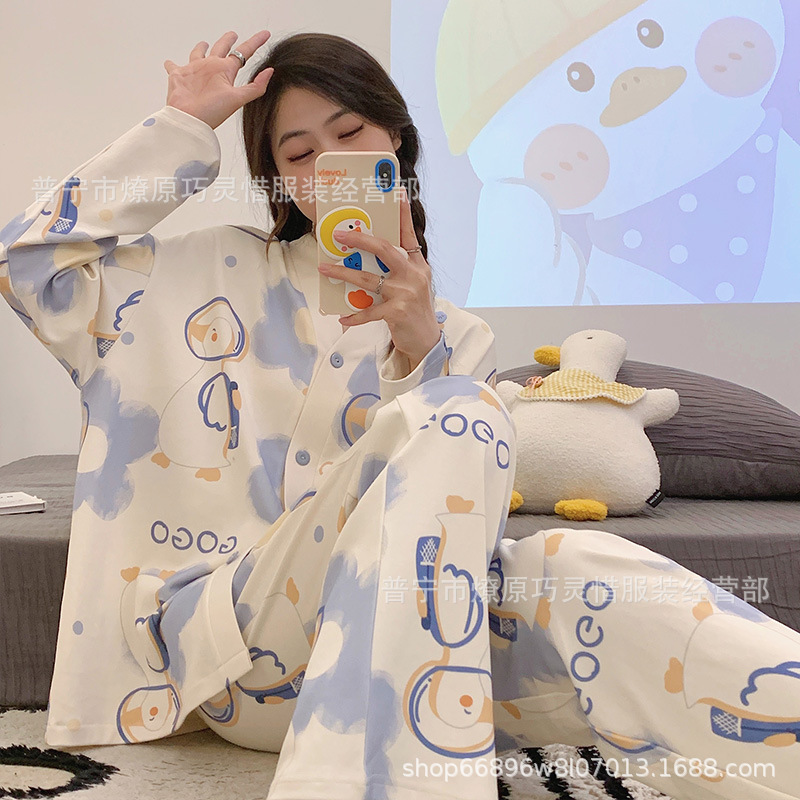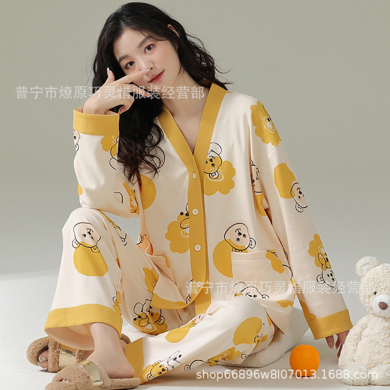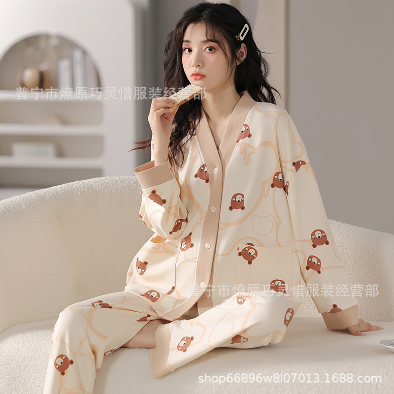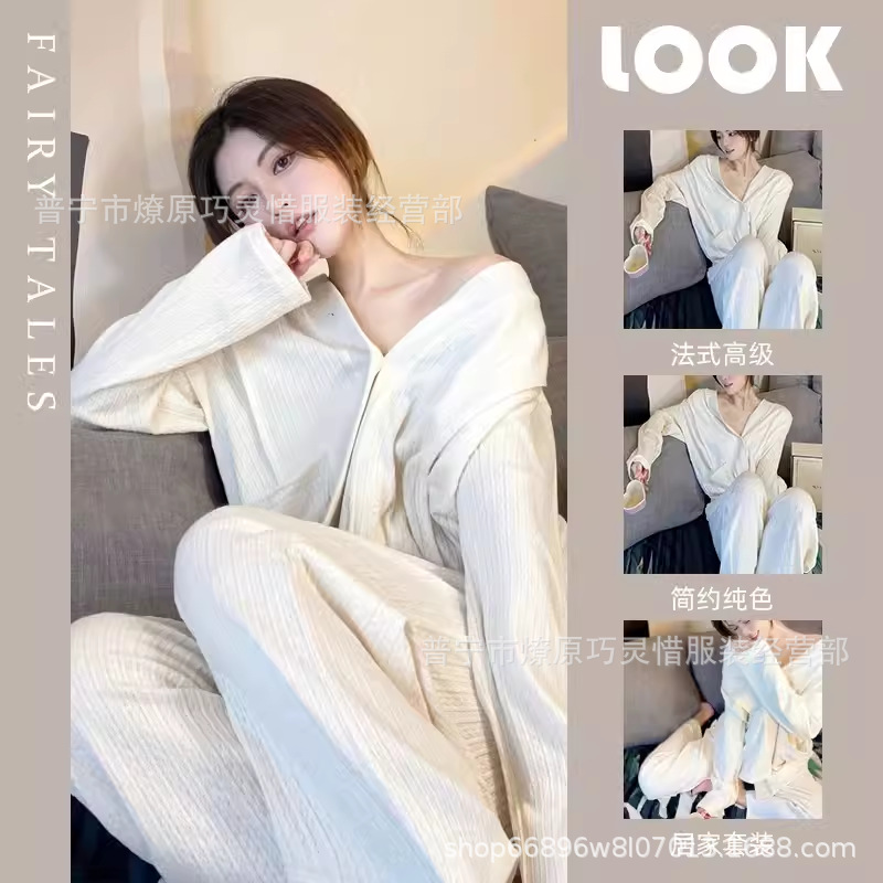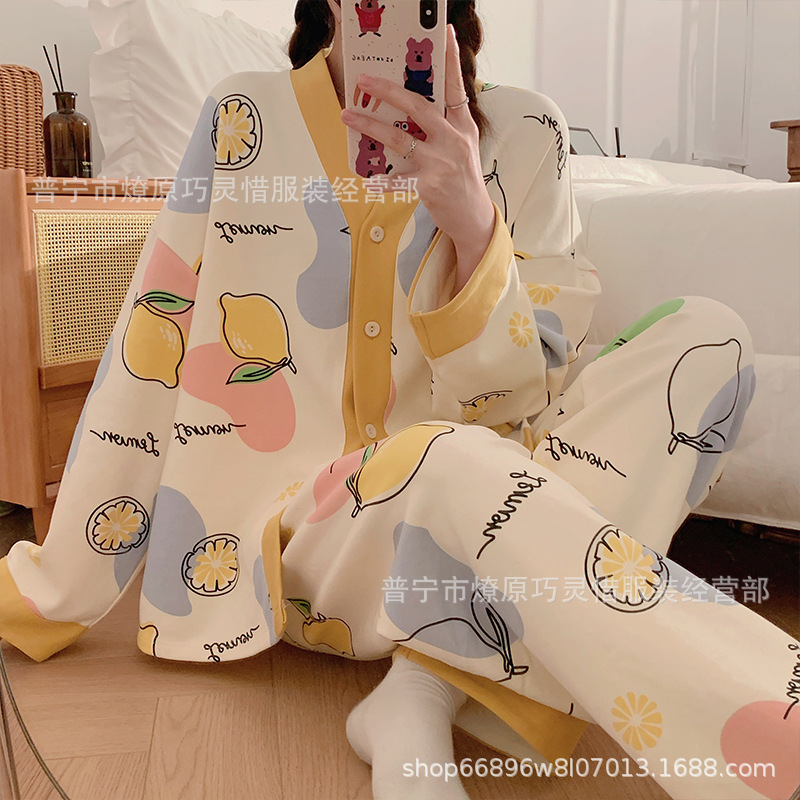 봄과 가을 2023 새로운 잠옷 여자의 긴 소매 얇은 인터넷 연예인 스타일 폭발 캐주얼 편안한 가정 의류 세트스토어 가기