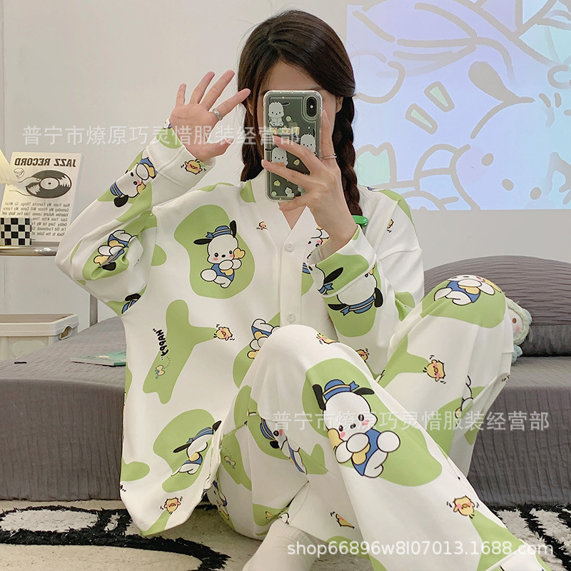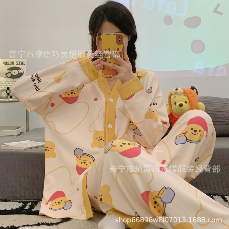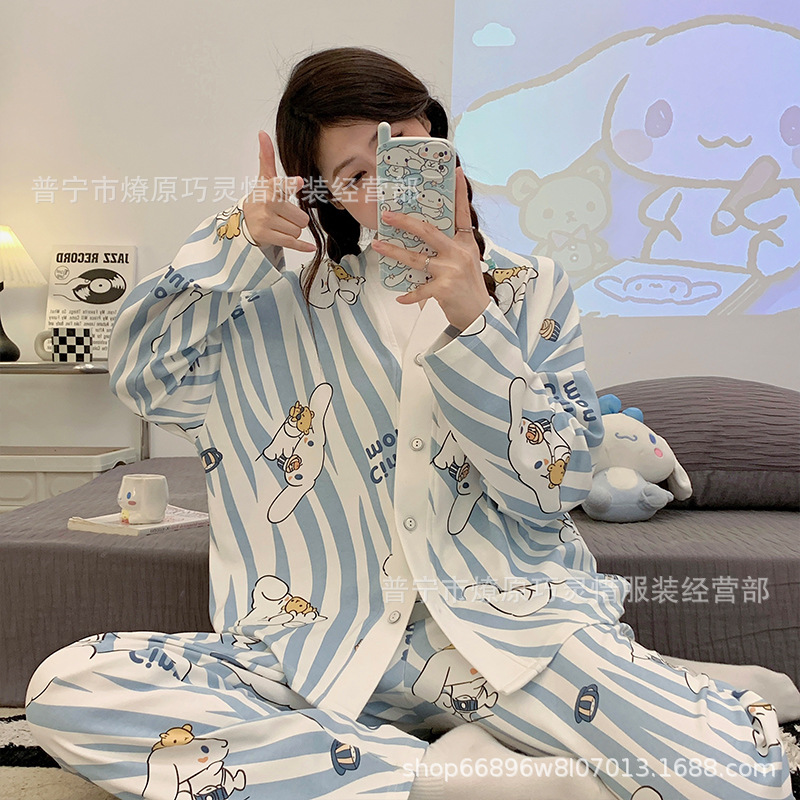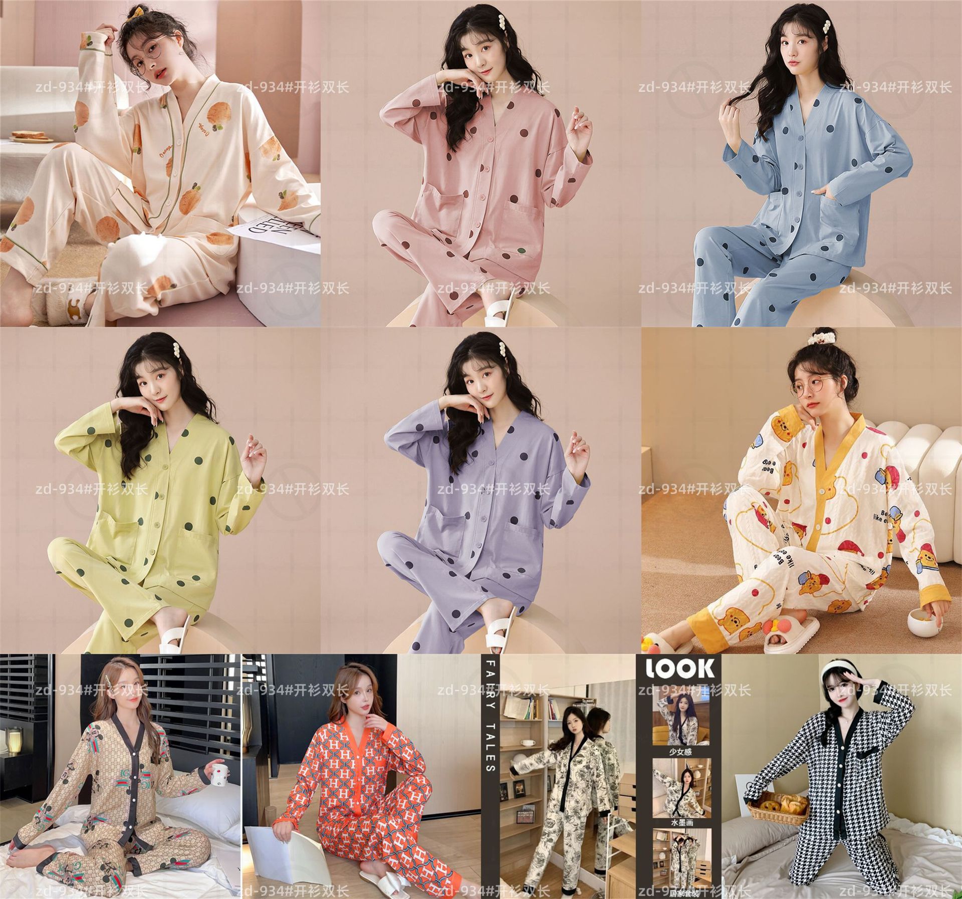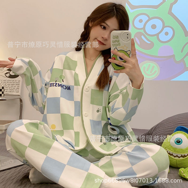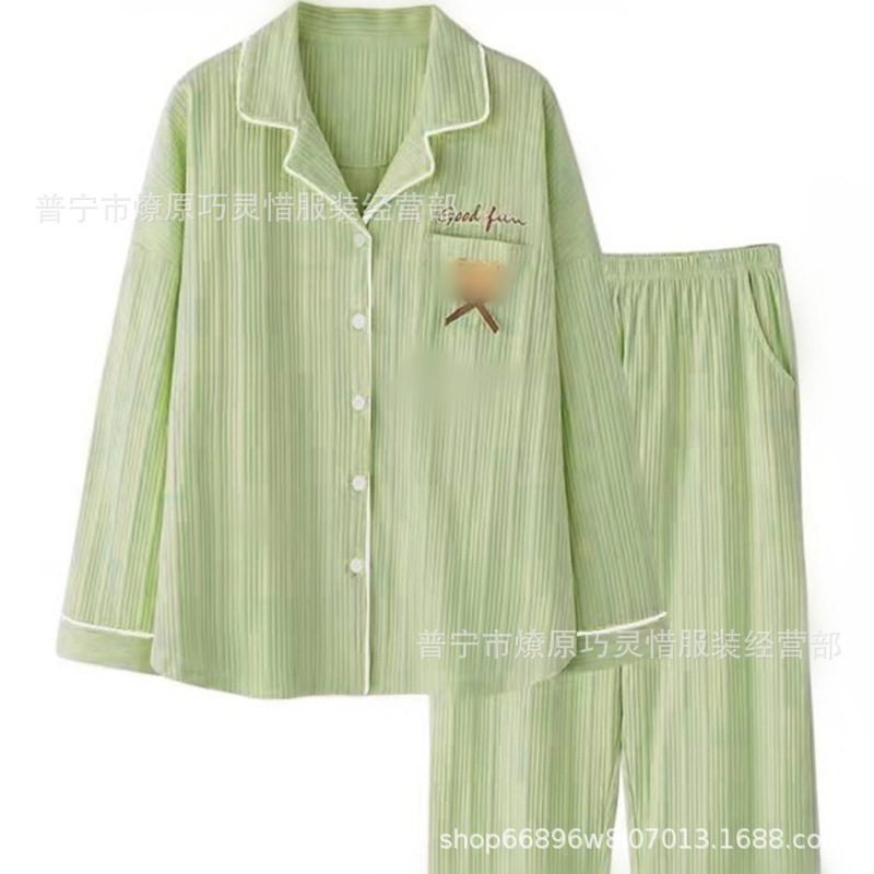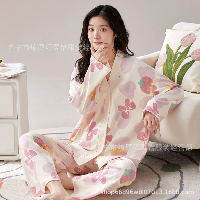 봄과 가을 2023 새로운 잠옷 여자의 긴 소매 얇은 인터넷 연예인 스타일 폭발 캐주얼 편안한 가정 의류 세트스토어 가기