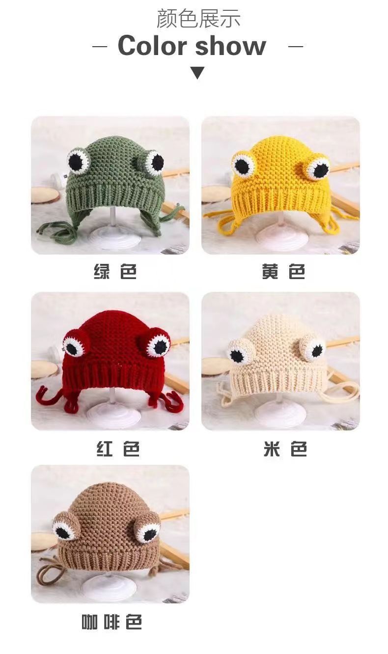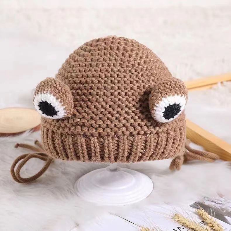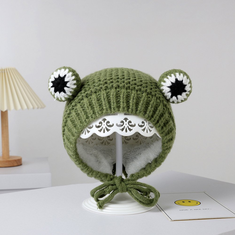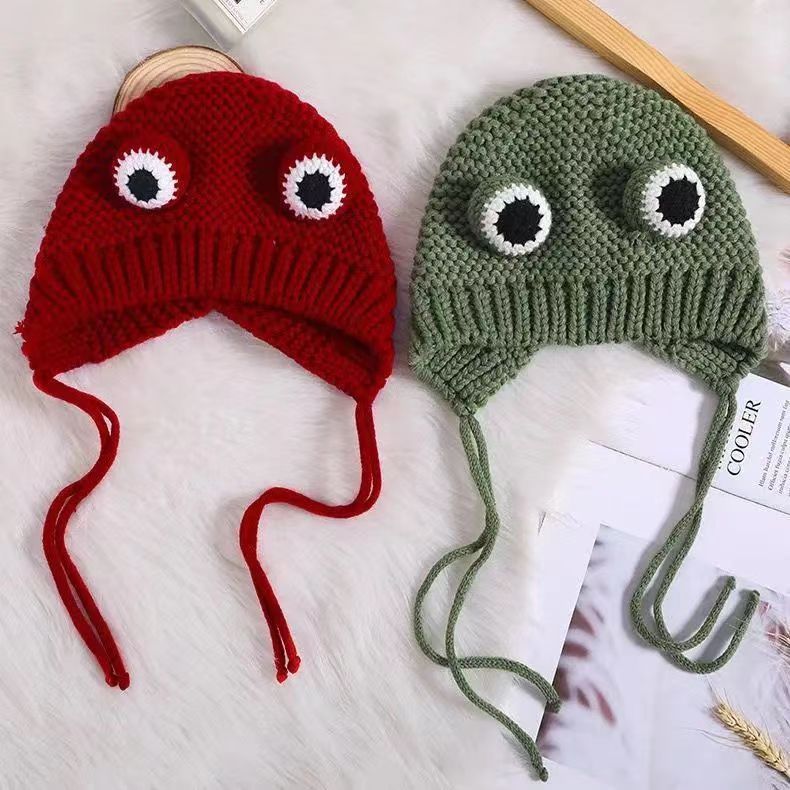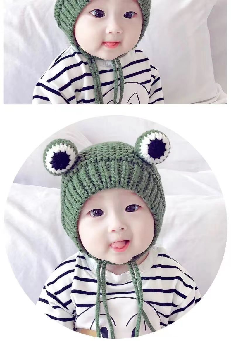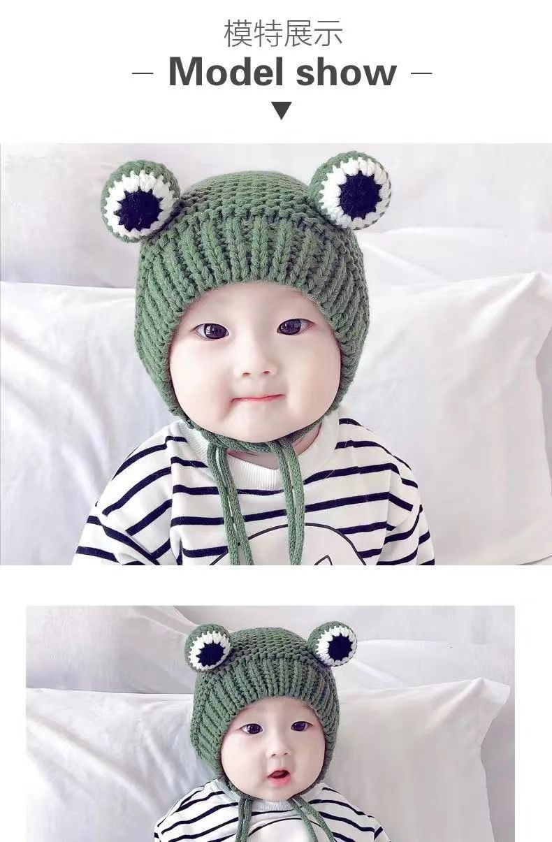니트 모자 유아용 모자 가을 겨울 아기 개구리 모직 모자 귀엽고 트렌디한 재미있는 풀오버 모자 어린이용스토어 가기