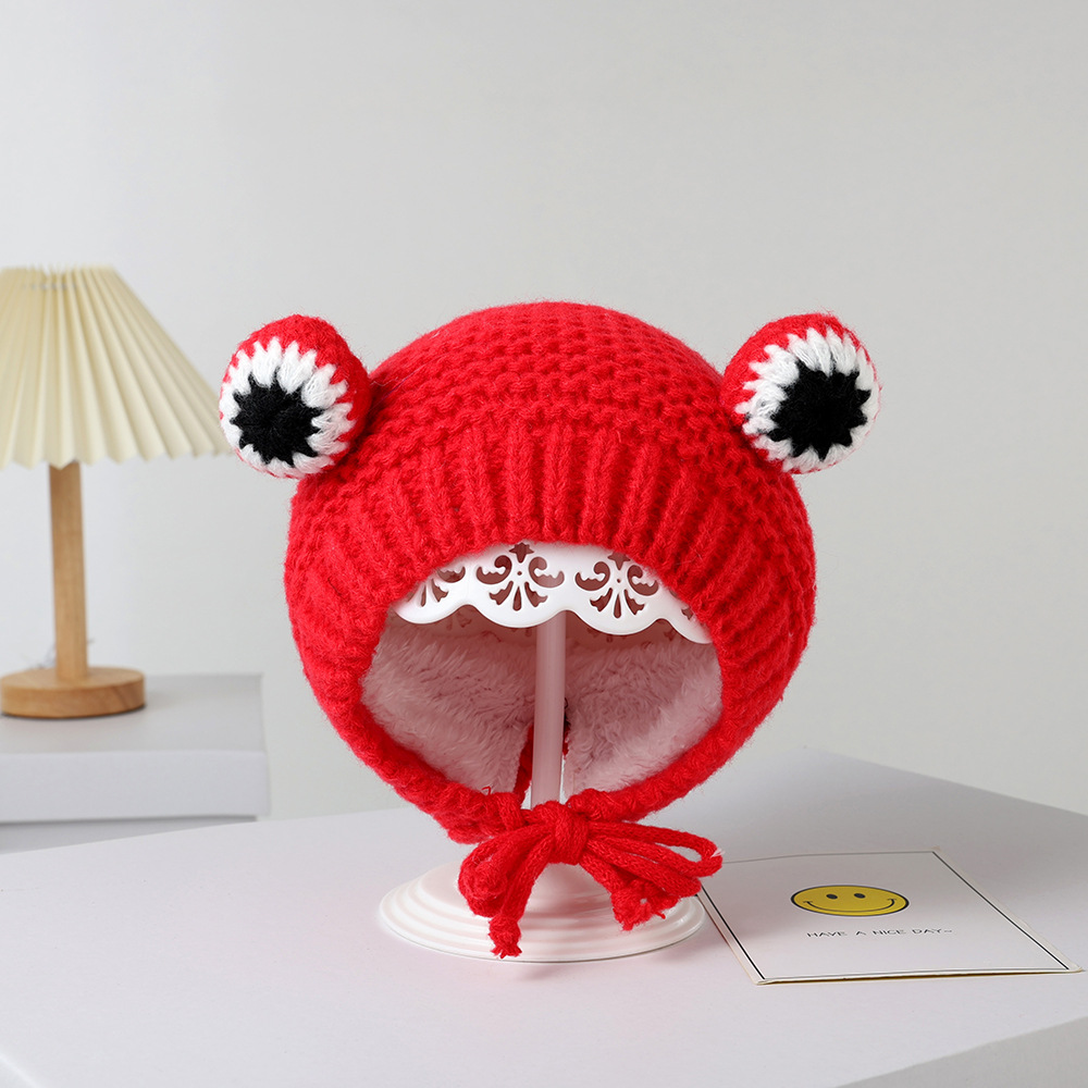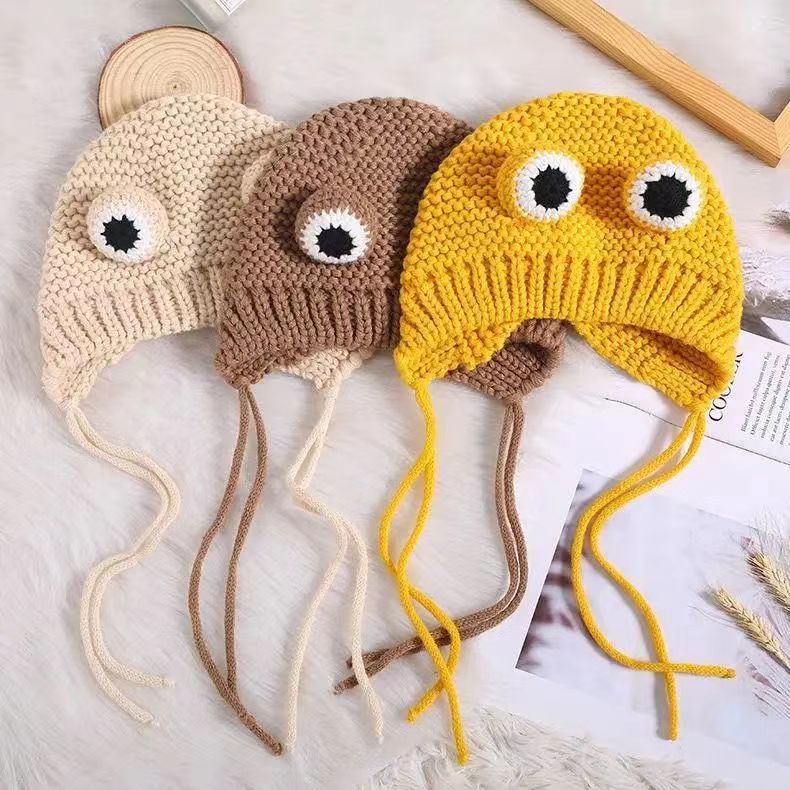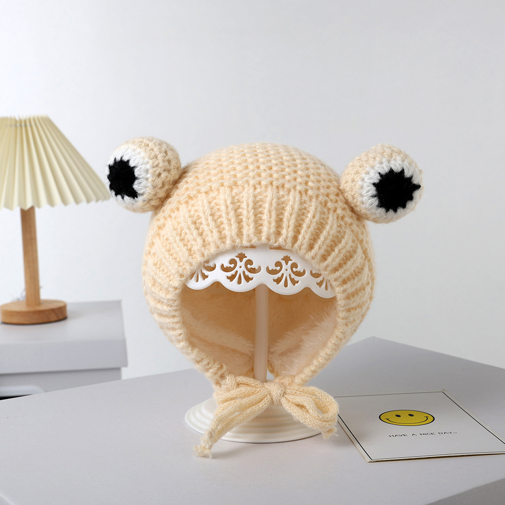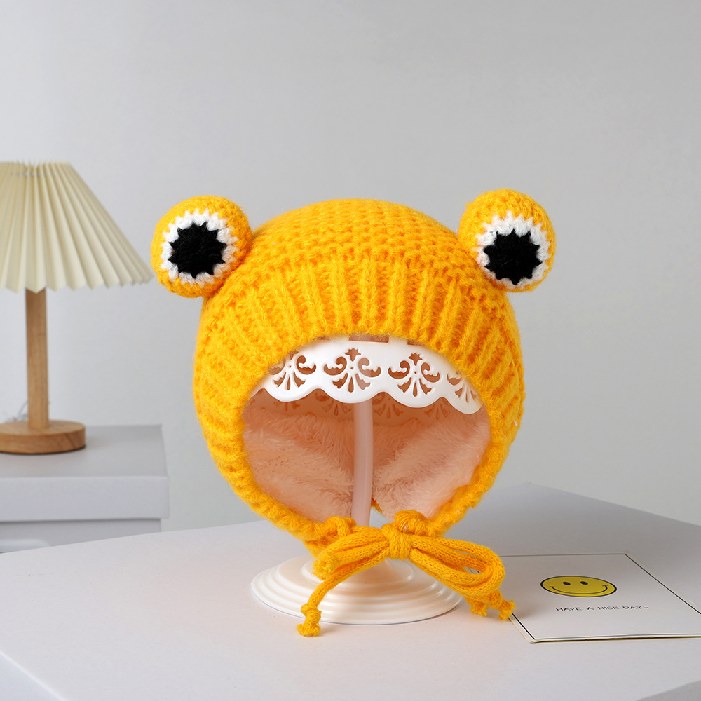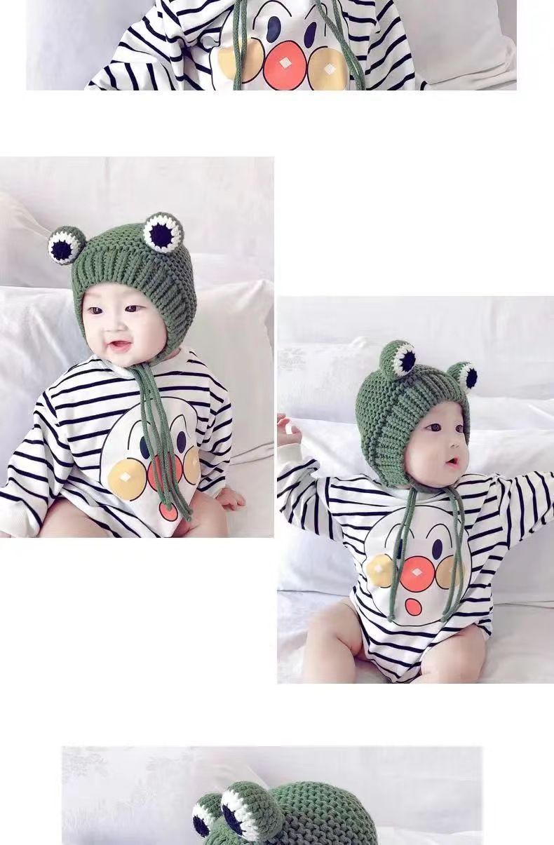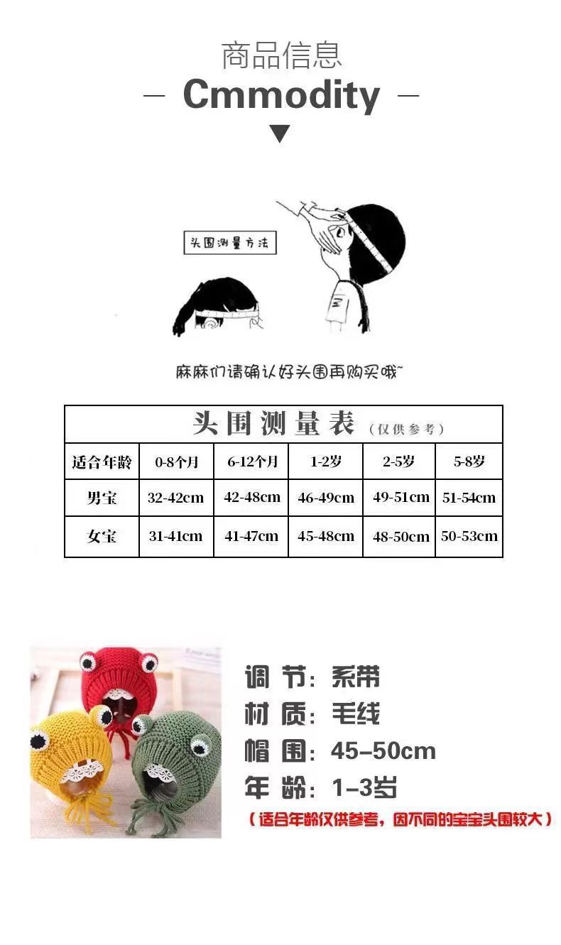 니트 모자 유아용 모자 가을 겨울 아기 개구리 모직 모자 귀엽고 트렌디한 재미있는 풀오버 모자 어린이용스토어 가기