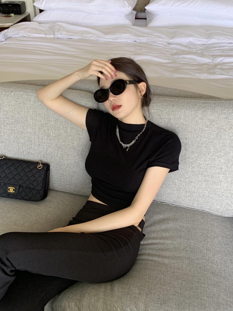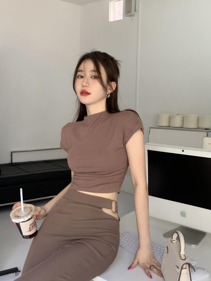 2025 뜨거운 여자 하프 거북이 칼라 반팔 티셔츠 여성 여름 슬림 피트 내부 탑 티셔츠 여학생은 드롭 배송을 위해 착용스토어 가기