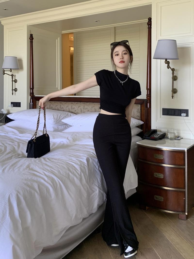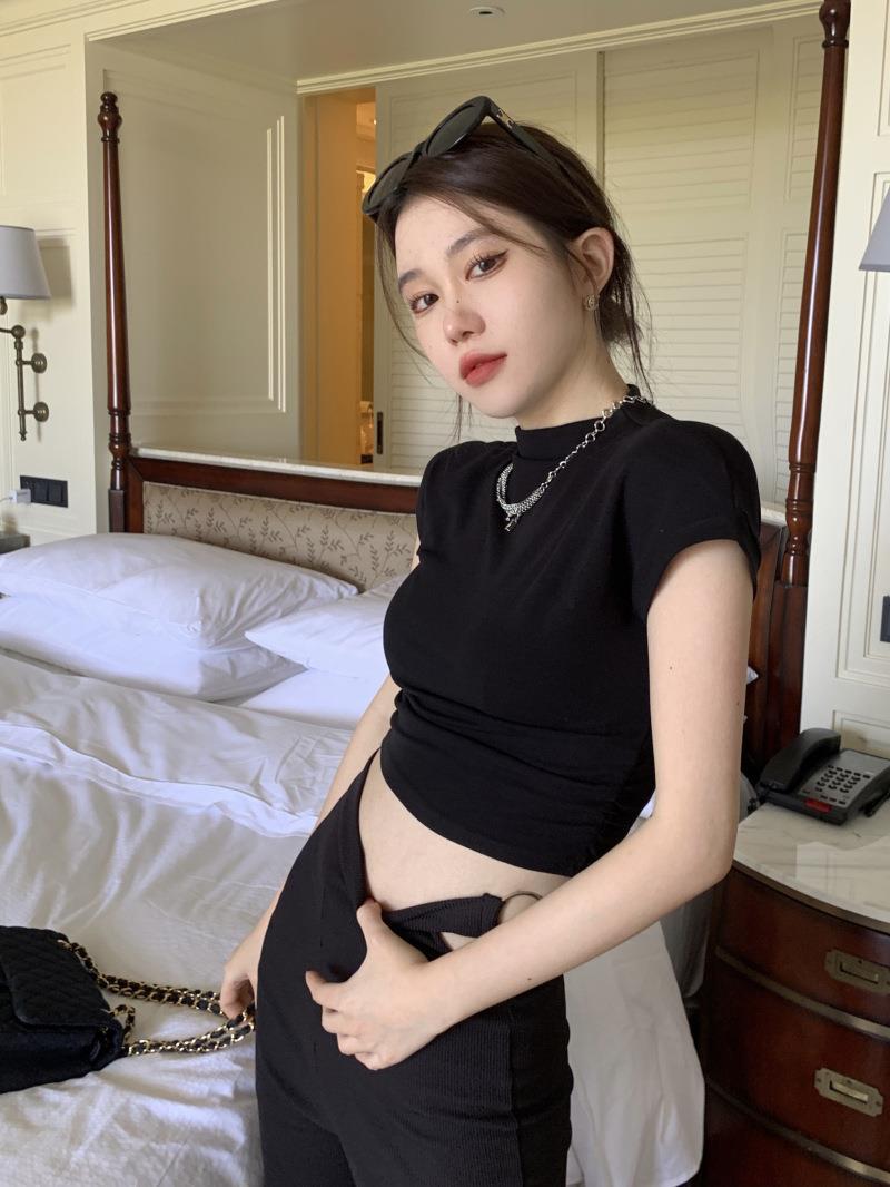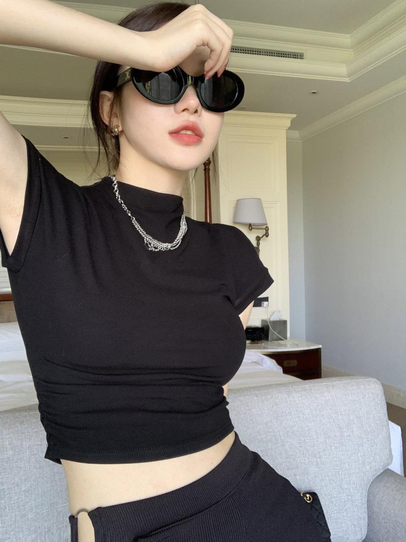 2025 뜨거운 여자 하프 거북이 칼라 반팔 티셔츠 여성 여름 슬림 피트 내부 탑 티셔츠 여학생은 드롭 배송을 위해 착용