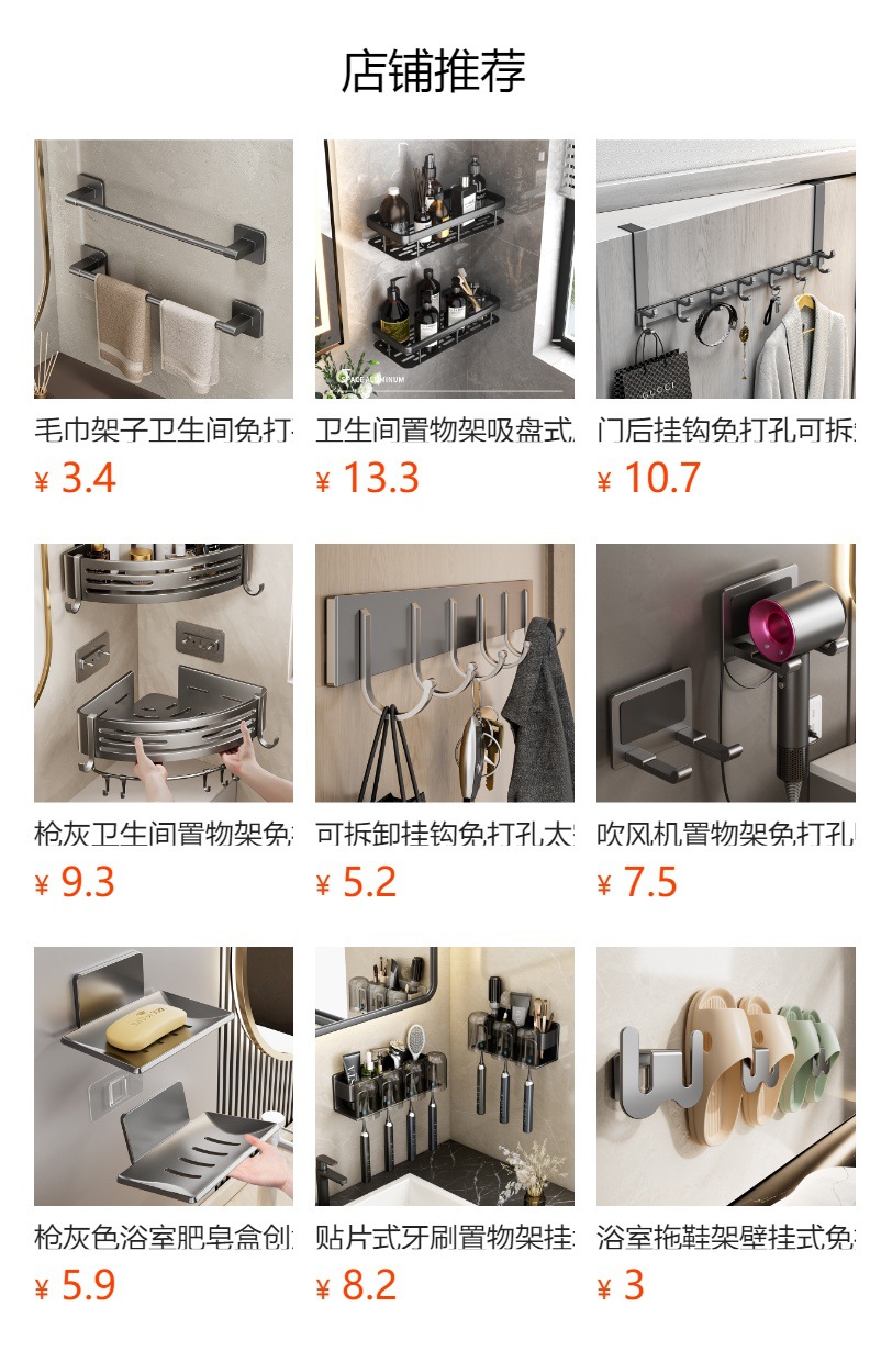 욕실 슬리퍼 랙 벽걸이 형 펀치 프리 화장실 문 뒤 벽 배수 후크 신발 보관 선반스토어 가기