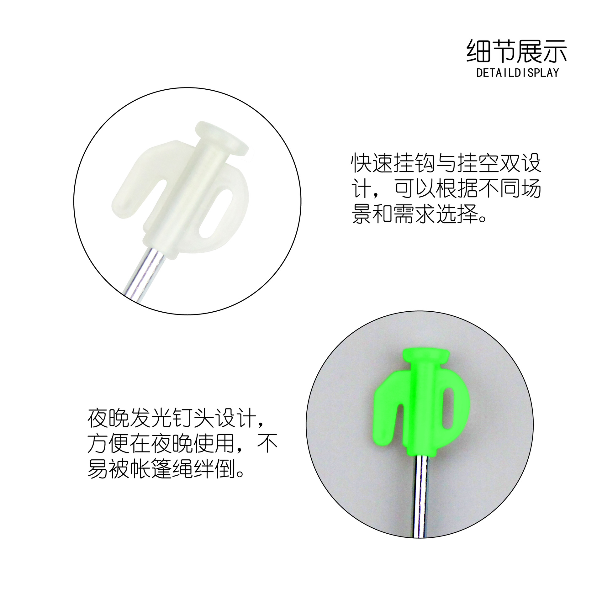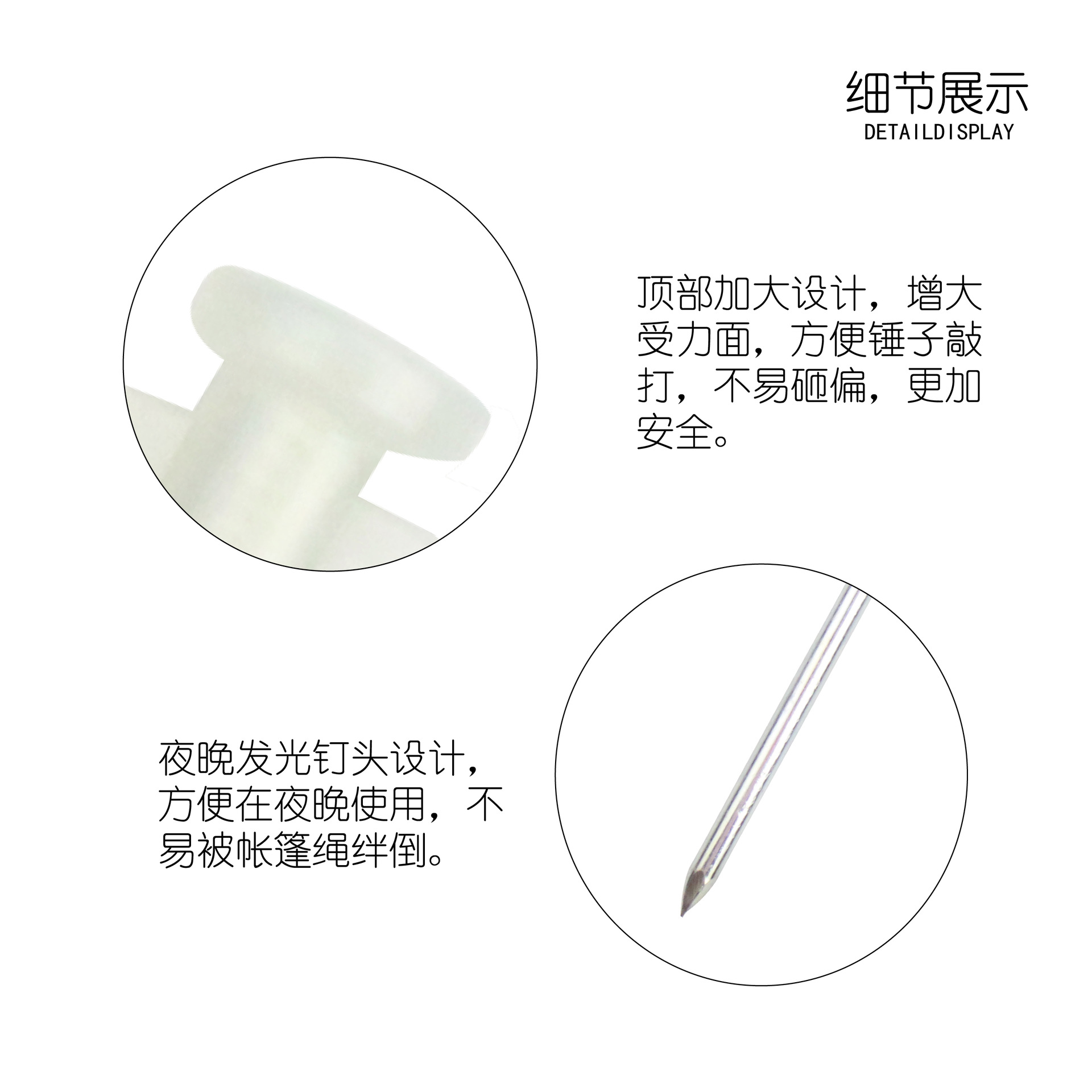 用途:高强度轻便夜光钢钉/帐篷钉/地钉,适合沙滩,泥地草地等。接触面积大,可以代替 高山帐的雪钉,非常稳定,可用于强风条件下作为固定桩使用
