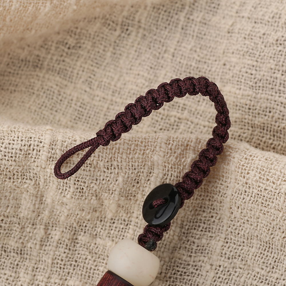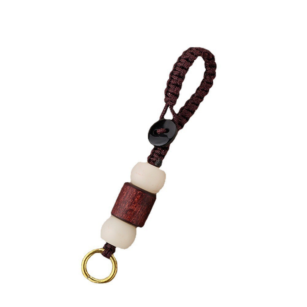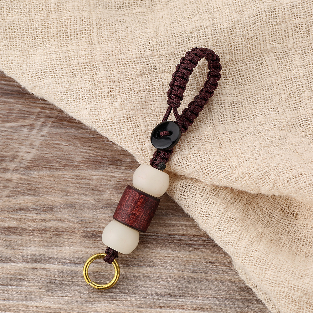키 체인 액세서리 제조 업체 도매 배럴 비드 액세서리 이우 작은 보석 플랫 매듭 손 짠 로프 화이트 옥 비드 버튼 로프