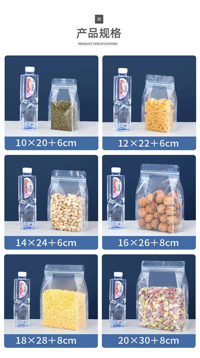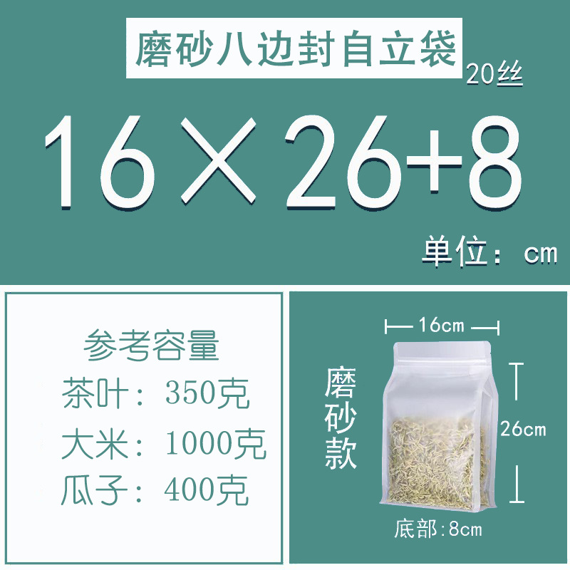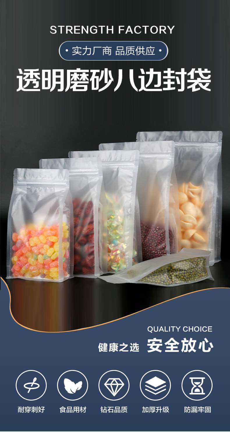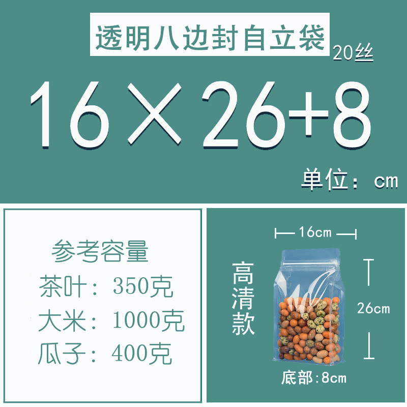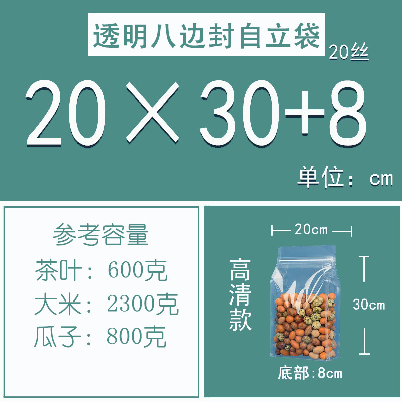 젖빛 8 면 밀봉 가방 도매 향기 차 견과류 간식 지퍼 밀봉 가방 투명 식품 학년 8 면 밀봉 포장 가방