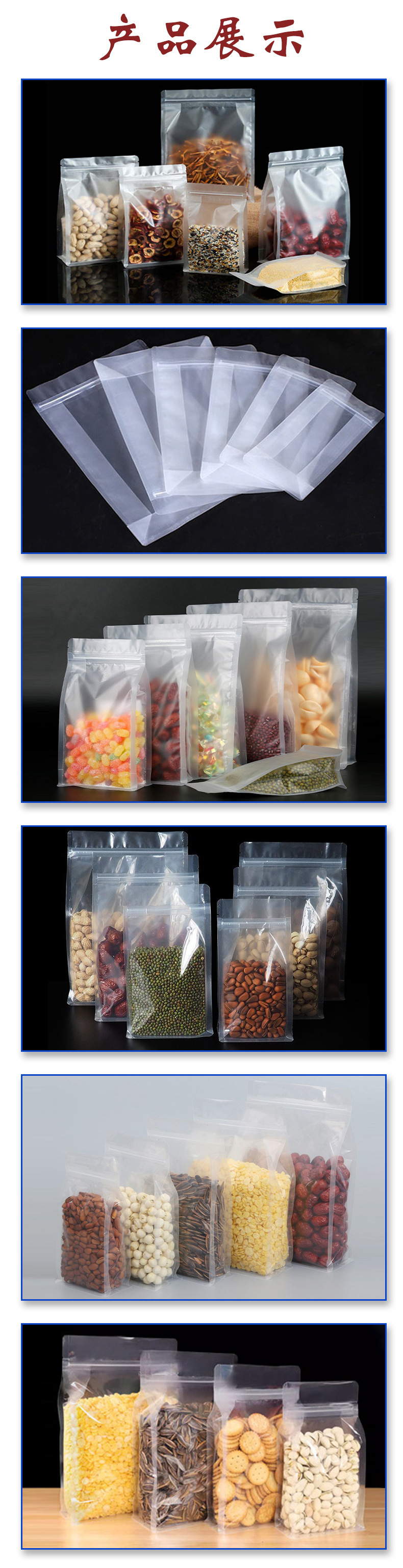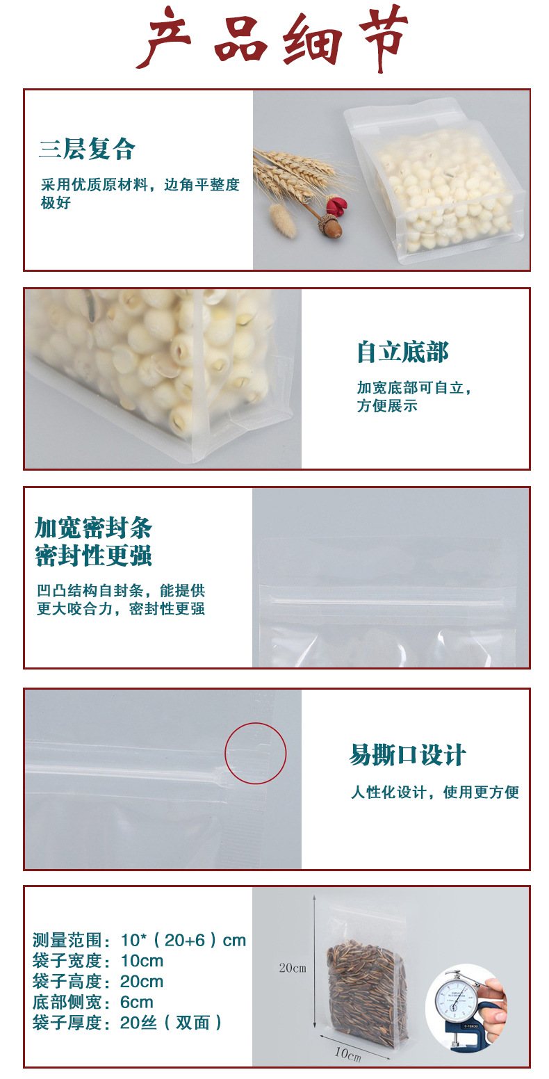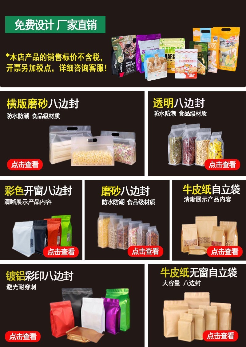 젖빛 8 면 밀봉 가방 도매 향기 차 견과류 간식 지퍼 밀봉 가방 투명 식품 학년 8 면 밀봉 포장 가방