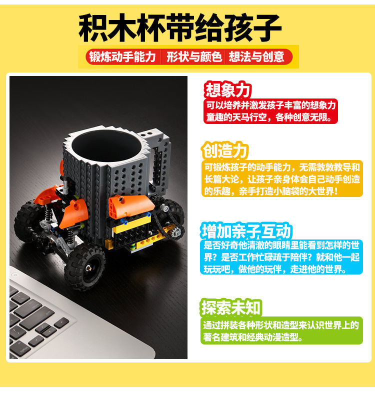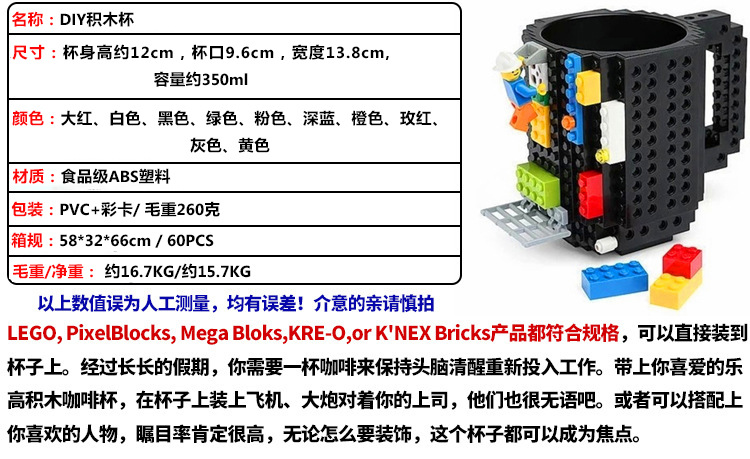 국경 간 레고 빌딩 블록 컵 창조적 인 맞춤형 조립 DIY 커피 컵 조립 장난감 머그잔 휴대용 워터 컵