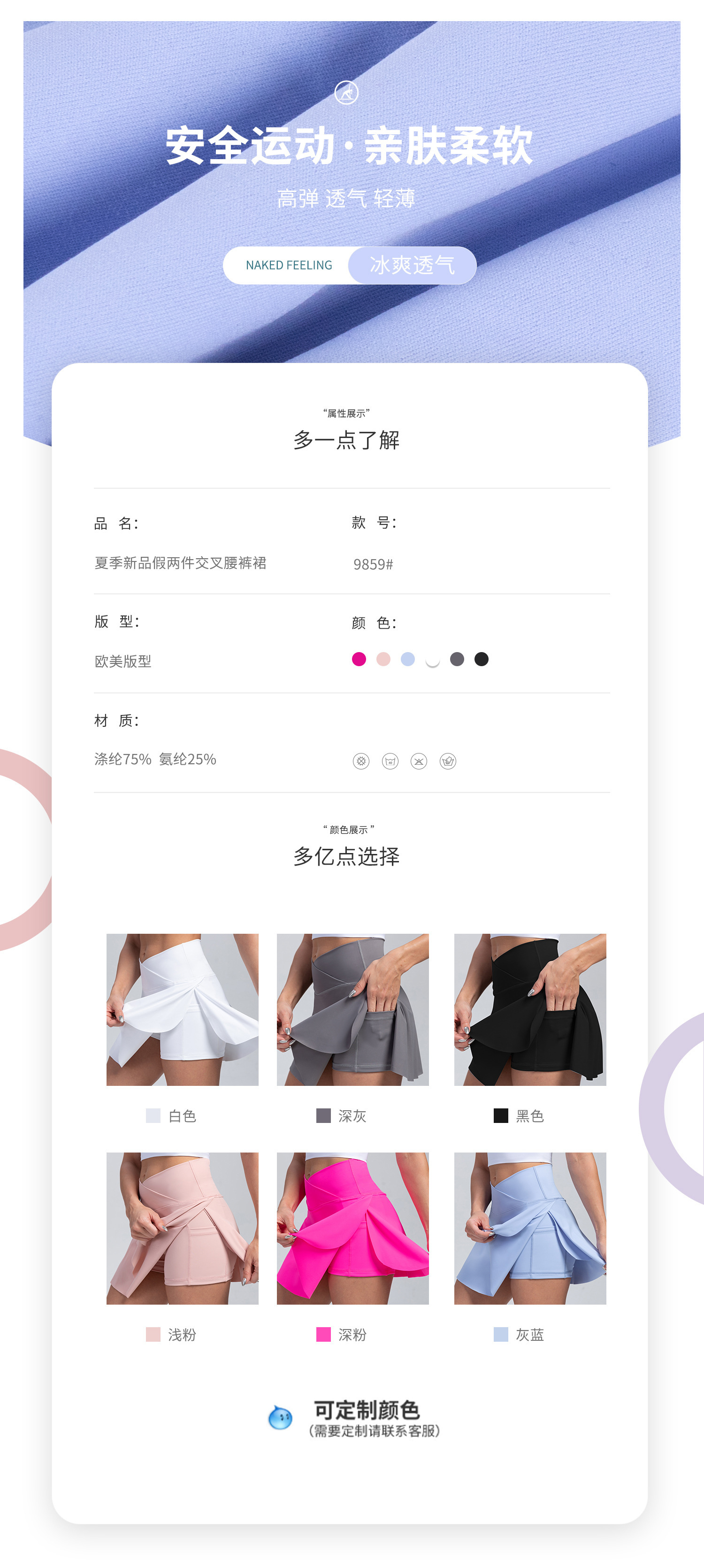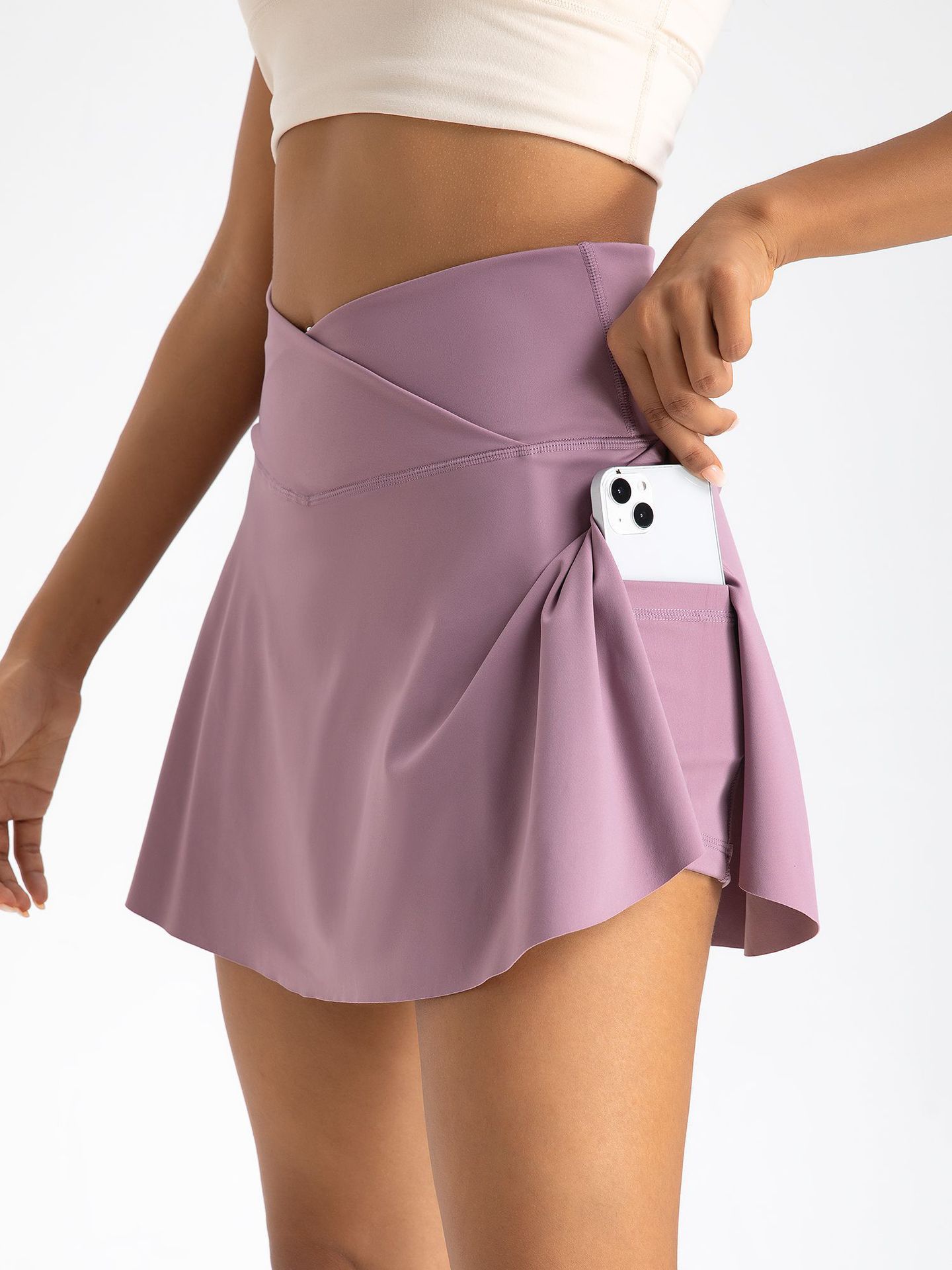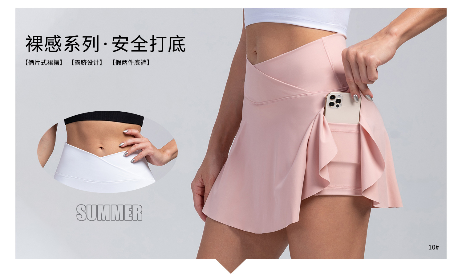 새로운 크로스 보더 가짜 투피스 요가 스커트 스포츠 스커트 테니스 피트니스 러닝 스커트 여성용 하이 웨이스트 포켓 반바지