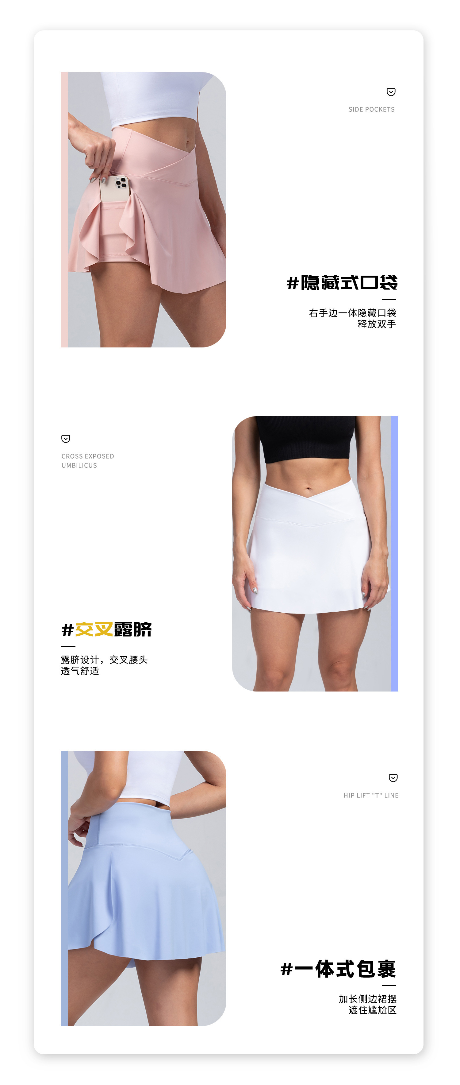 새로운 크로스 보더 가짜 투피스 요가 스커트 스포츠 스커트 테니스 피트니스 러닝 스커트 여성용 하이 웨이스트 포켓 반바지스토어 가기