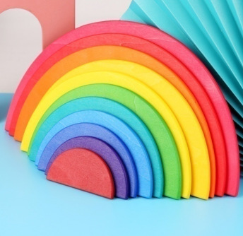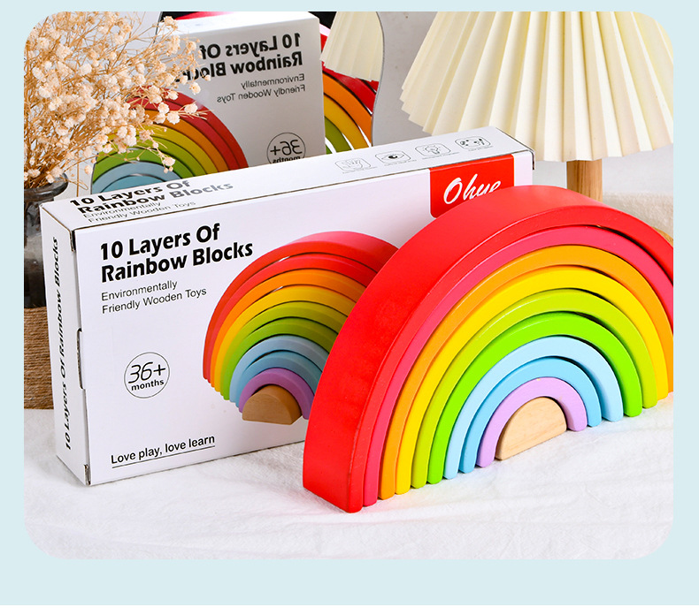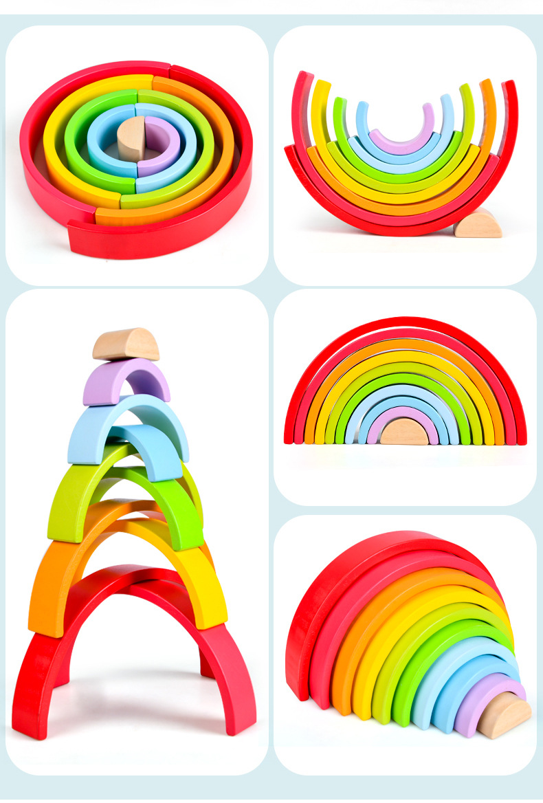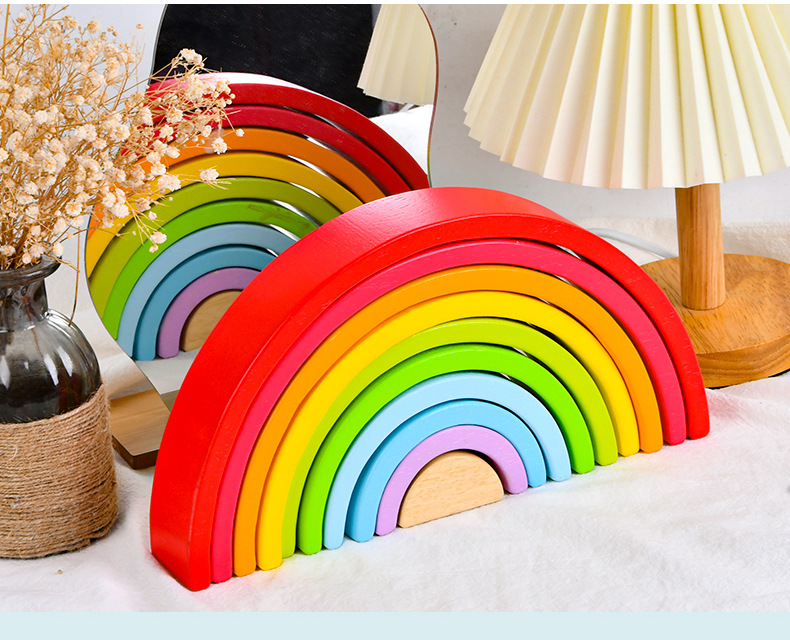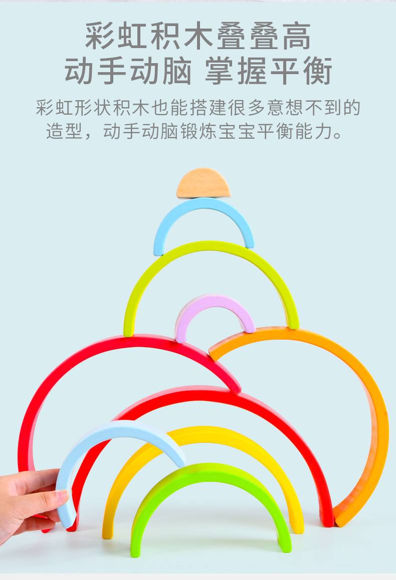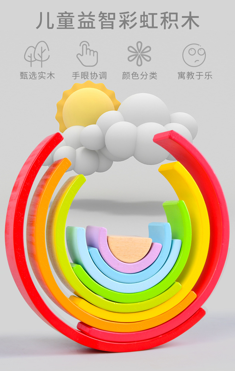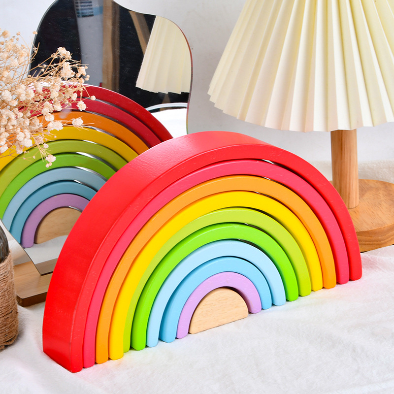 무지개빌딩 블록 대형 나무 쌓기 음악 목조 조기 교육 아동 계발 교육 완구 대 털 도매