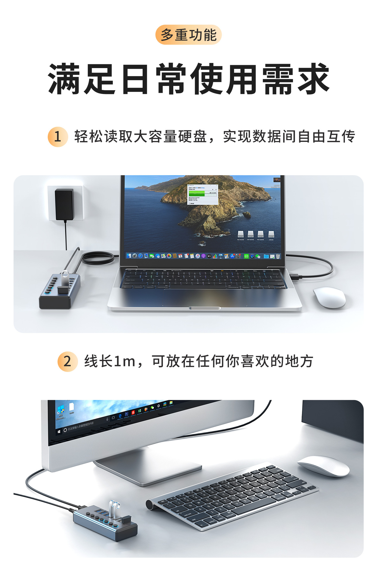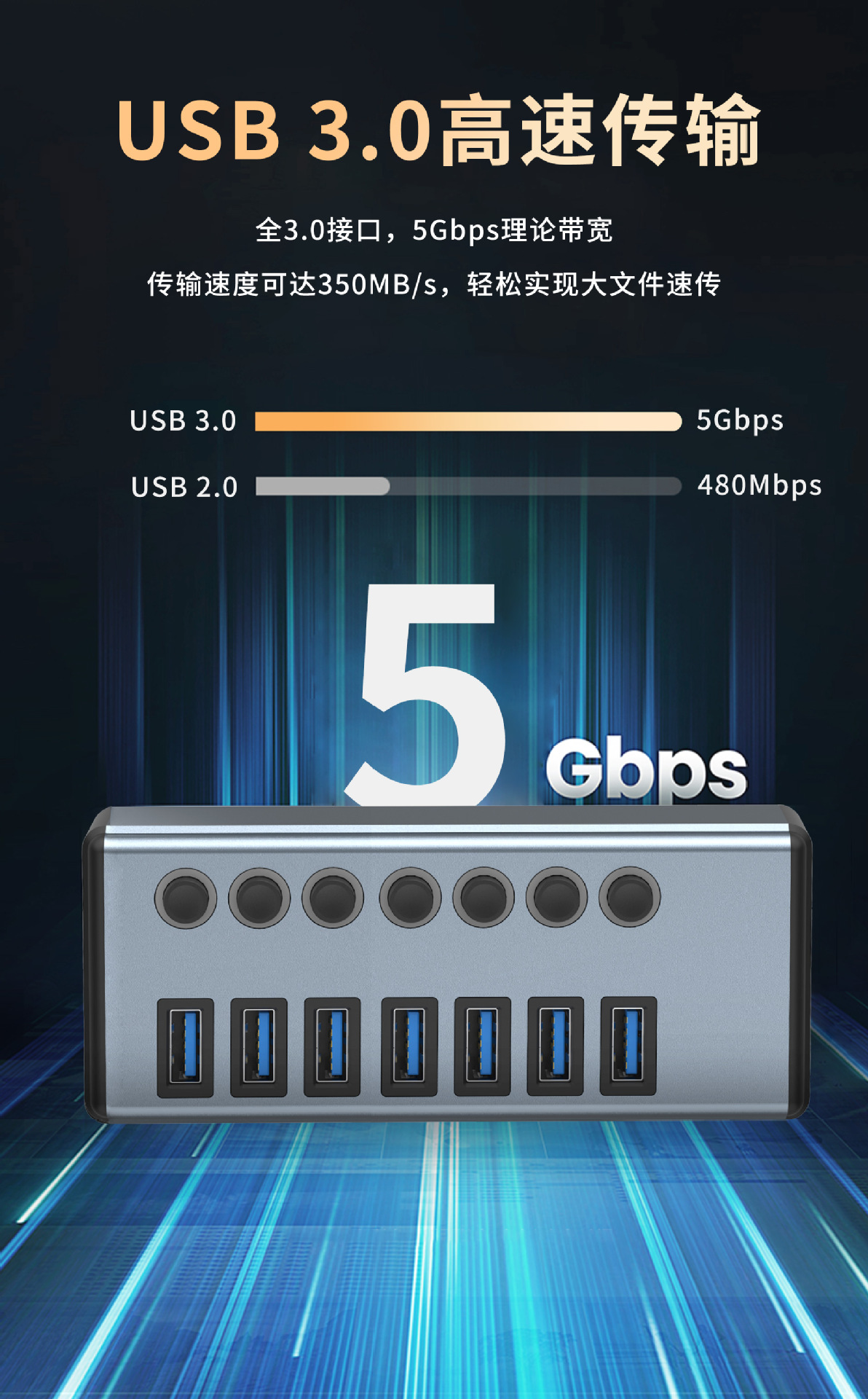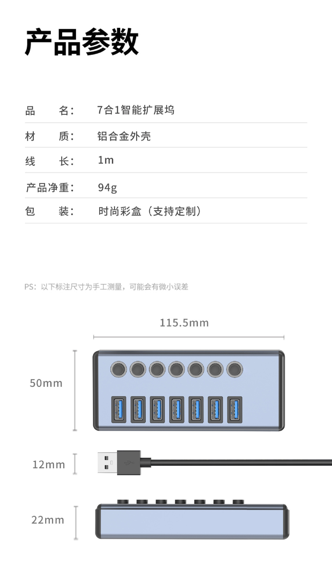 7-in -1 도킹 스테이션 3.0USB 스플리터 허브 멀티 포트 노트북 확장 도크 익스텐더