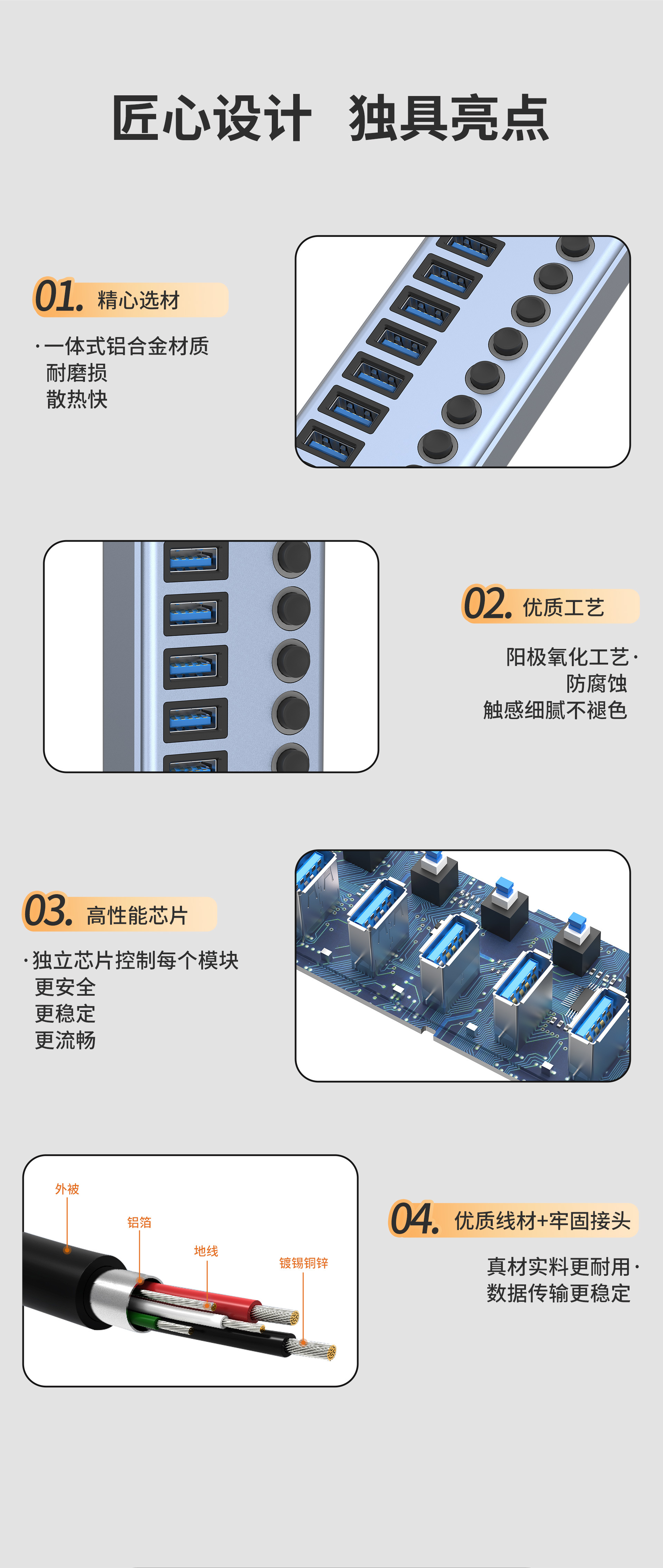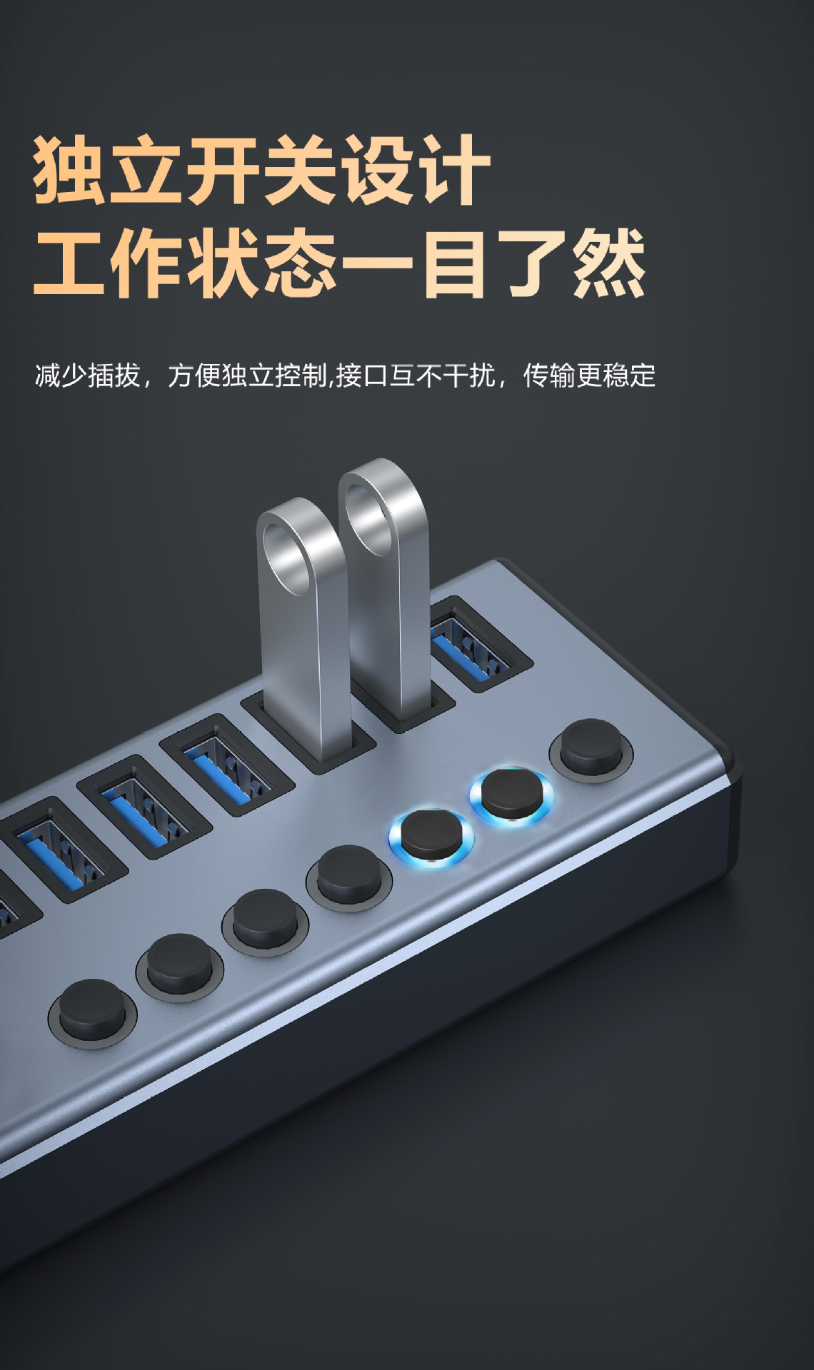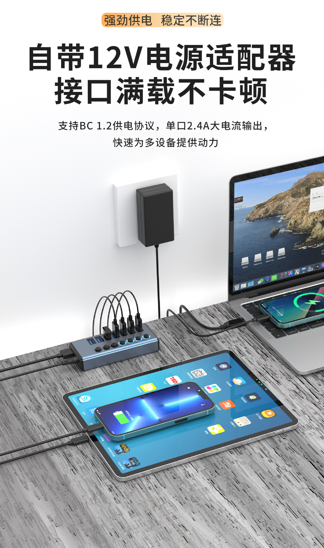 7-in -1 도킹 스테이션 3.0USB 스플리터 허브 멀티 포트 노트북 확장 도크 익스텐더
